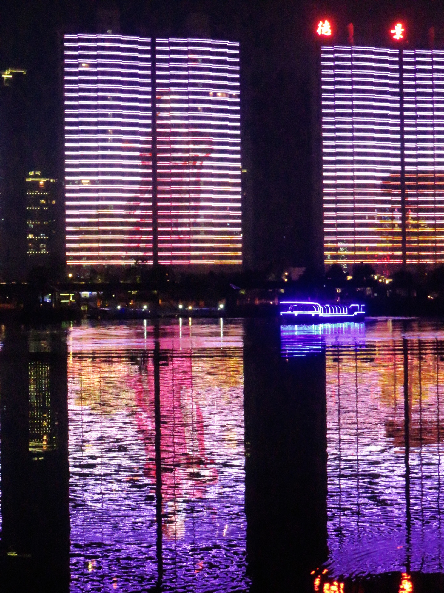 🚤到了晚上,白马湖大型水下音乐喷泉绽放,水柱直冲天空,霓虹灯璀璨夺目,游船穿梭于穿紫河、白马湖,客人可领略湖岸风光,夜色真是太撩人了~~
