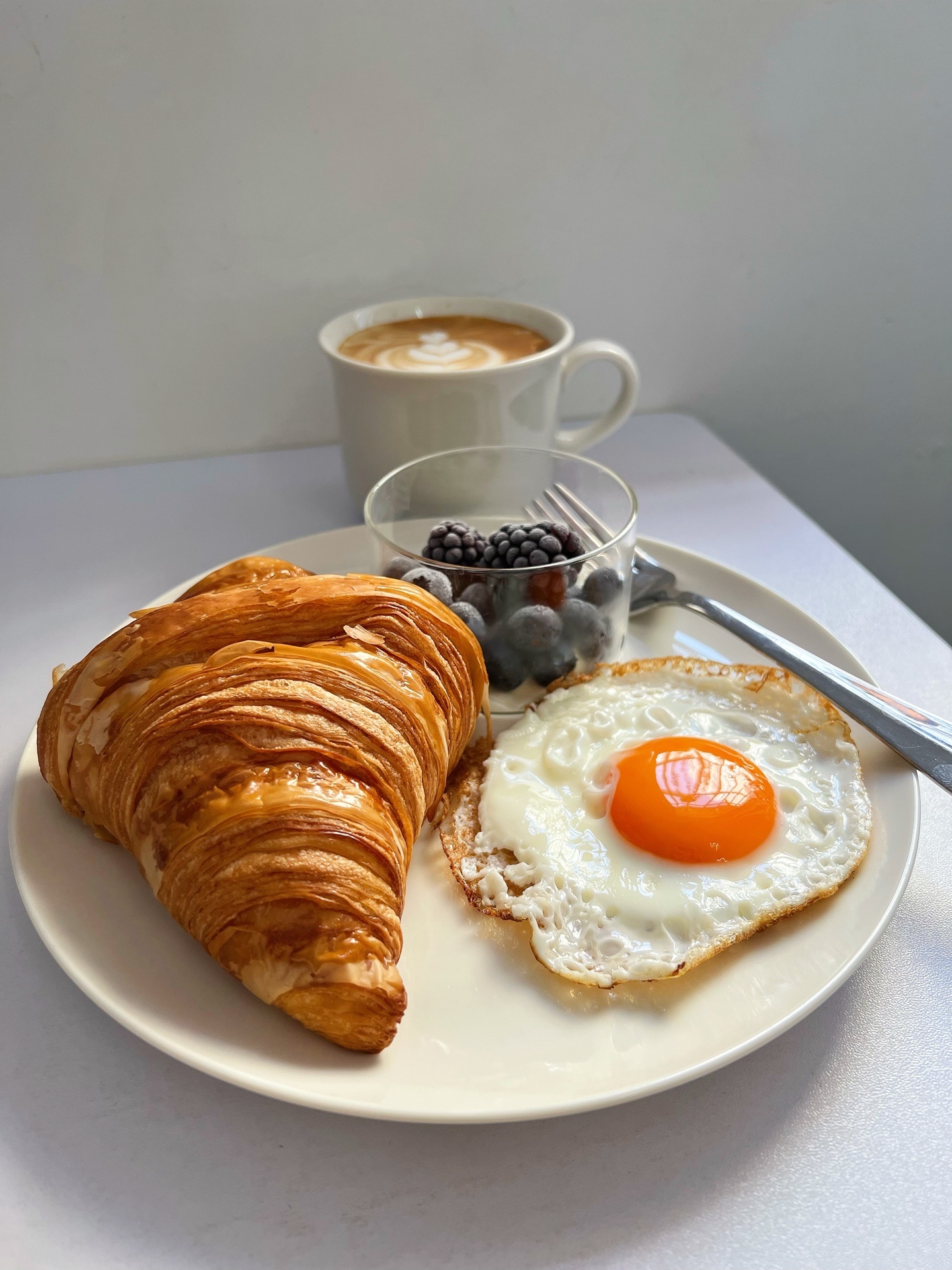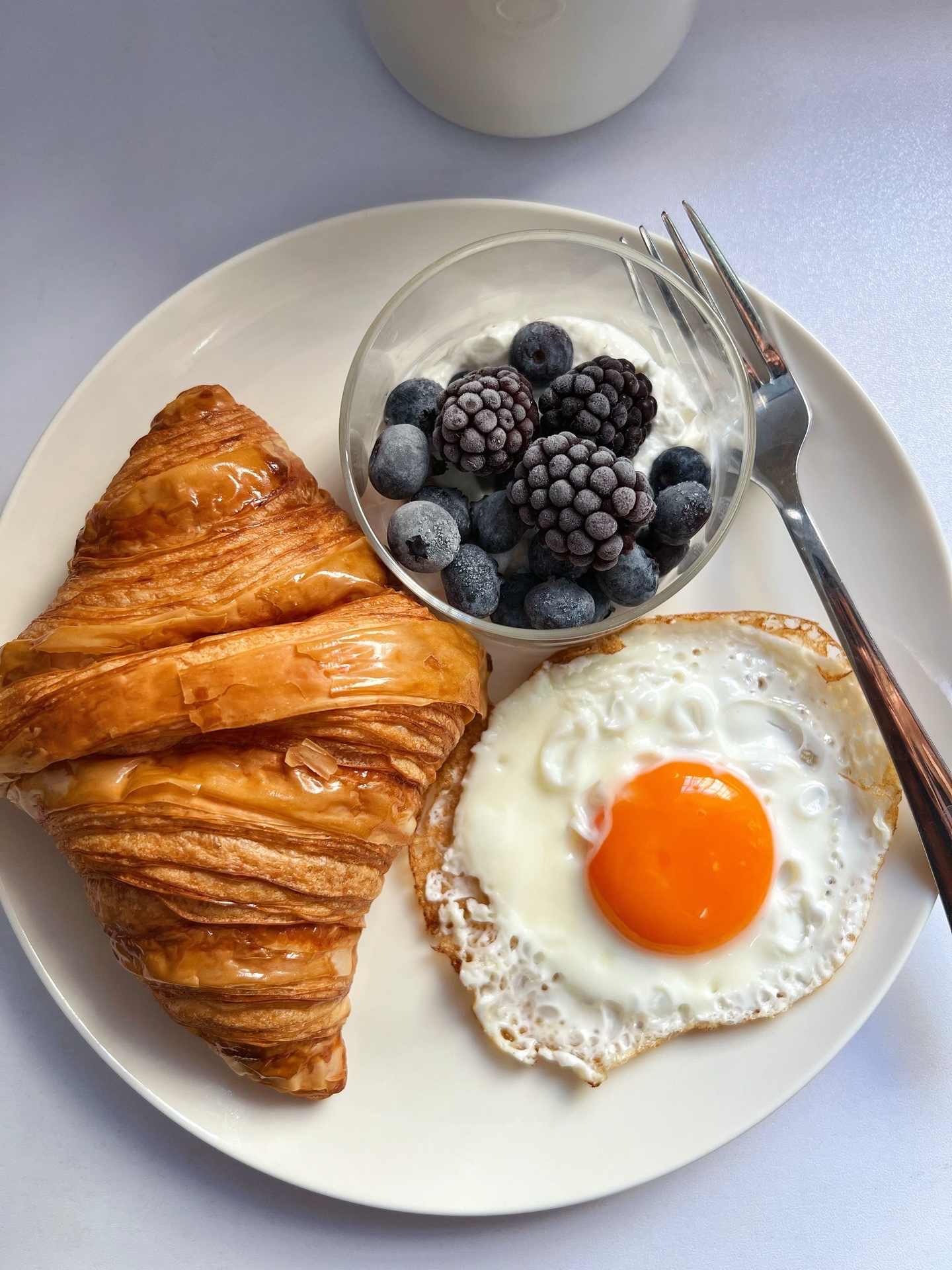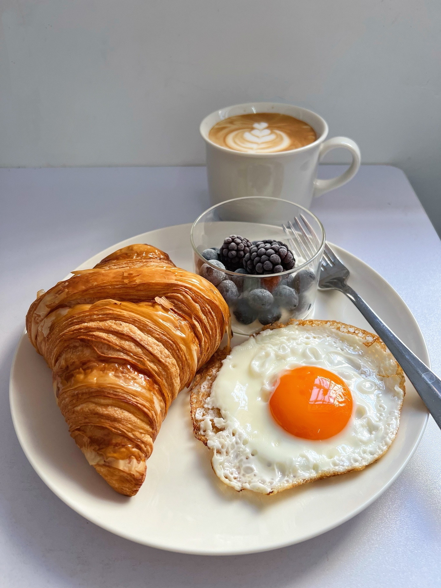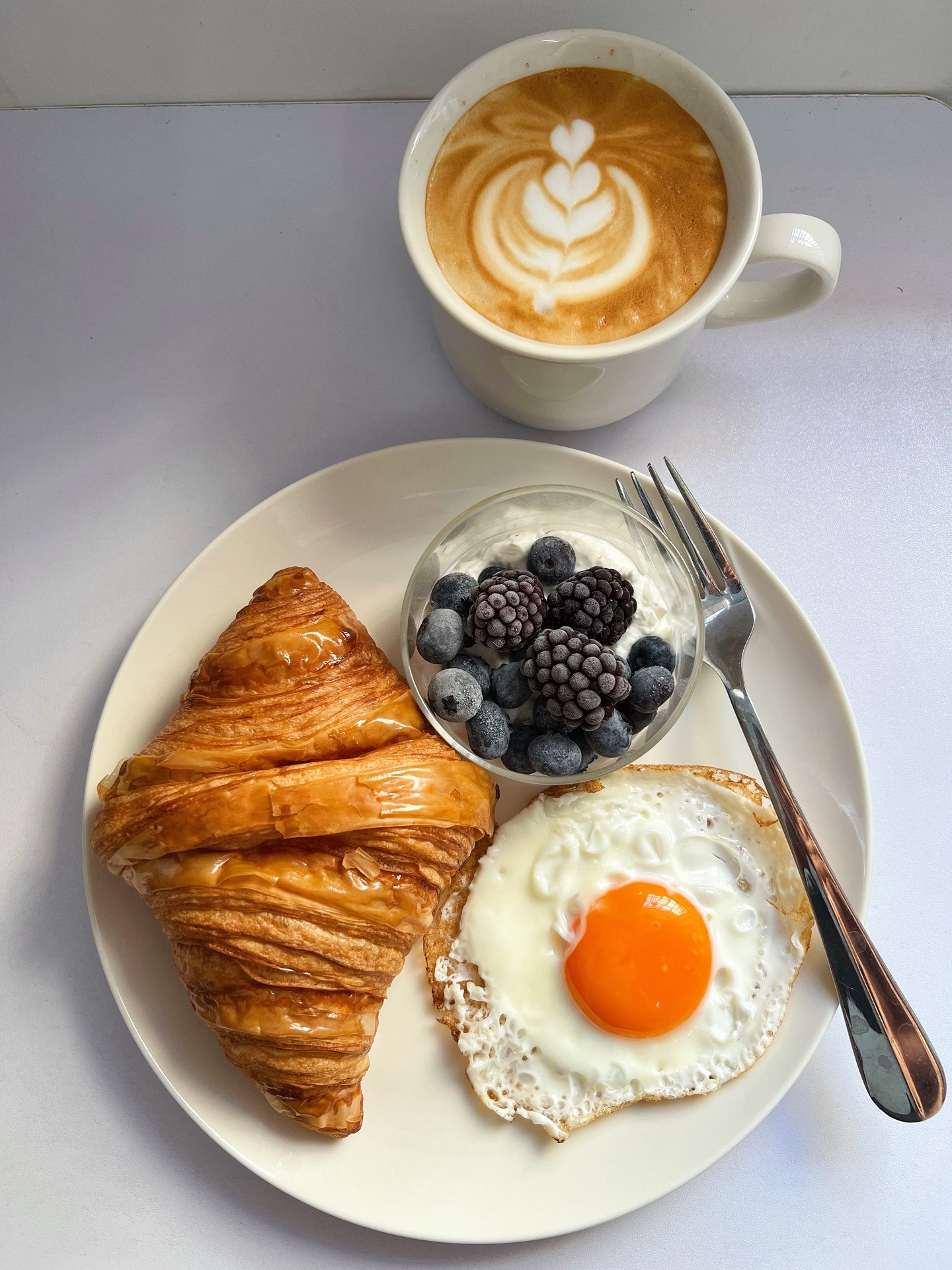 大可颂、煎蛋🍳、莓果酸奶、热拿铁☕️