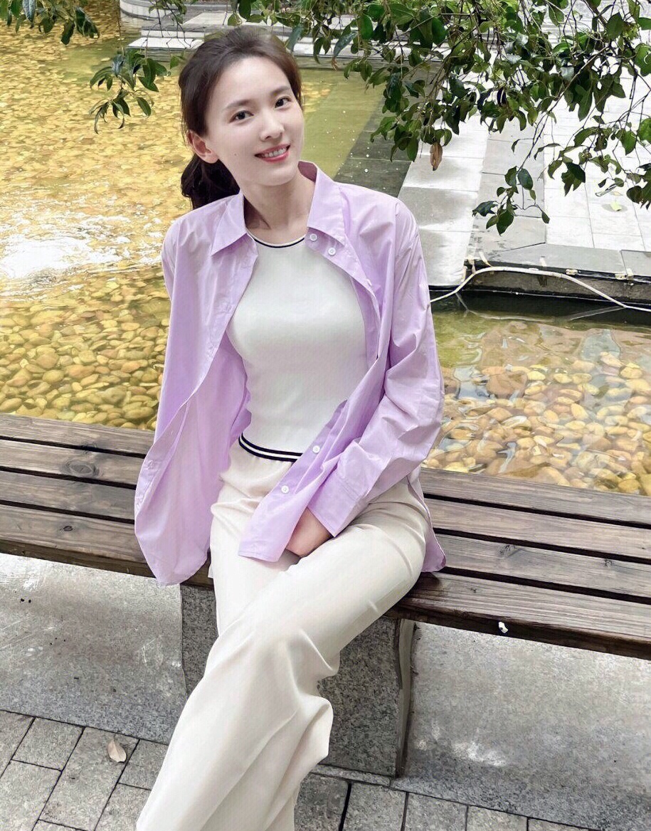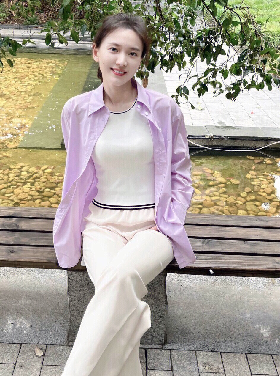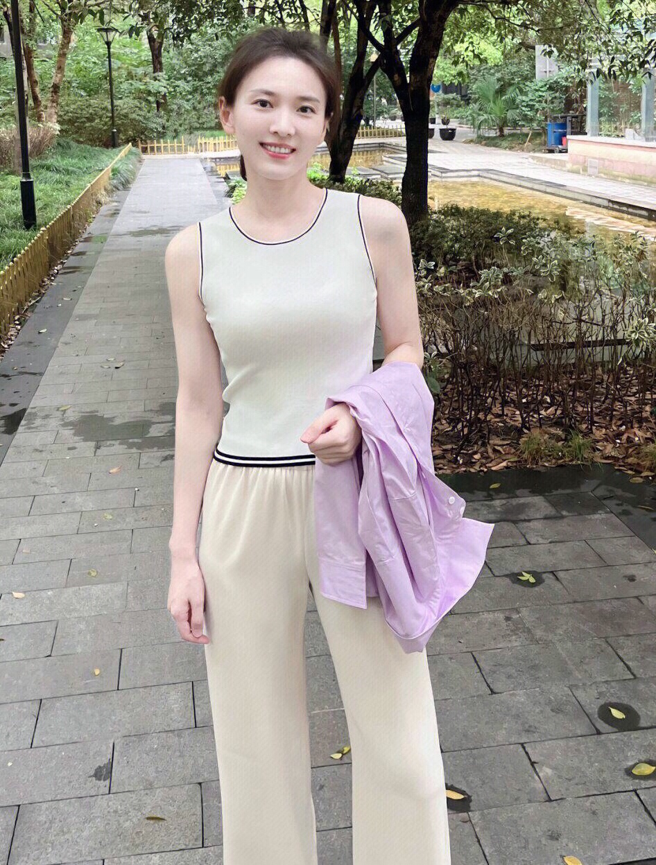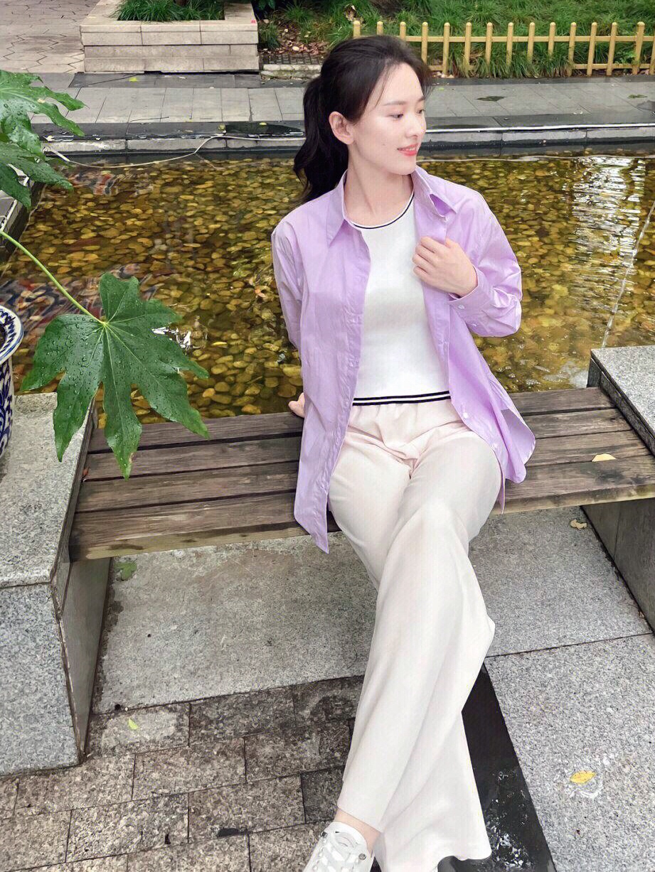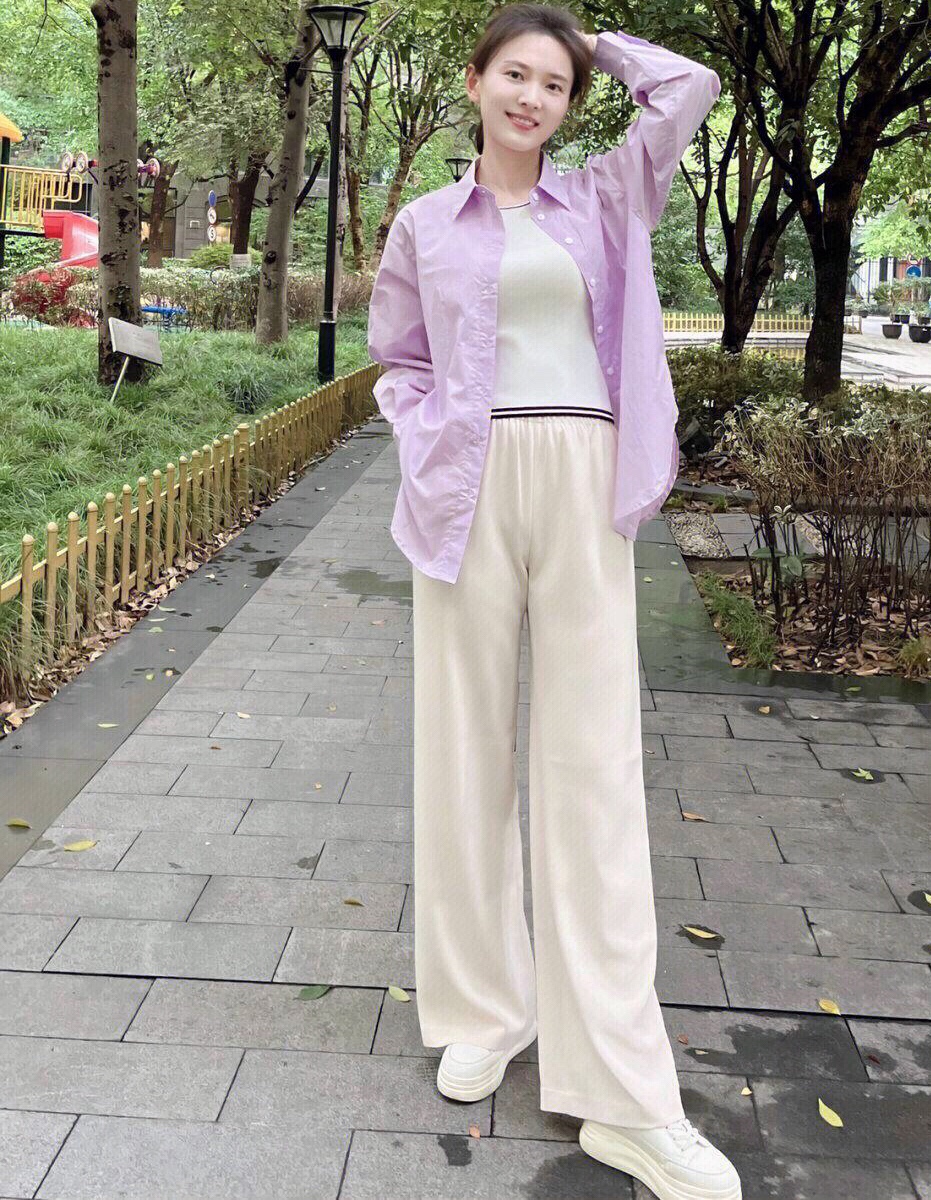 上班族这样穿也显得很高级,紫色衬衫搭配背心和阔腿裤,时髦大气~