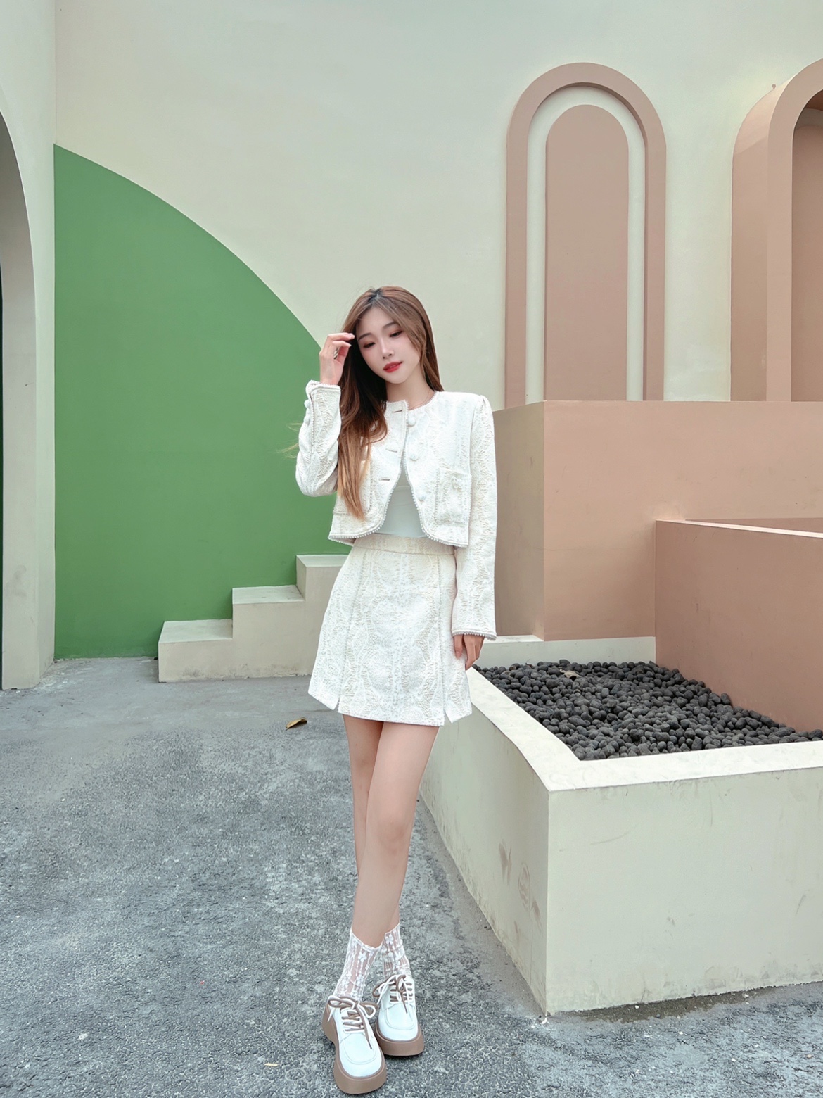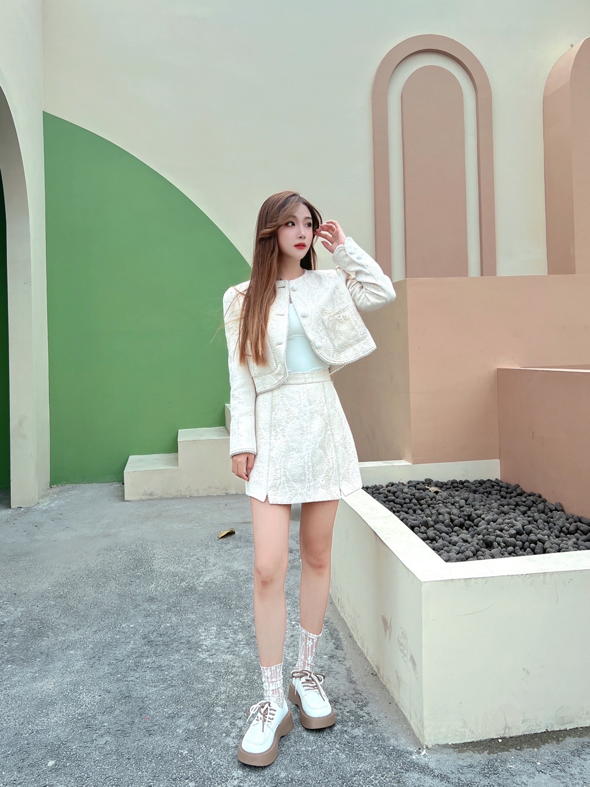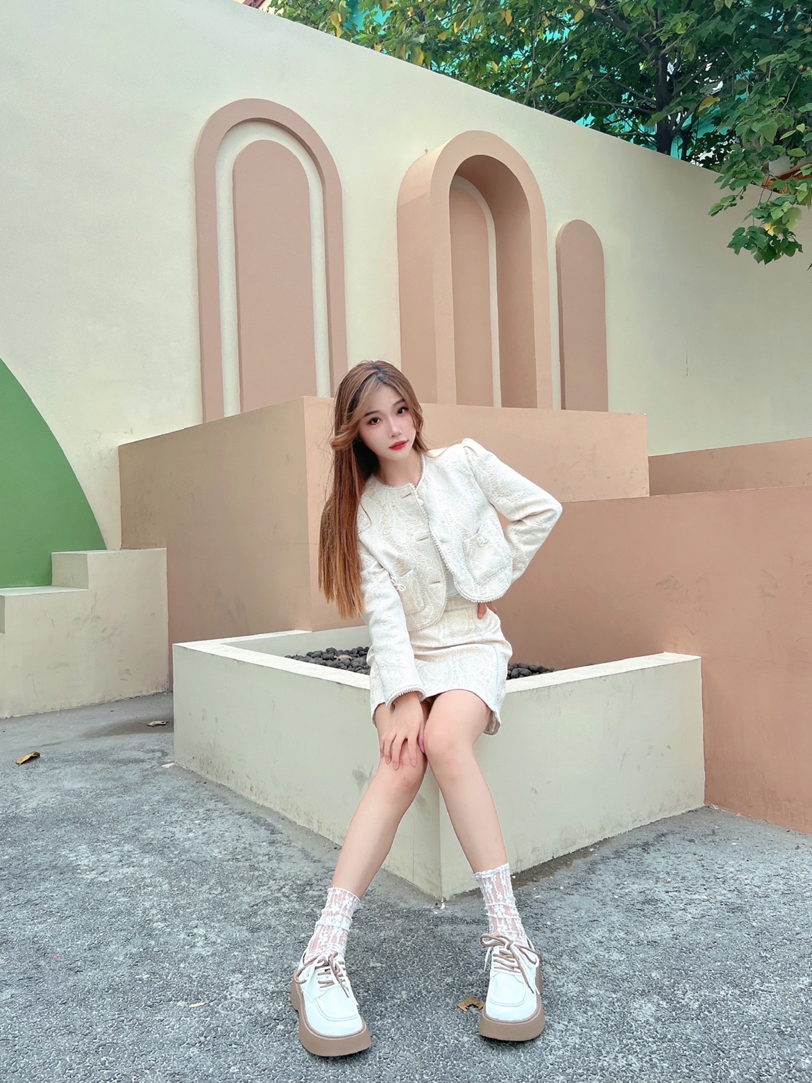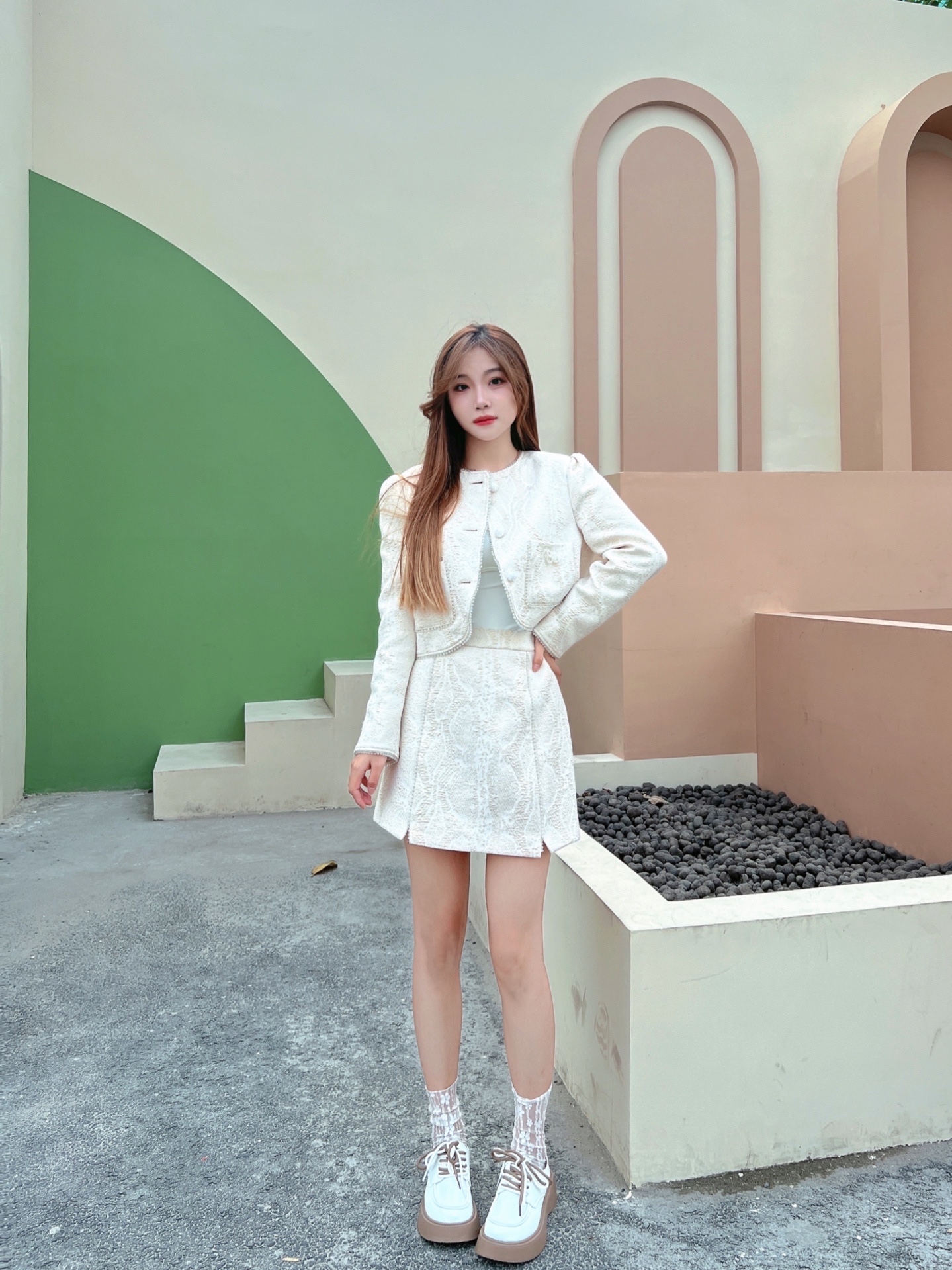 今天整一套米白色的小香风套装