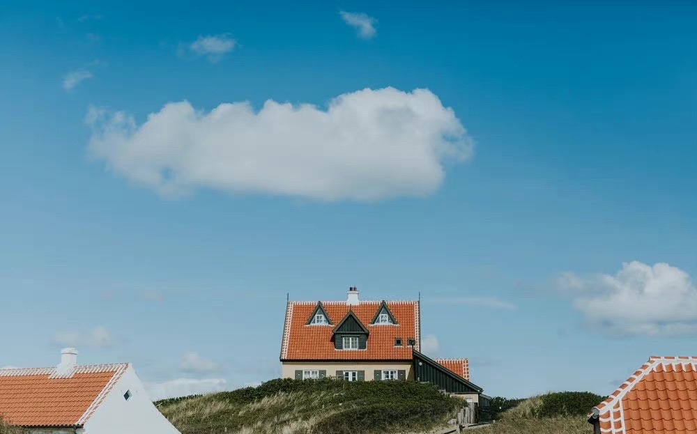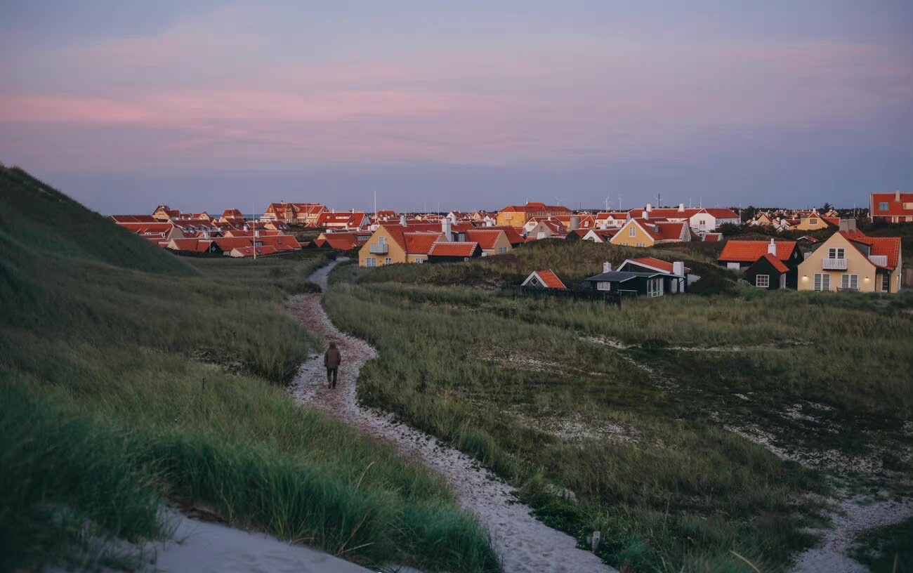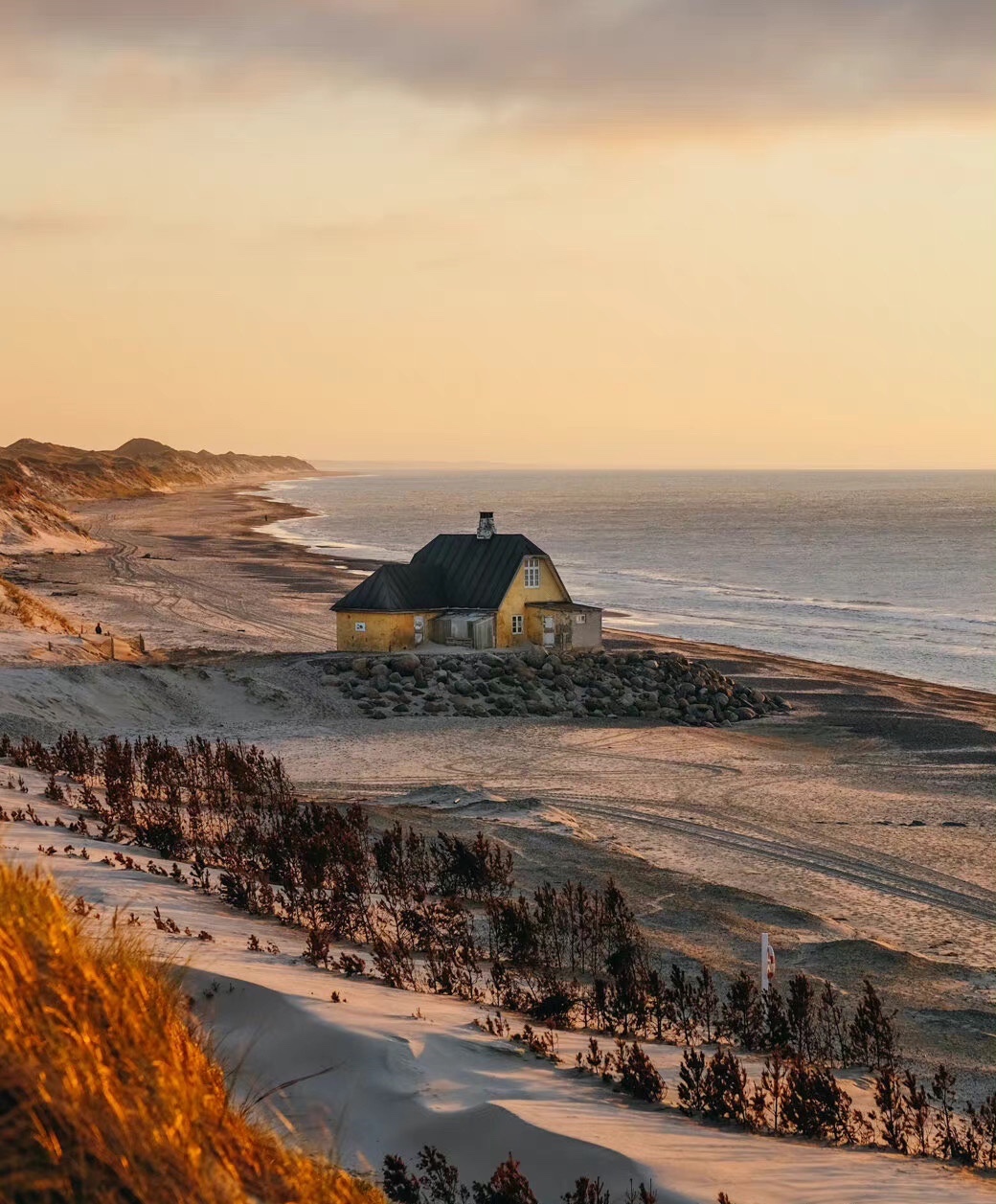 丹麦 Skagen 海滨小镇斯卡恩坐落在丹麦最北端 由于其独特的地理位置和自然美景 自19 世纪以来就吸引了众多艺术家和度假者 标志性的红顶白窗建筑 遗世独立的教堂以及具有尽头感的沙滩 无比迷人