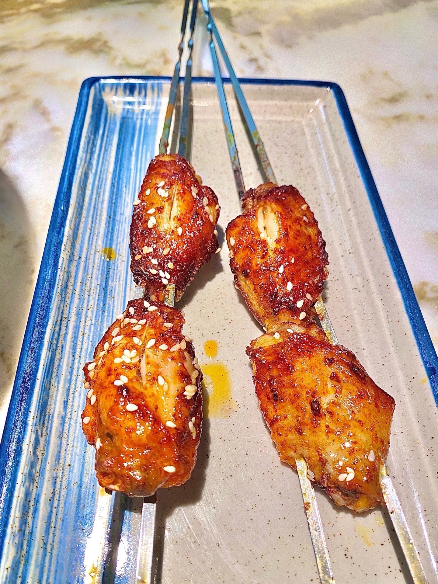 金牌烤翅我一个人吃了两串,每次来遇见长安必须点的就是烤翅,外皮酥脆,里面滑嫩不油腻,颜色漂亮,应该是提前腌制过了,所以非常入味,喜欢吃烧烤的朋友一定要点。