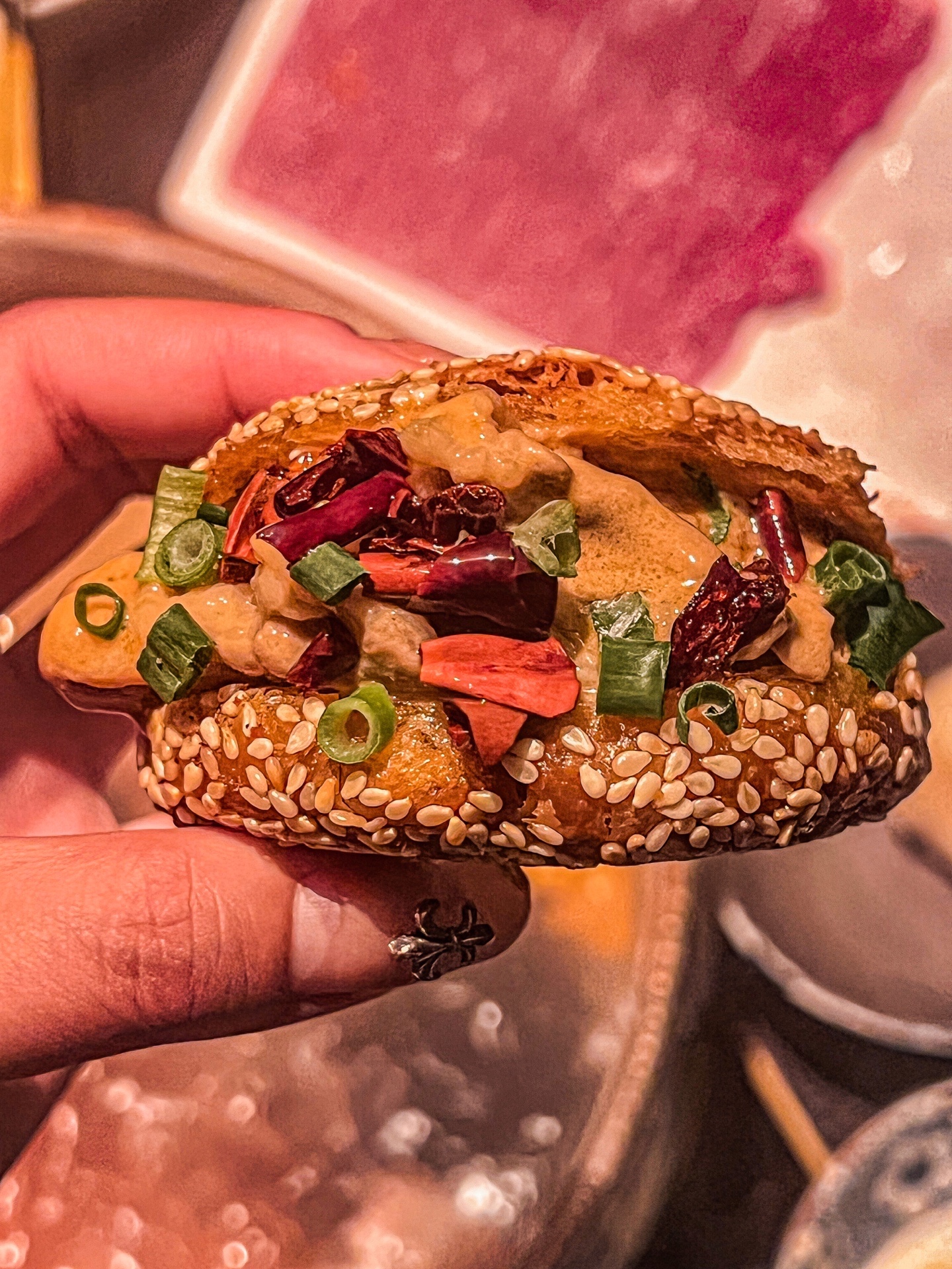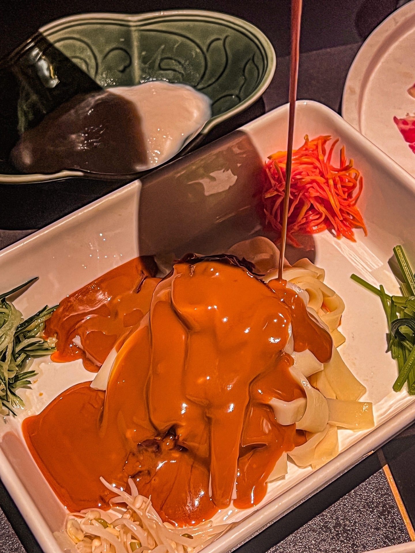 麻酱烧饼➕肉➕辣椒油➕调好的沾料