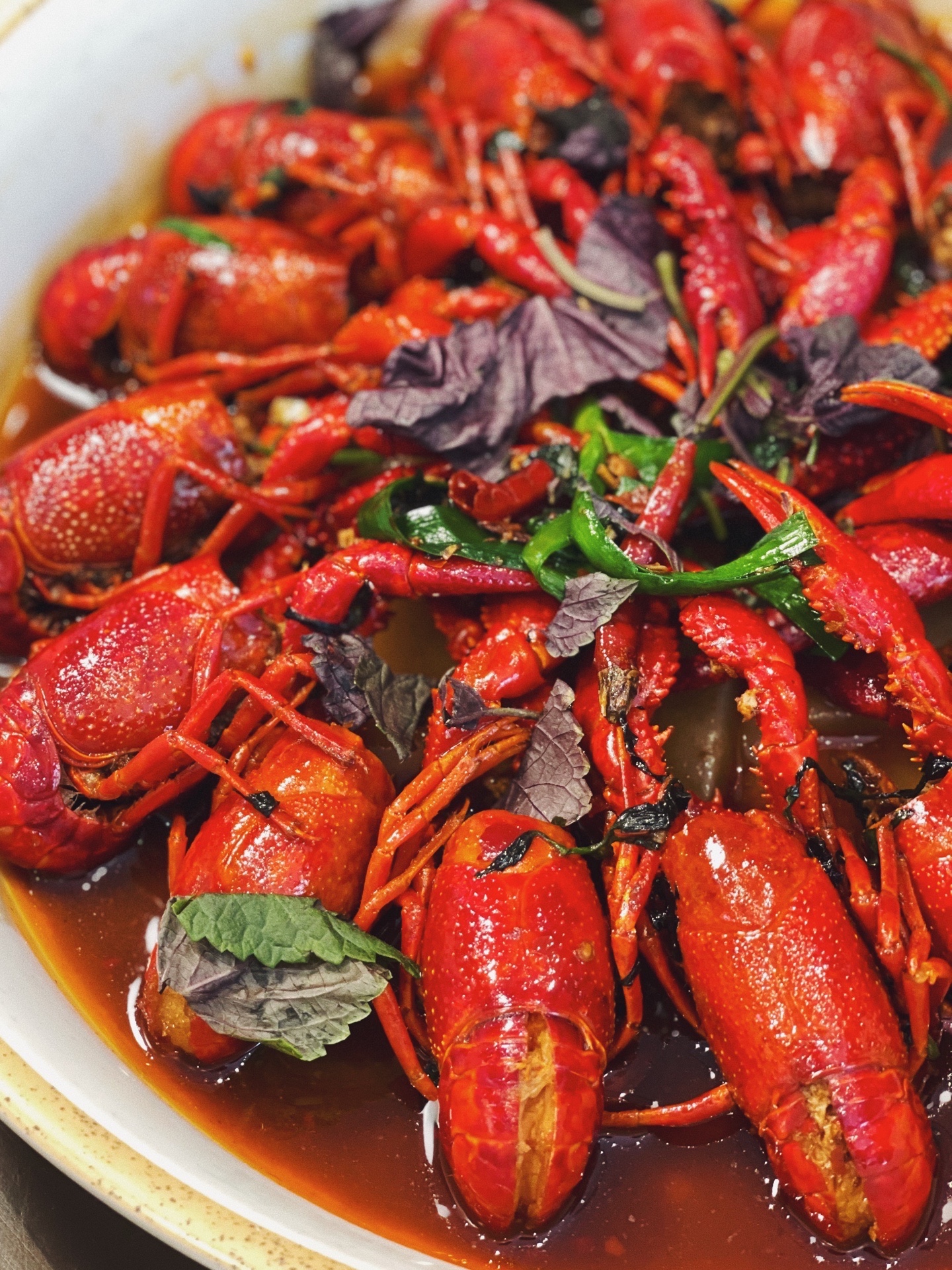 其他地方做小龙虾可能很少用到紫苏,但紫苏却是刻进湖南人DNA里的味道,搭配四川二荆条辣椒,香辣上头,很有记忆点。虾子每日鲜活直运,开背去线处理得很干净,吃的时候嗦一口浓郁汤汁,再拌一份清水面条,绝了!