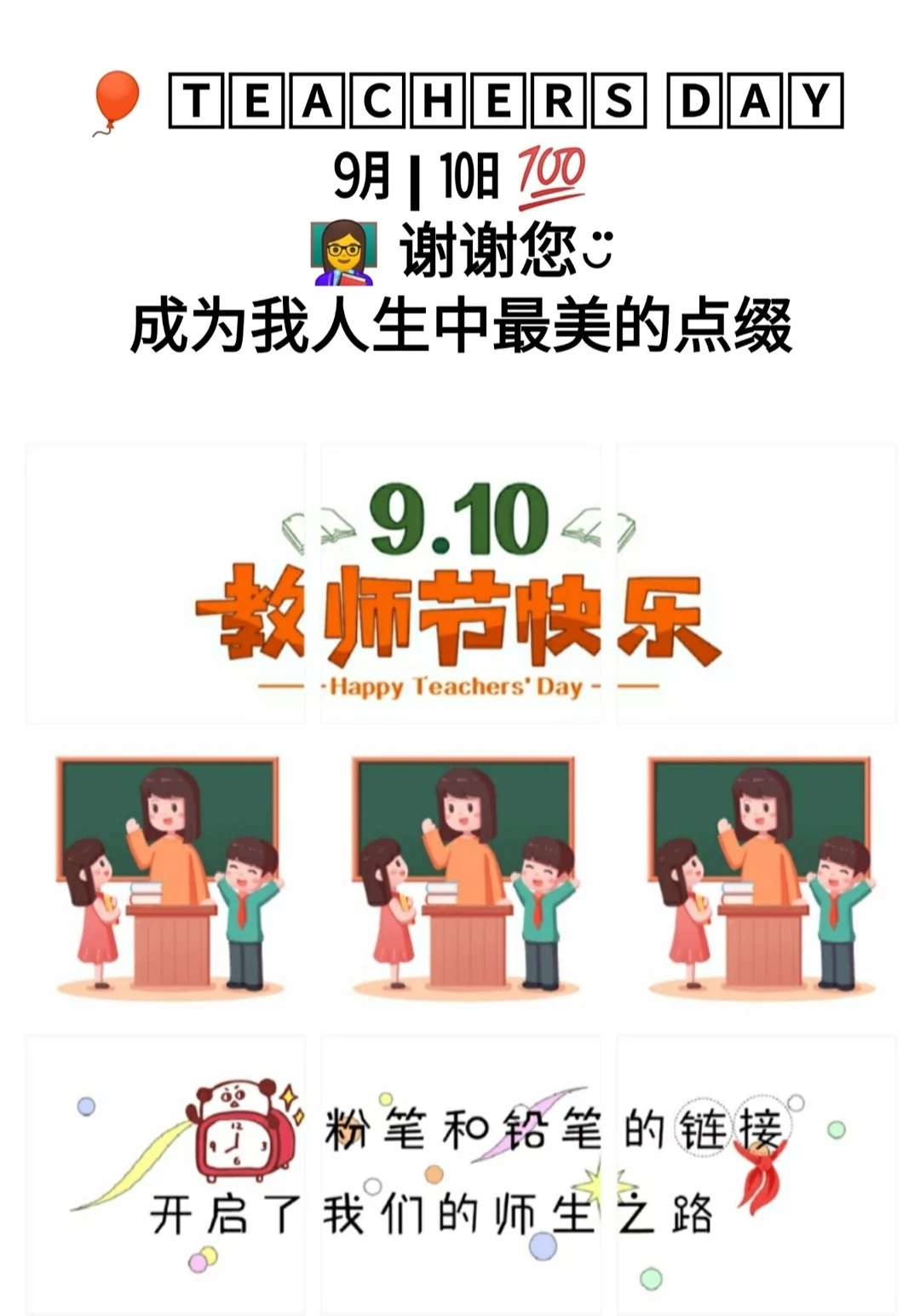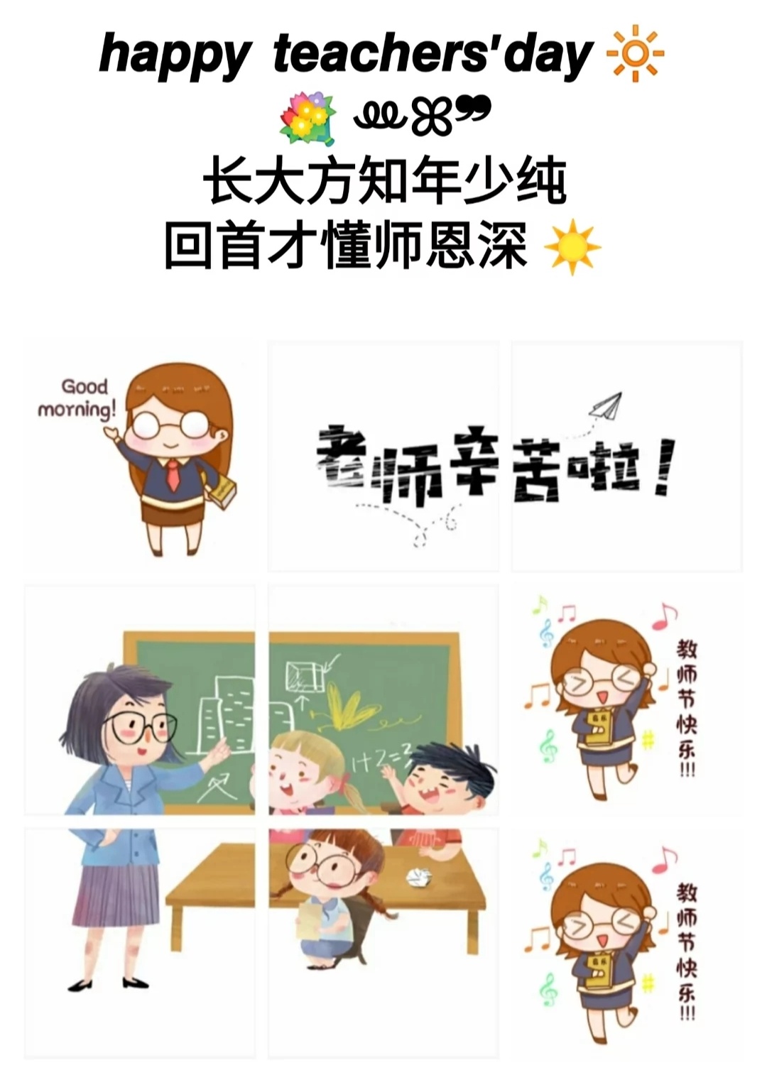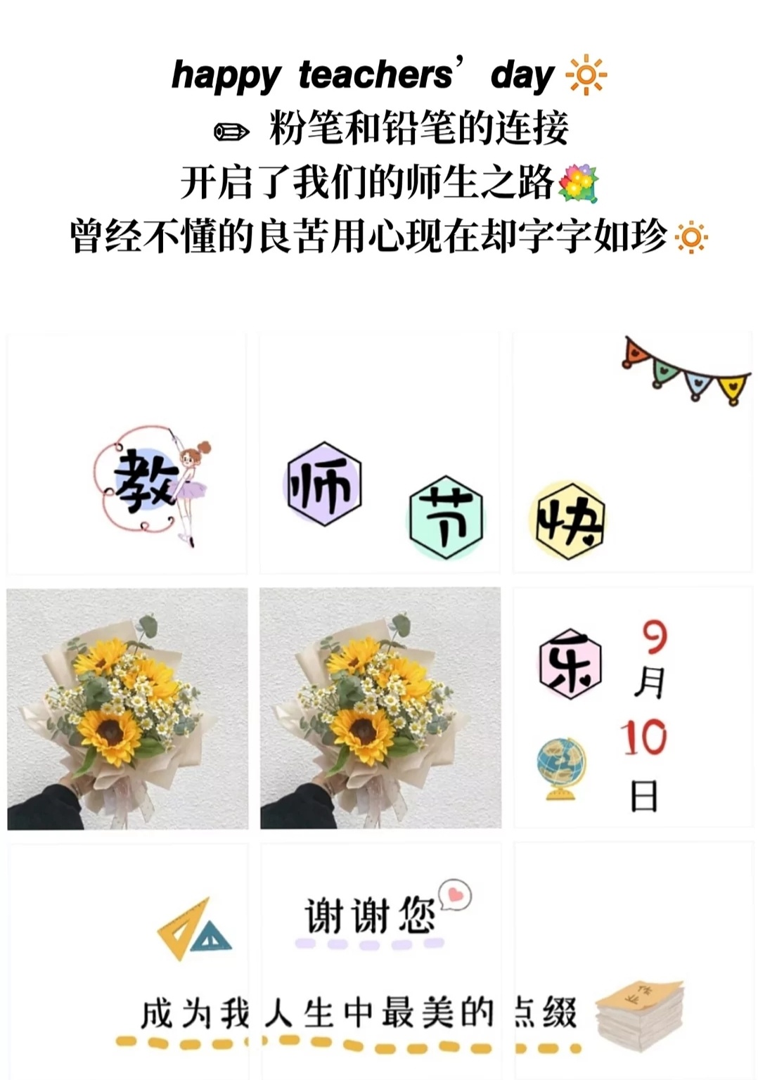 #教师节 #教师节快乐 #老师您辛苦了 #表达谢意 #感恩老师 #9.10教师节 #教师节文案 #朋友圈九宫格 #教师节九宫格素材