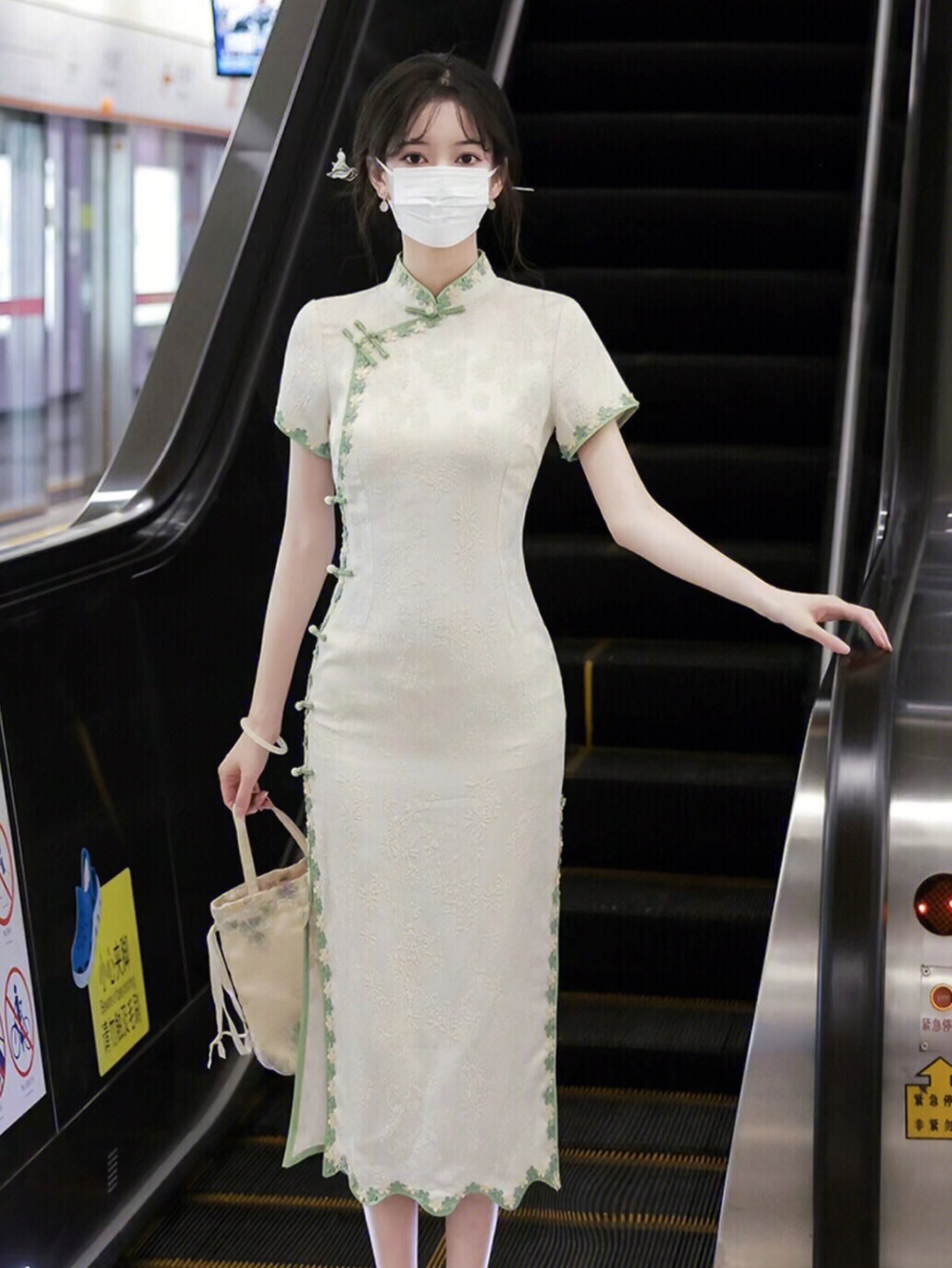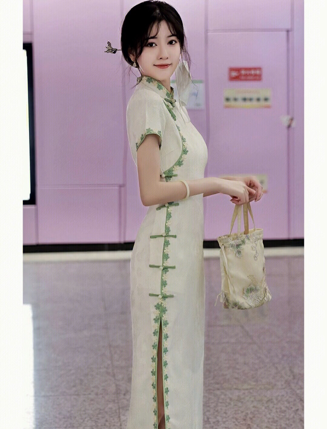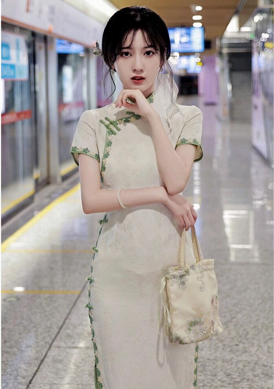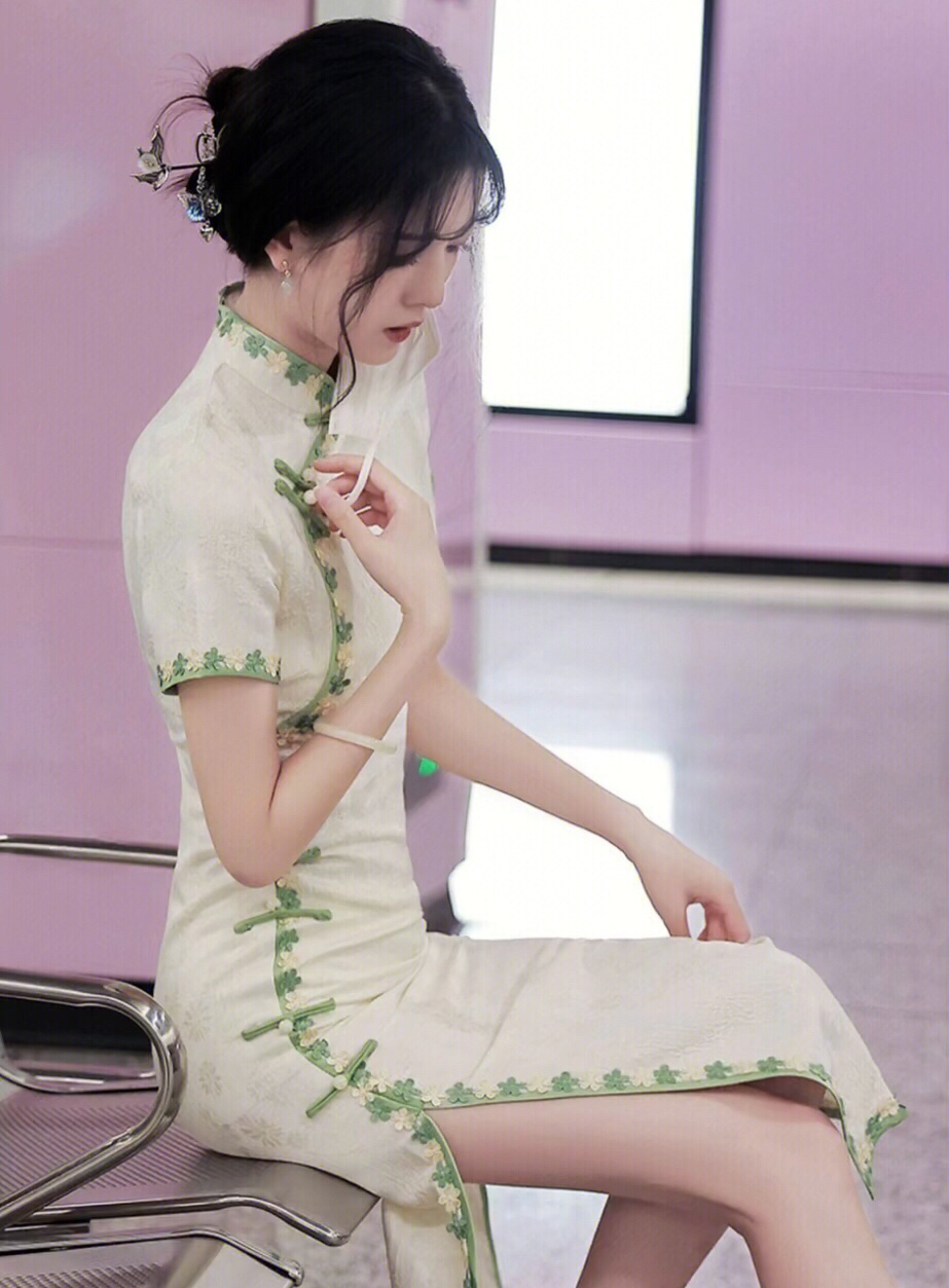 旗袍~做个温婉素雅少女,这个颜色好显白,上身巨显身材、淑女气质满满……