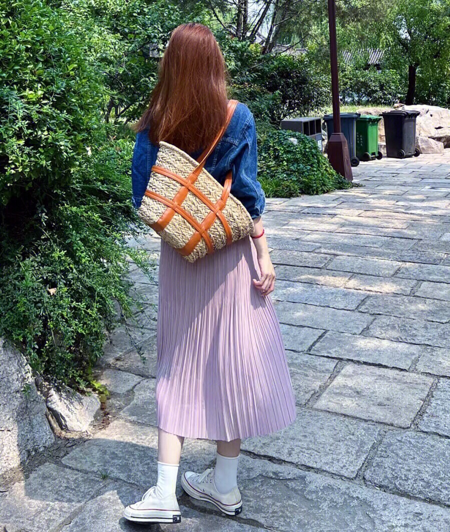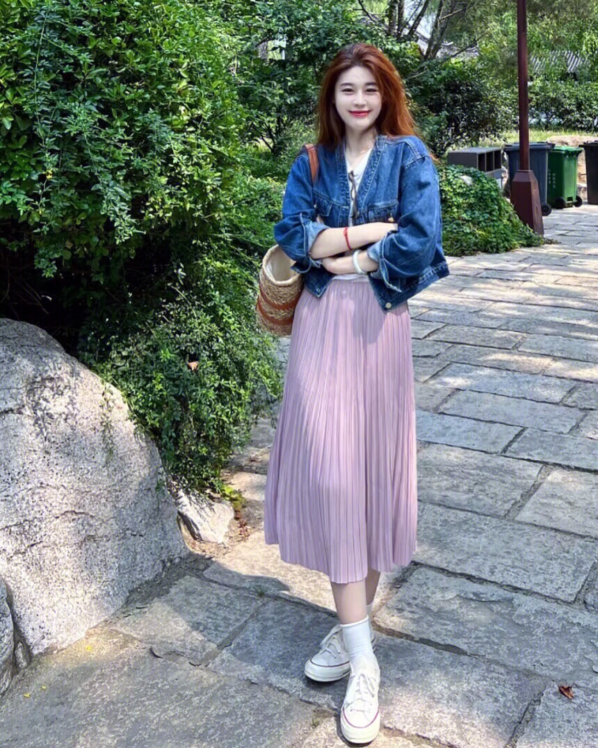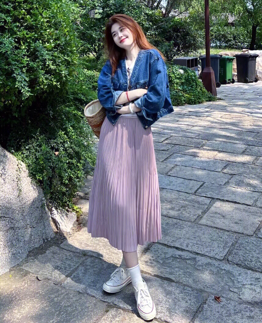 牛仔外套和针织开衫是秋天的入场劵吧,温温柔柔百褶半裙~百搭又显瘦……