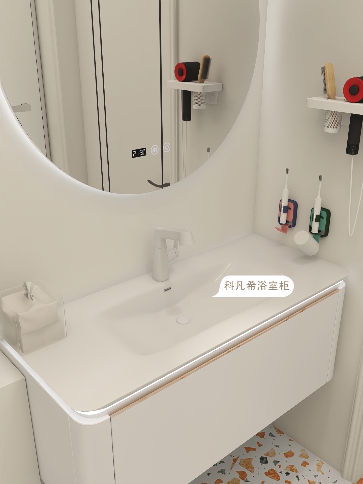 🎀琦美石可丽耐一体盆 外观真的没话说,素白简约的外型,圆角边设计,整体流畅又高级🤖。而且下面是一个柜子的设计,可以收纳好多东西💪