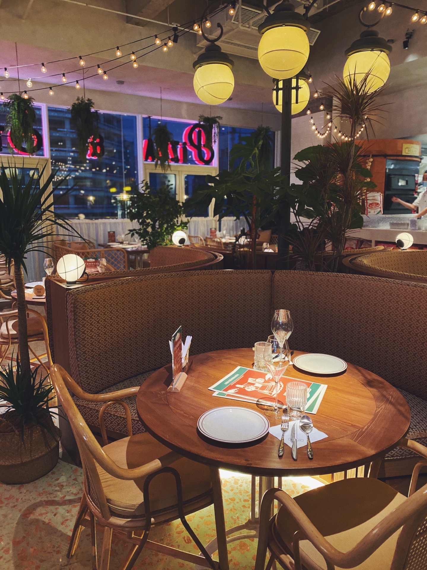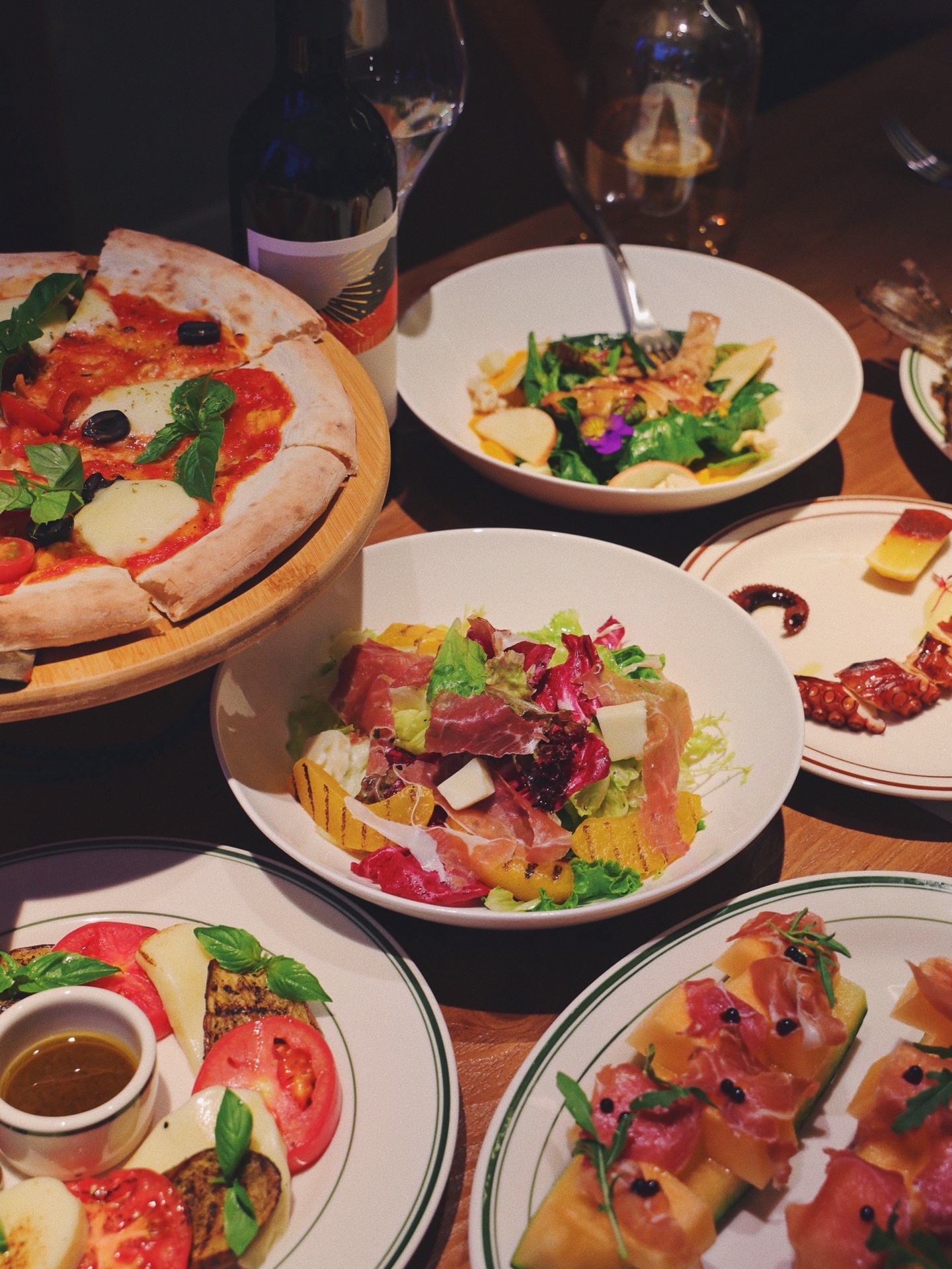餐厅设计融合了意大利特有的古典与浪漫,户外露台与绚烂霓虹交相辉映,俯瞰车水马龙,别有一番滋味。手作现烤披萨是我最爱的意式薄底,个人很喜欢玛格丽特和黑松露菌菇披萨,刚烤出来的饼底酥脆带着面香,浓郁番茄和大块水牛芝士入口缠绵交叠,就很意大利。