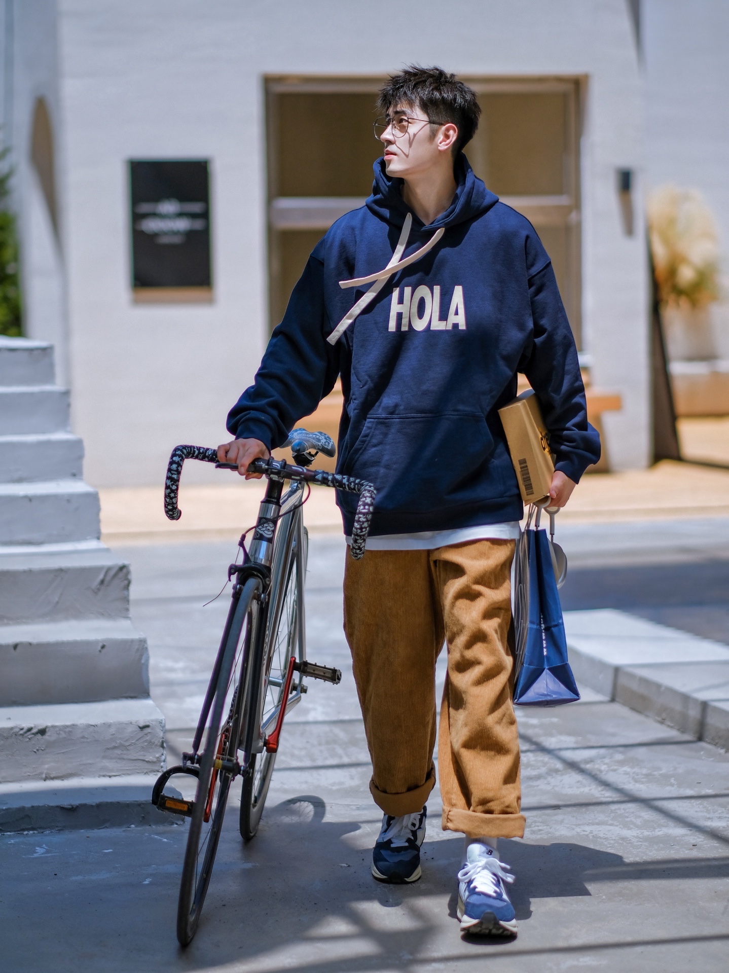🔹今天分享一套“城市运动穿搭”,属于连帽卫衣的少年感穿搭,简约舒适的搭配,真的是男孩子的日常选择。【藏青色】搭配【暖咖色】,一整个复古撞色系,满满的街头少年感。