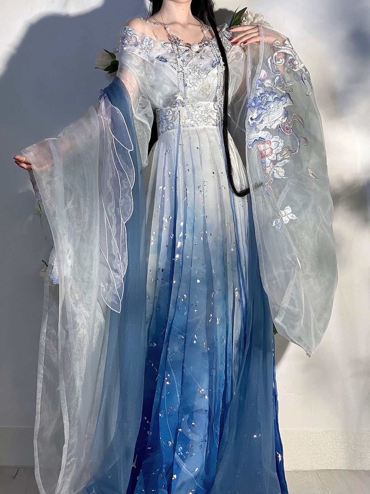 甄姬魏晋南北朝大袖襦女 重工刺绣改良汉服 烫银印花齐腰裙