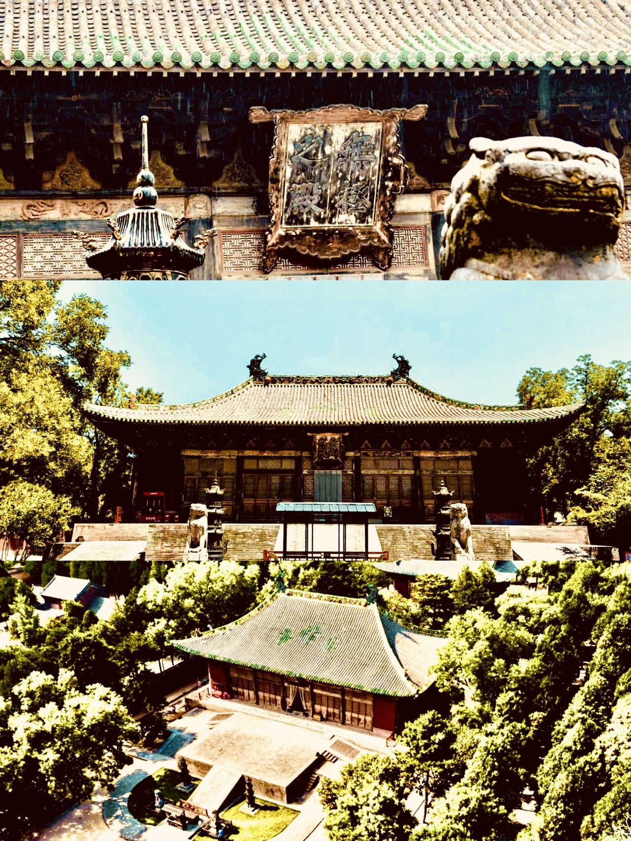三座大殿均采用了“减柱法”建造,内部空问因此更加敞亮开阔,大胆的想象一下,700多年前古人大抵是为了能让更多的光亮进入大殿,能以最佳方式欣赏殿内的三幅鸿篇