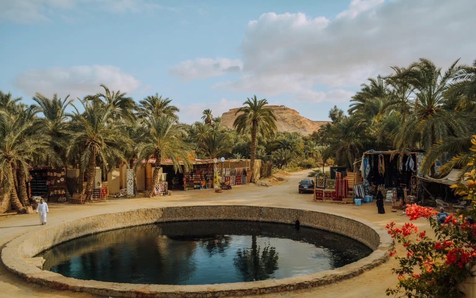 埃及 Siwa 锡瓦绿洲地处广袤沙漠的深处 像是一颗洁净的绿宝石镶嵌在撒哈拉之中 这里的小镇古老而沧桑 与棕榈树交相辉映 还有色如橄榄的盐湖 成了绝佳拍照打卡地