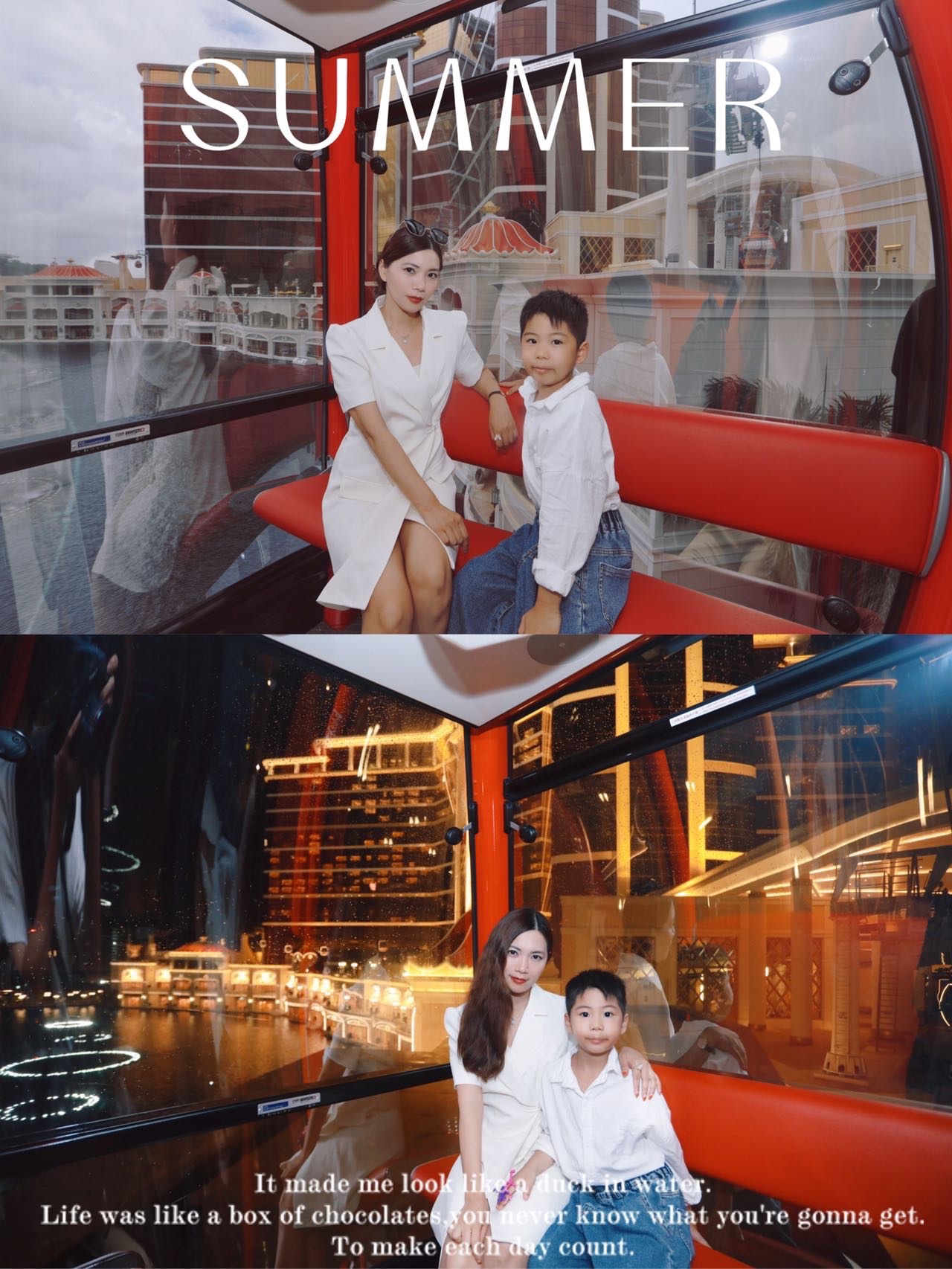 而乘坐观光缆车来到酒店,绝对是一种非常有趣的体验,在缆车上,能看到表演湖上精彩的演出,也能看到澳门路氹的繁华美景。