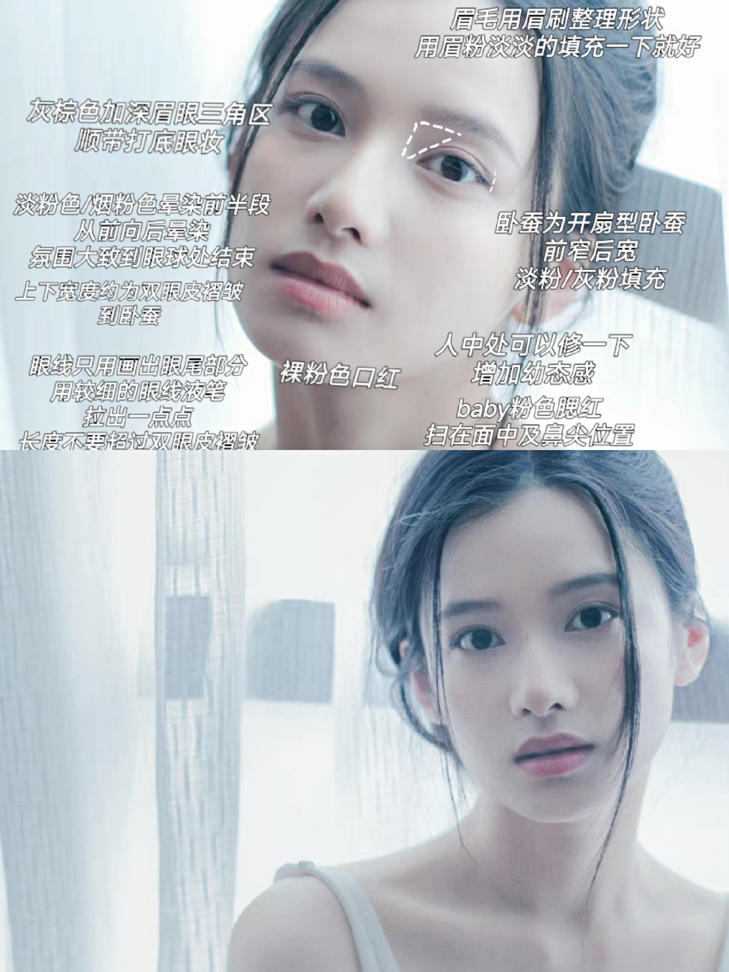 又是沉迷于张婧仪美貌的一天,她是属于耐看型,越看越好看的那种,自从看了她演的《我要我们在一起》之后,每次看be文学,第一个想到的就是她[哭惹R] 这次的妆容是一个无妆感的淡颜清冷妆,她的妆容大部分都很淡,淡颜系的姐妹们真的可以多看看她的妆容,少女感与清冷感完美融合 比较重要的是底妆和遮瑕,这是一个无暇的底妆,黑眼圈和瑕疵一定要多遮遮好,如果五官底子不错,多学一下张婧仪的妆容绝对王炸 再推荐一个眼影盘,准确的是眼影的配色,🈚光,自己买的,好久之前就在用,平常用的也比较多,新学化妆的姐妹们可以入一下这种配色,随便一个牌子的就可以啦!