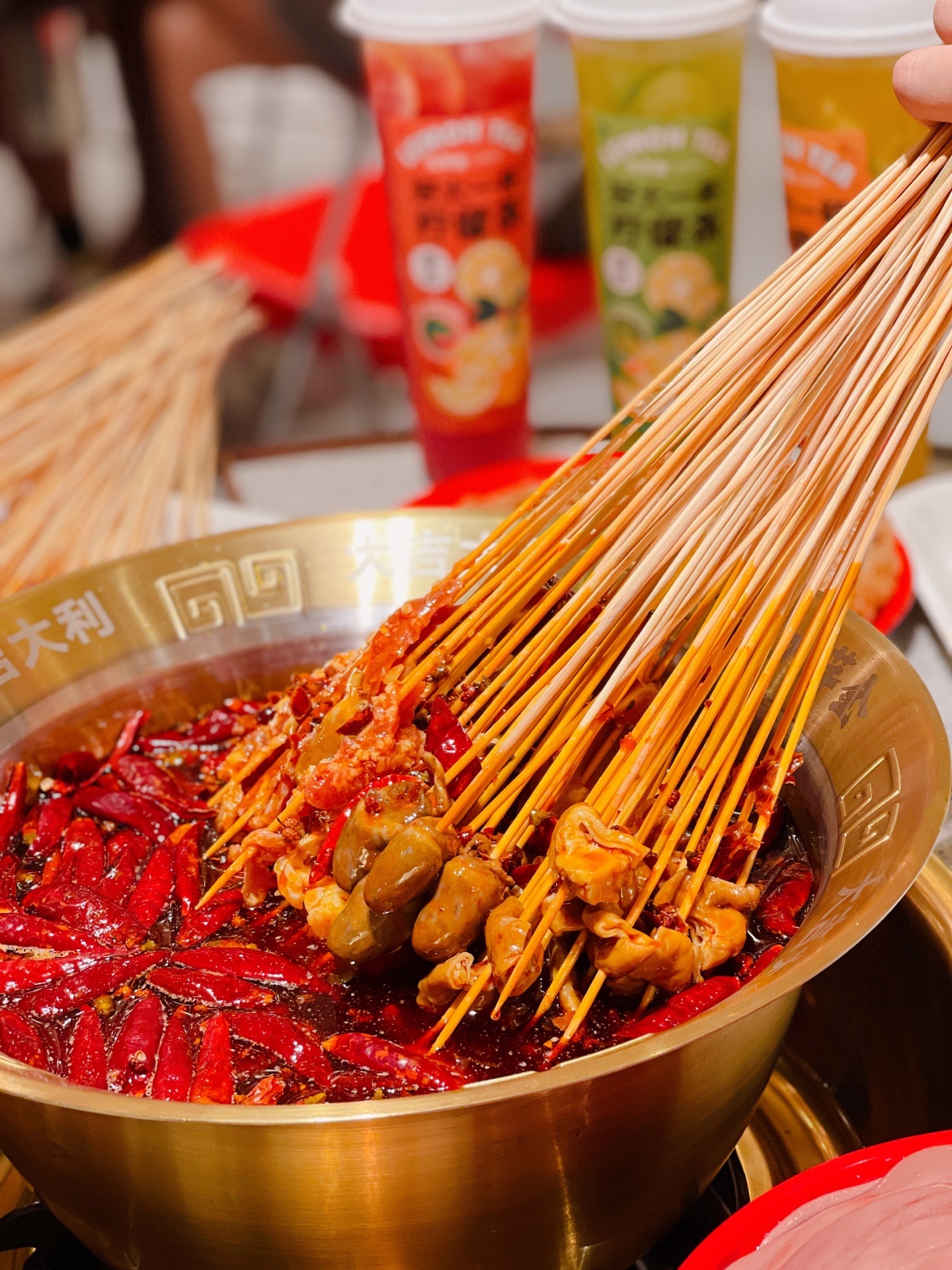 摩登复古氛围分分钟出大片📷浓香的荔枝味牛油锅底简直绝🉑️各种串随便拿👌肥肠/城口腊肉/嫩肉片/虎皮凤爪/黄金酥肉 每个都😋