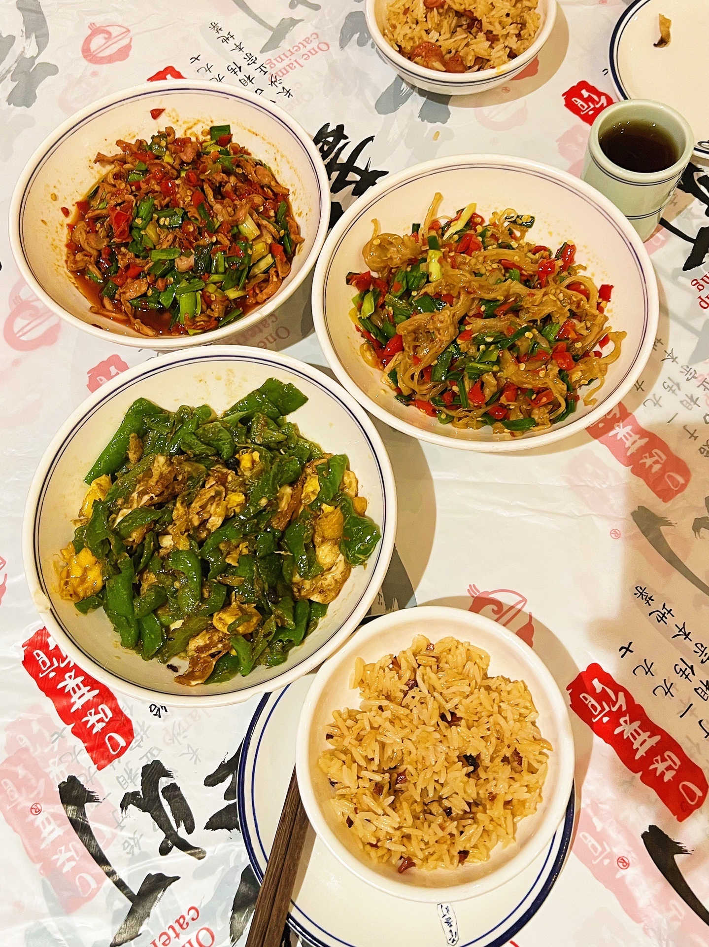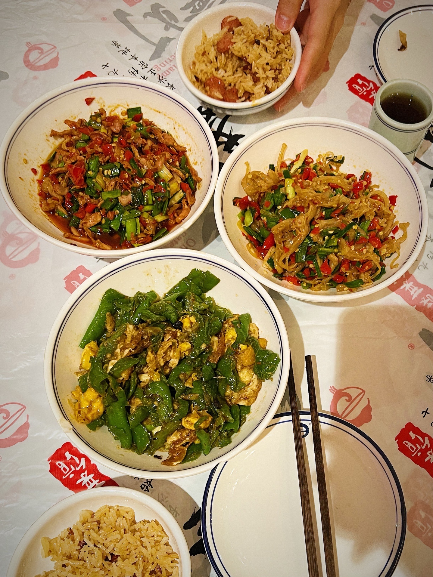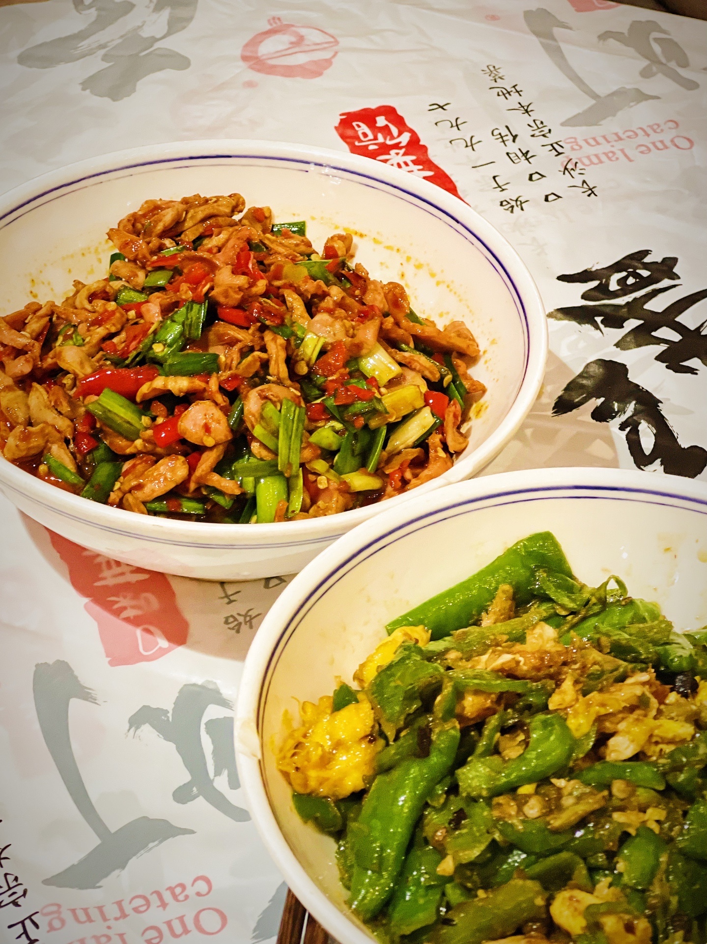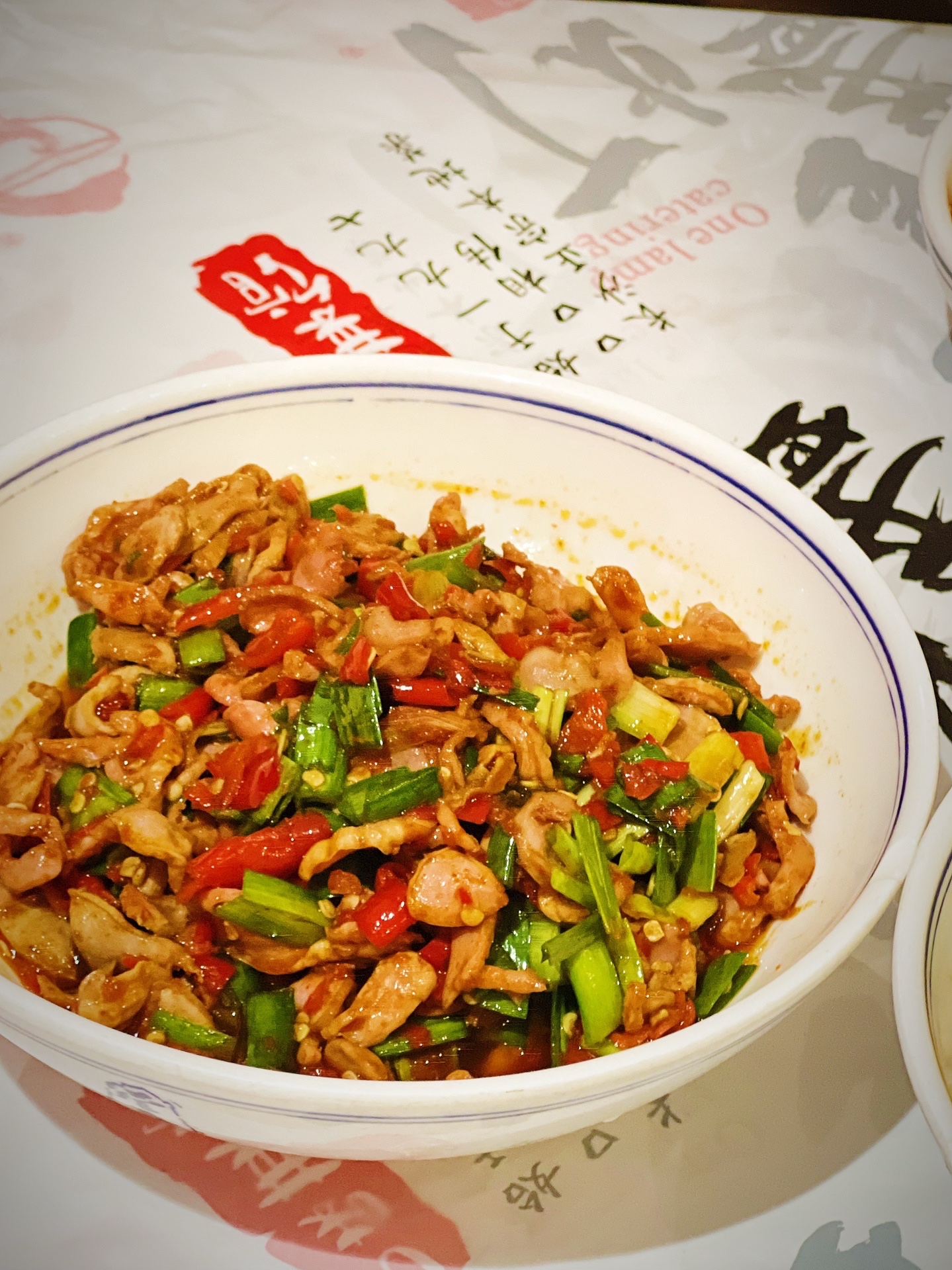 🍒「鸭掌筋」辣度三个辣椒。直接一碗剔骨鸭掌筋炒好几种椒,第一口还好,两分钟以后开始冒汗。。。