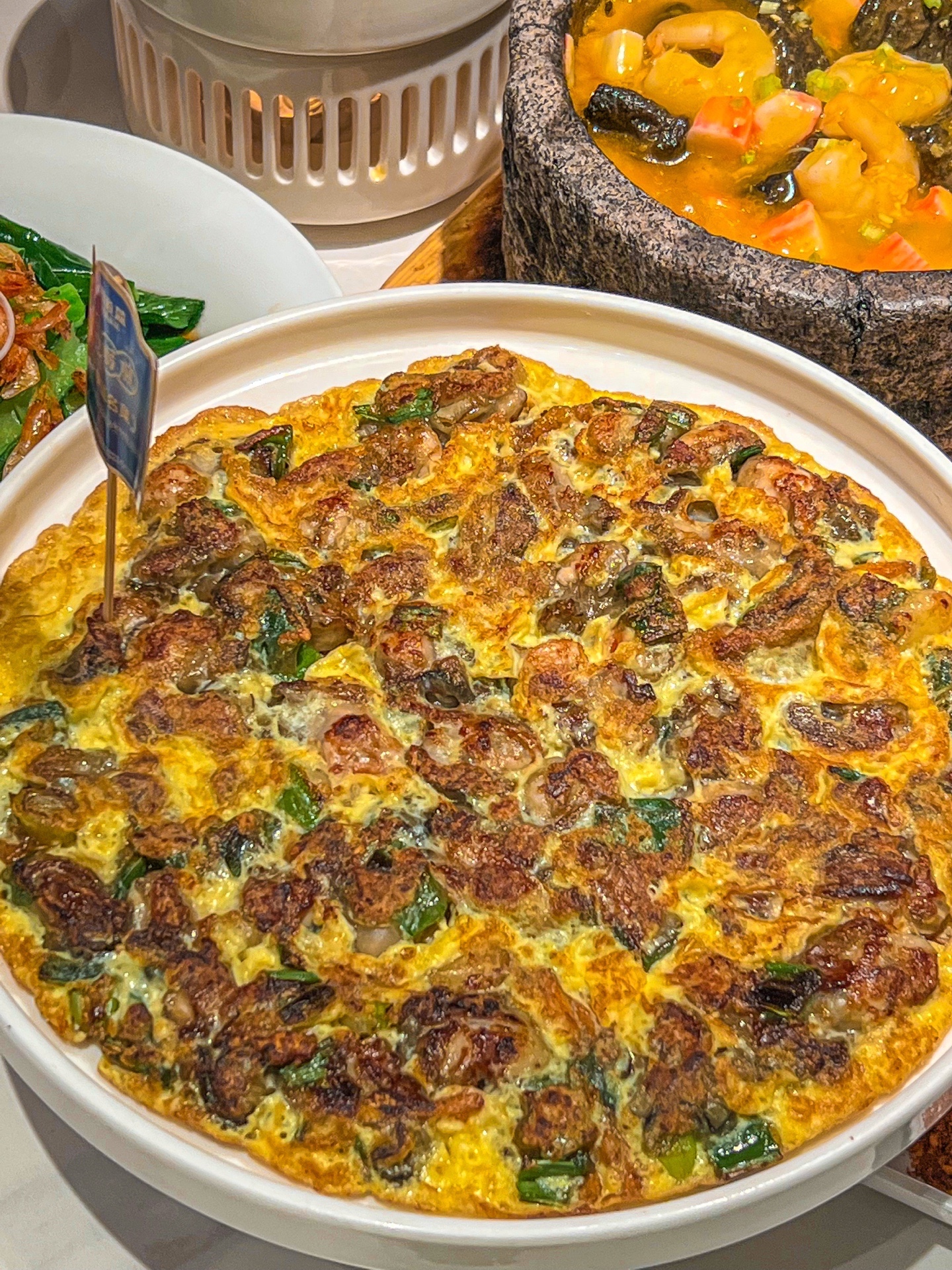 鸡蛋➕海蛎子➕蔬菜,吃起来🈶蛋饼的美味也有海鲜的香,搭配店里秘制的蘸料,还有榨菜,炒鸡美味~