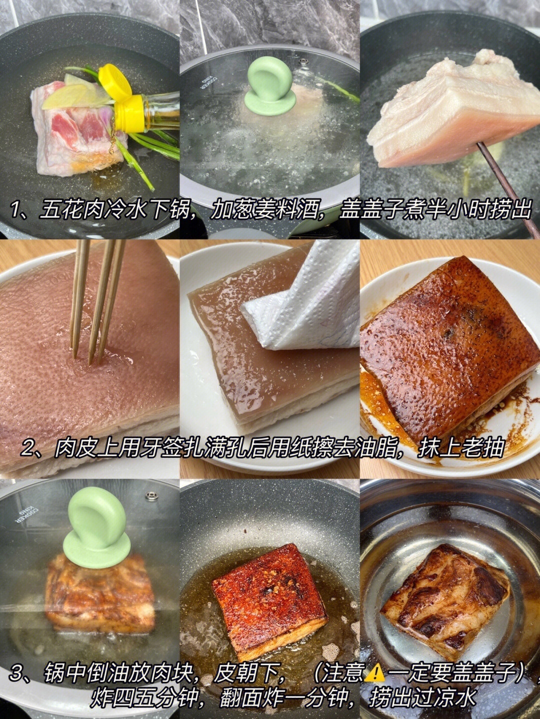 1、五花肉冷水下锅,加葱姜料酒,盖上盖子煮三十分钟捞出。
