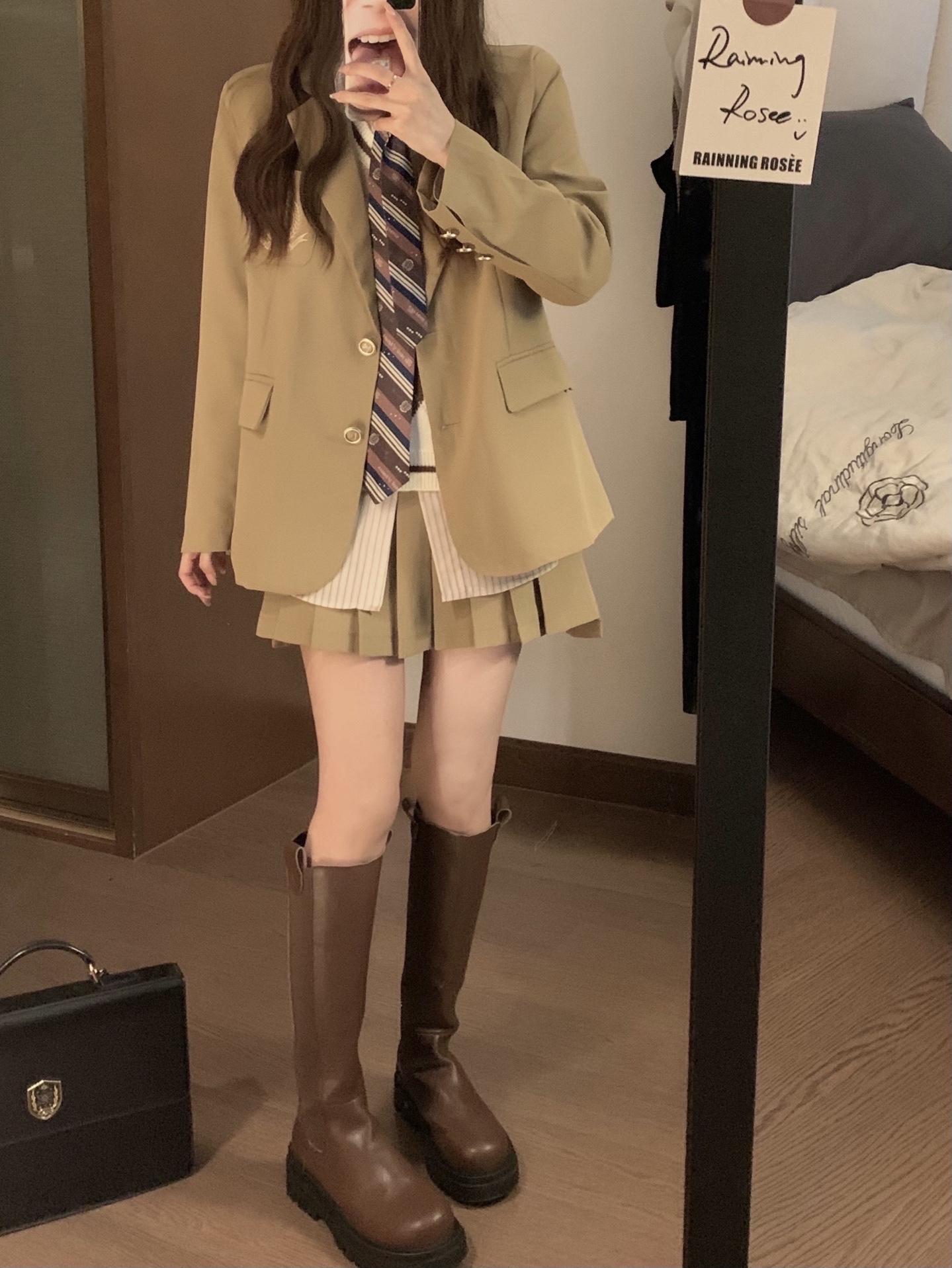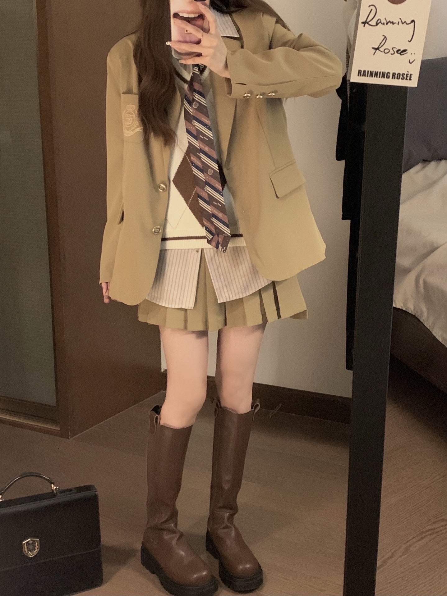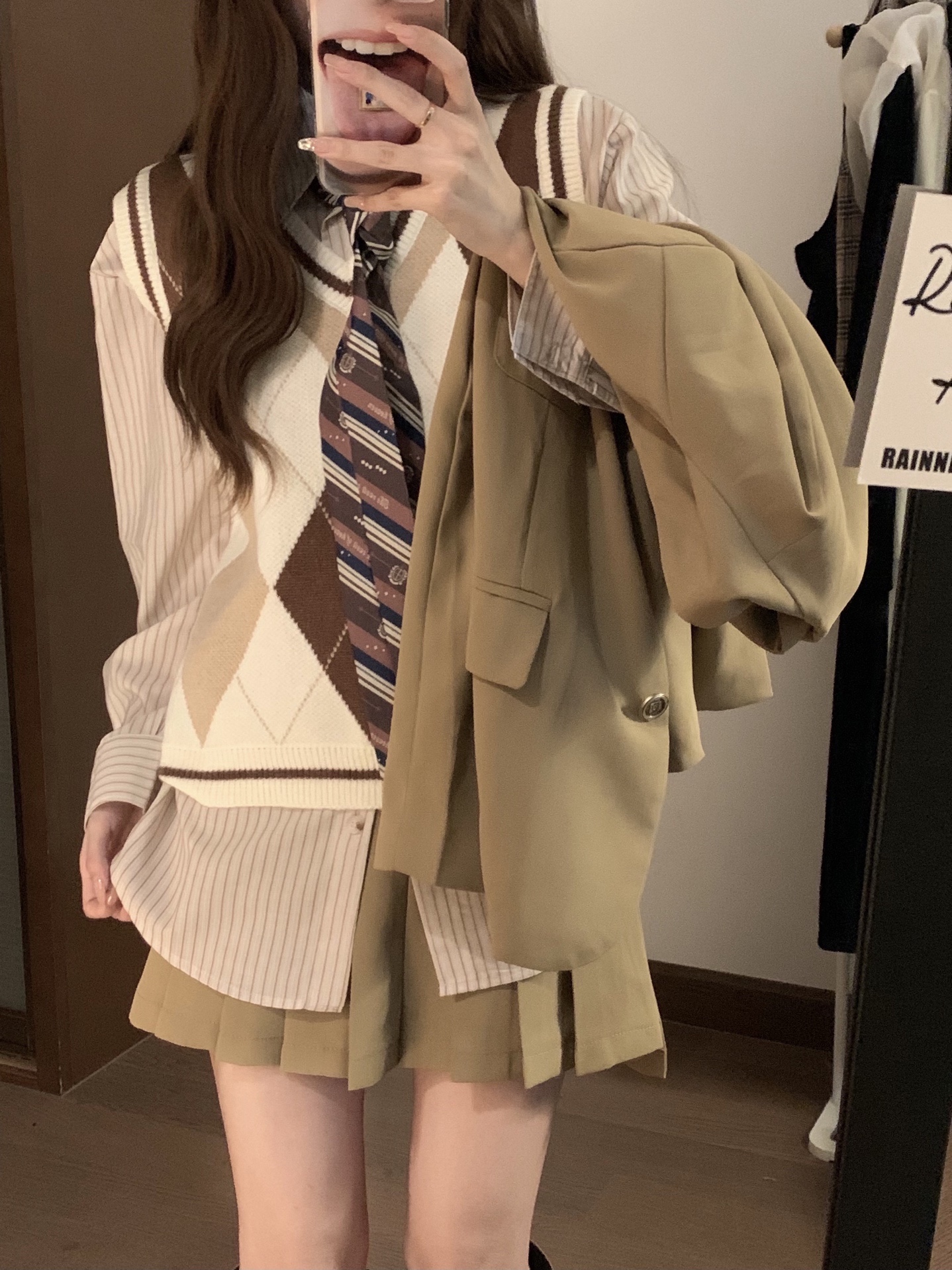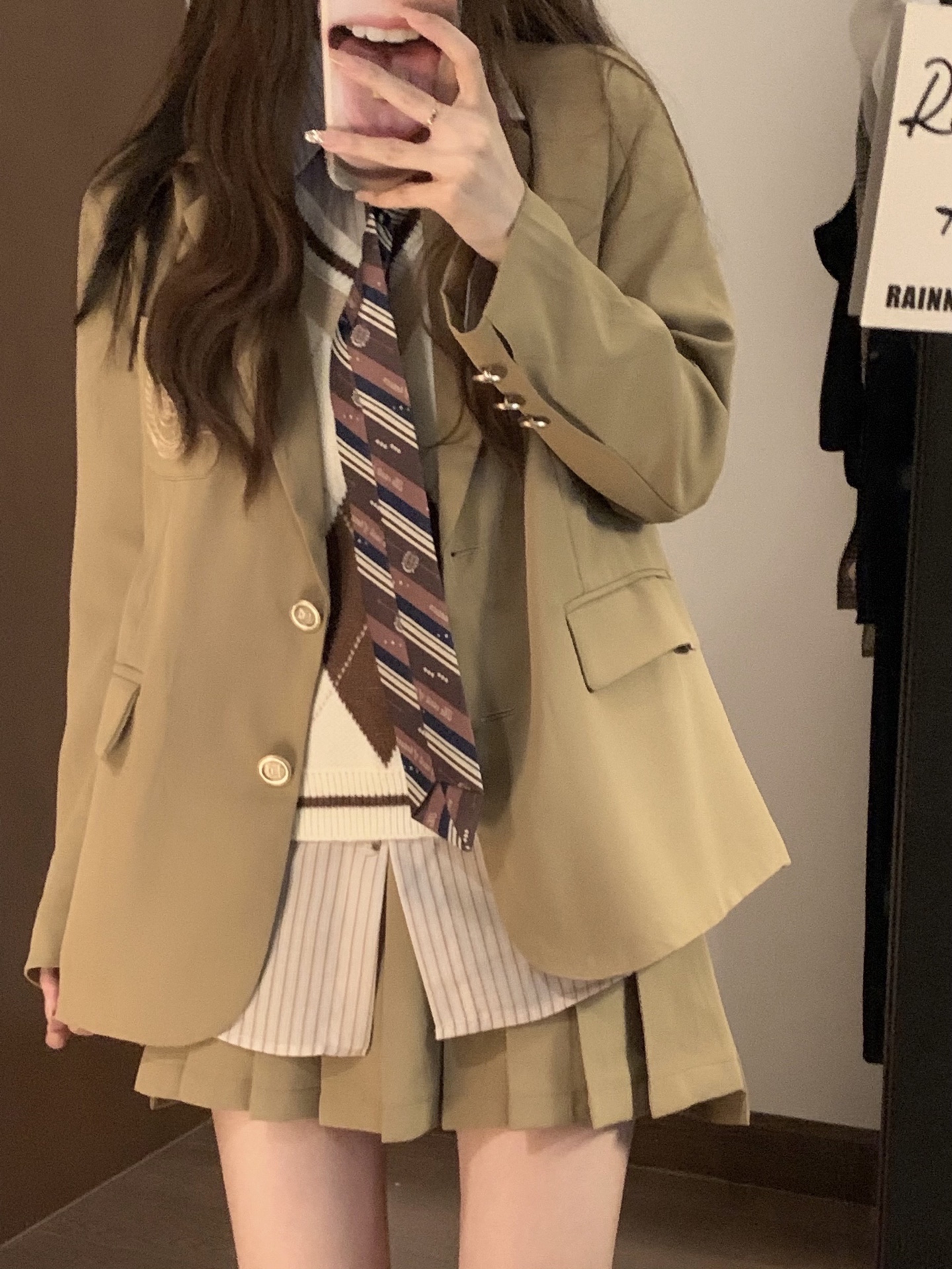 韩式卡其色西装外套学院风休闲小西服宽松百搭套装