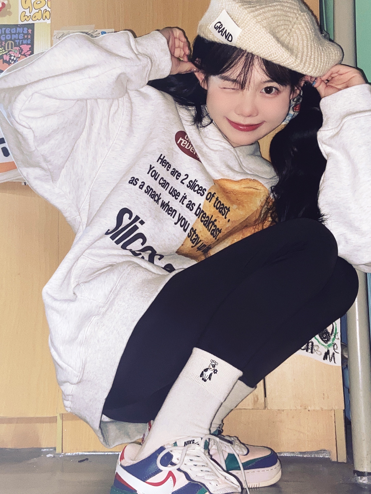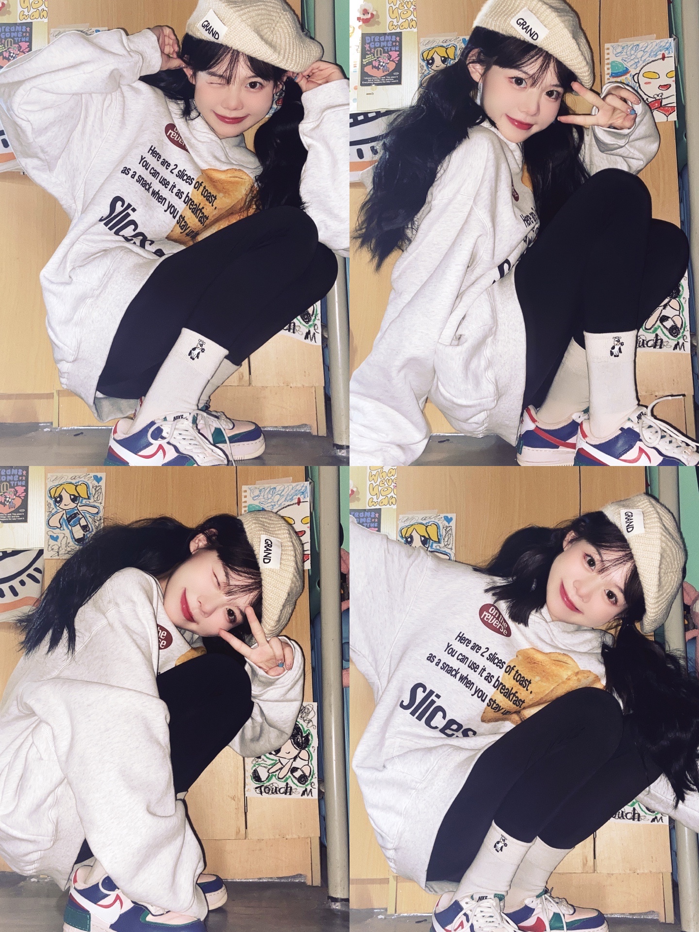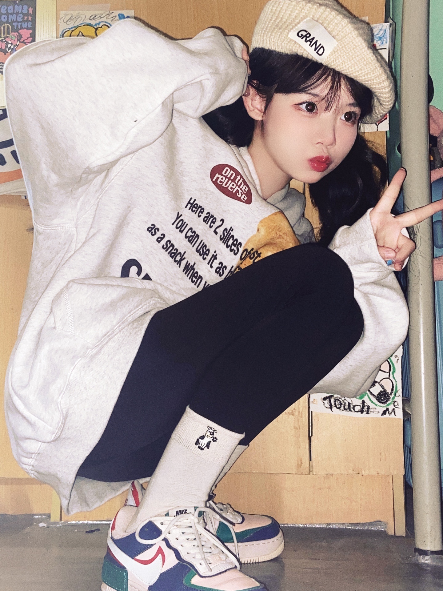 3⃣️反季节穿搭加上蹲姿拍照绝绝子!卫衣配短裤再穿个厚底鞋我已经开始期待秋天了,真的很难不爱!
