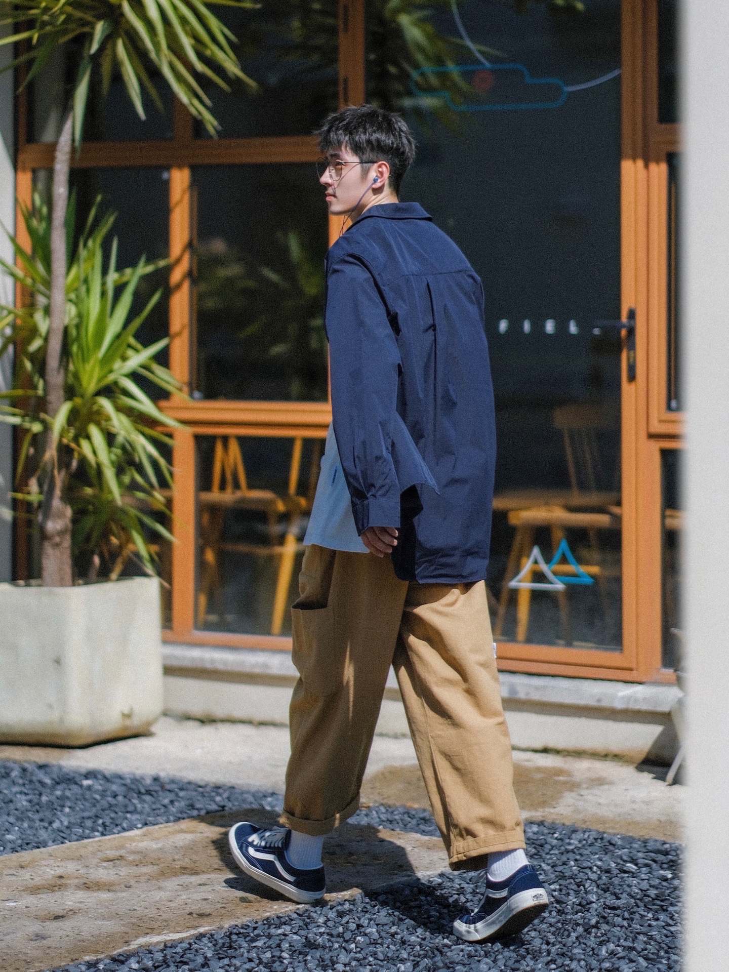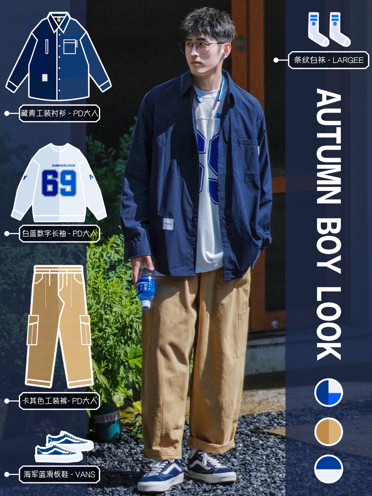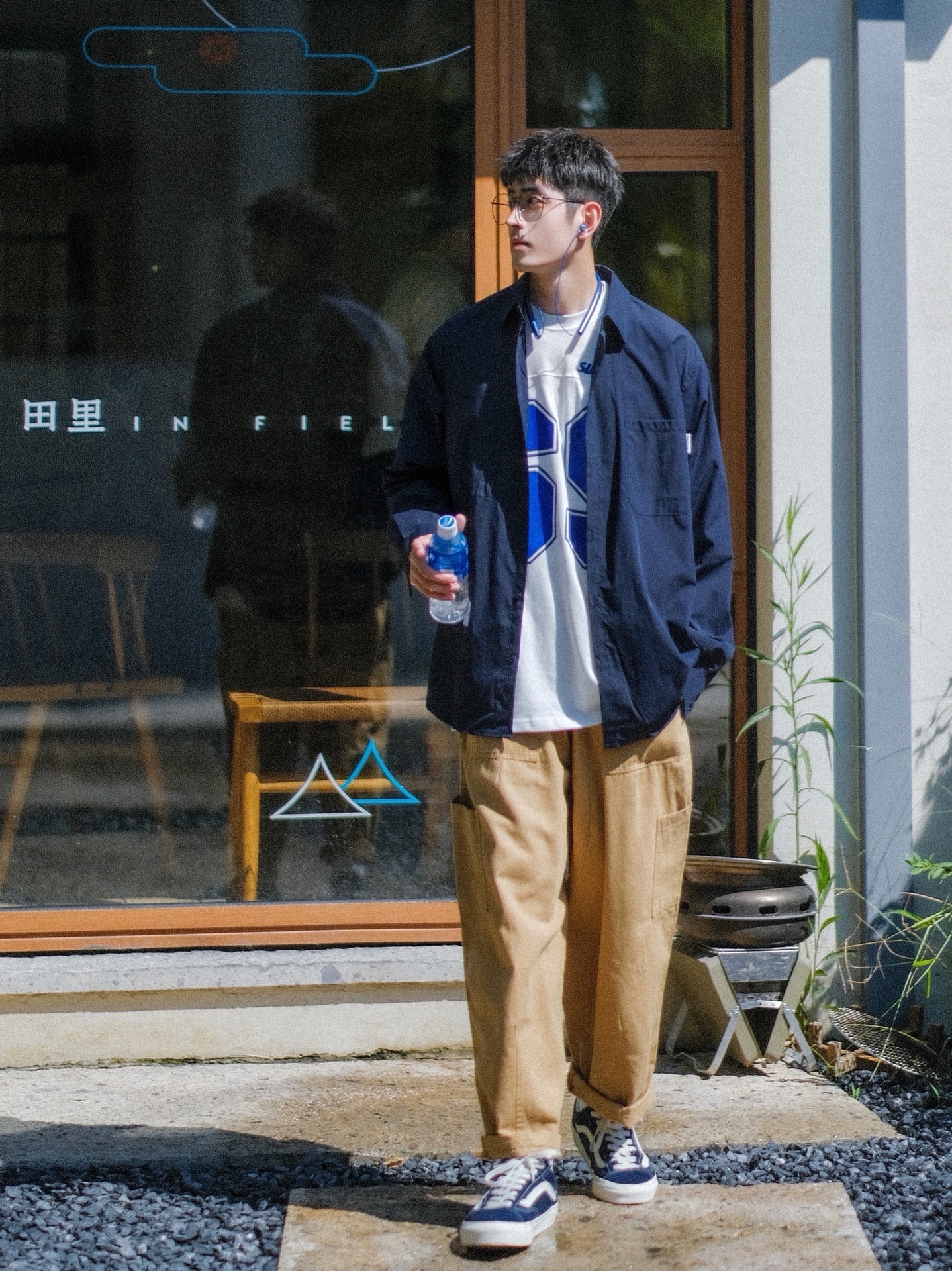 🔹真的好喜欢【藏青色】,深色系的蓝,给人好舒服的质感。今天分享一套初秋OOTD,适合男生入秋后出游穿搭,运动休闲混搭,简单帅气的一件纯色衬衫,打底一件数字印花运动T恤,减少了衬衫的单调感,休闲结合运动元素,再搭配一条卡其色工装直筒裤,穿上我的海军蓝滑板鞋,一整个简约帅气,适合男生秋季穿搭,也是一套好看的城市运动少年感穿搭。