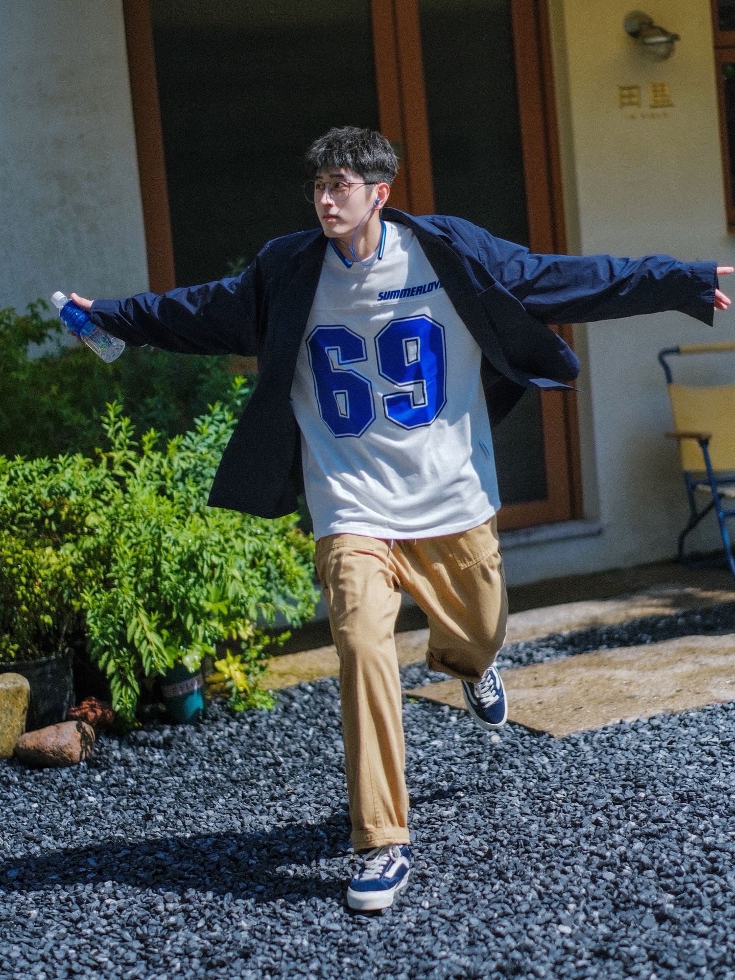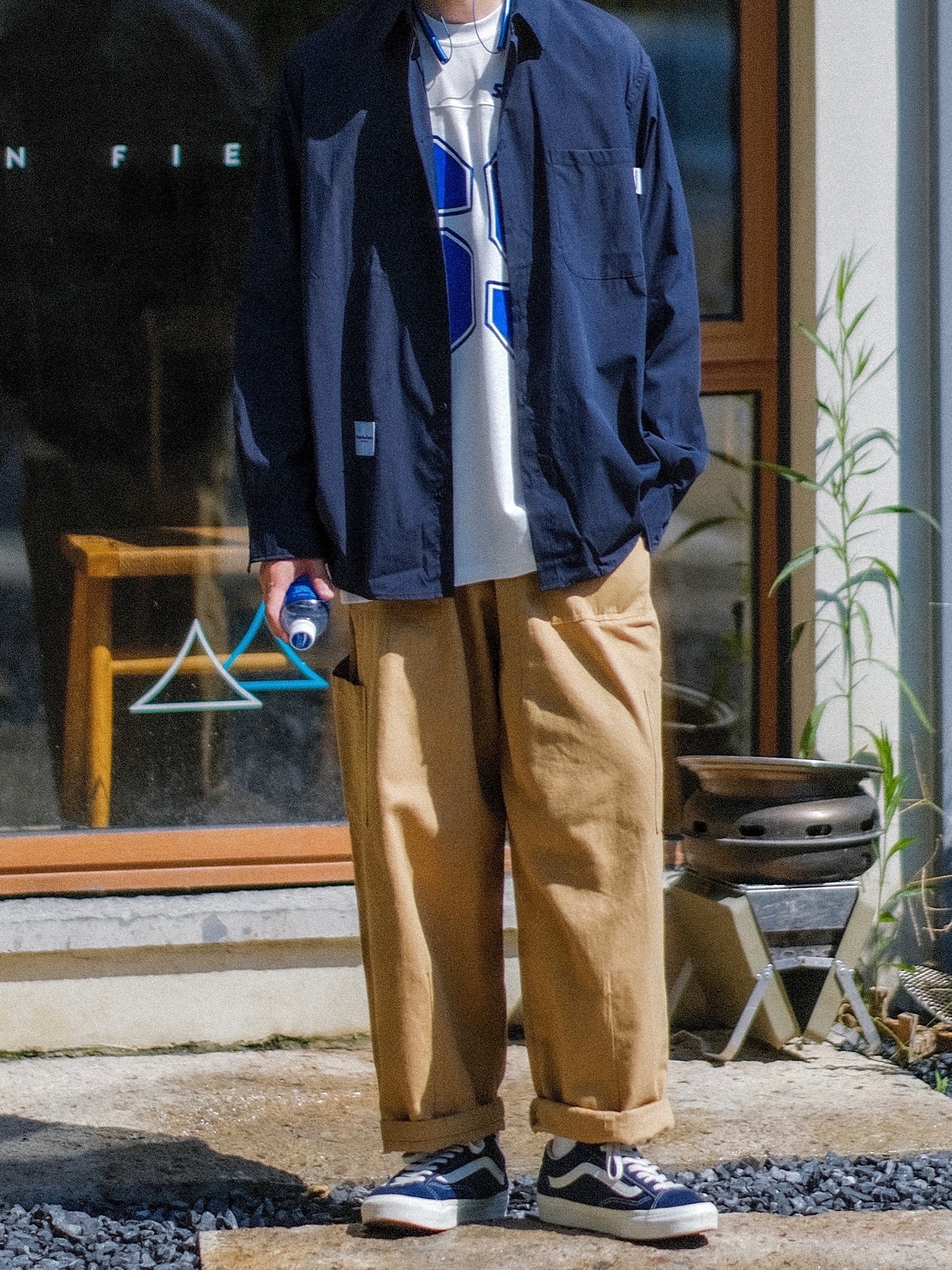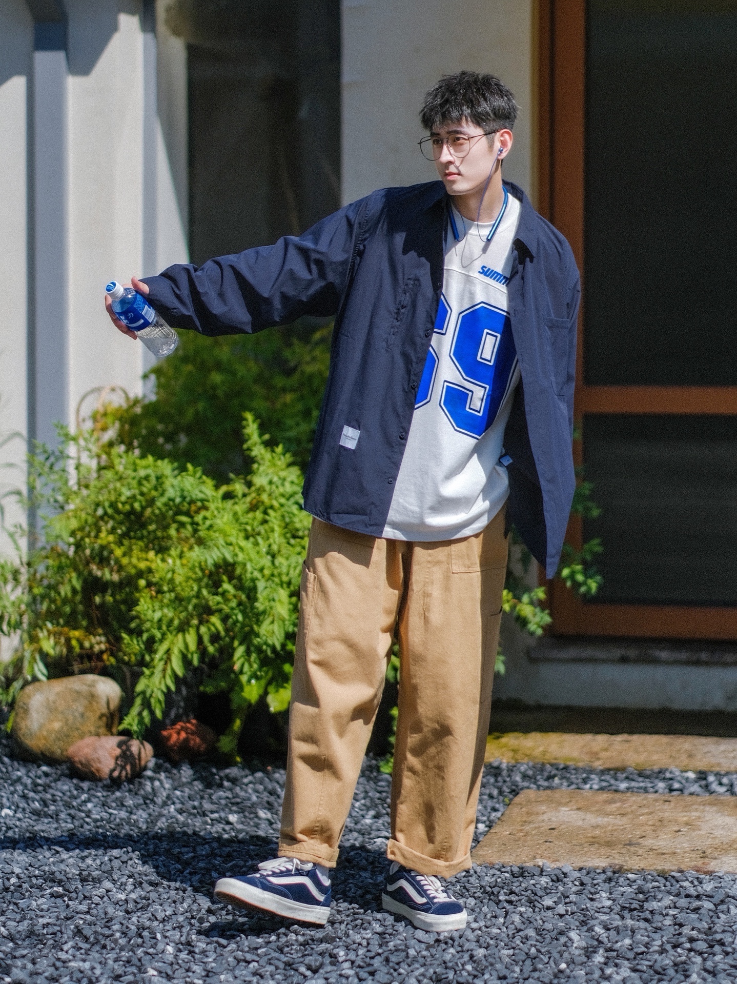 🔹真的好喜欢【藏青色】,深色系的蓝,给人好舒服的质感。今天分享一套初秋OOTD,适合男生入秋后出游穿搭,运动休闲混搭,简单帅气的一件纯色衬衫,打底一件数字印花运动T恤,减少了衬衫的单调感,休闲结合运动元素,再搭配一条卡其色工装直筒裤,穿上我的海军蓝滑板鞋,一整个简约帅气,适合男生秋季穿搭,也是一套好看的城市运动少年感穿搭。