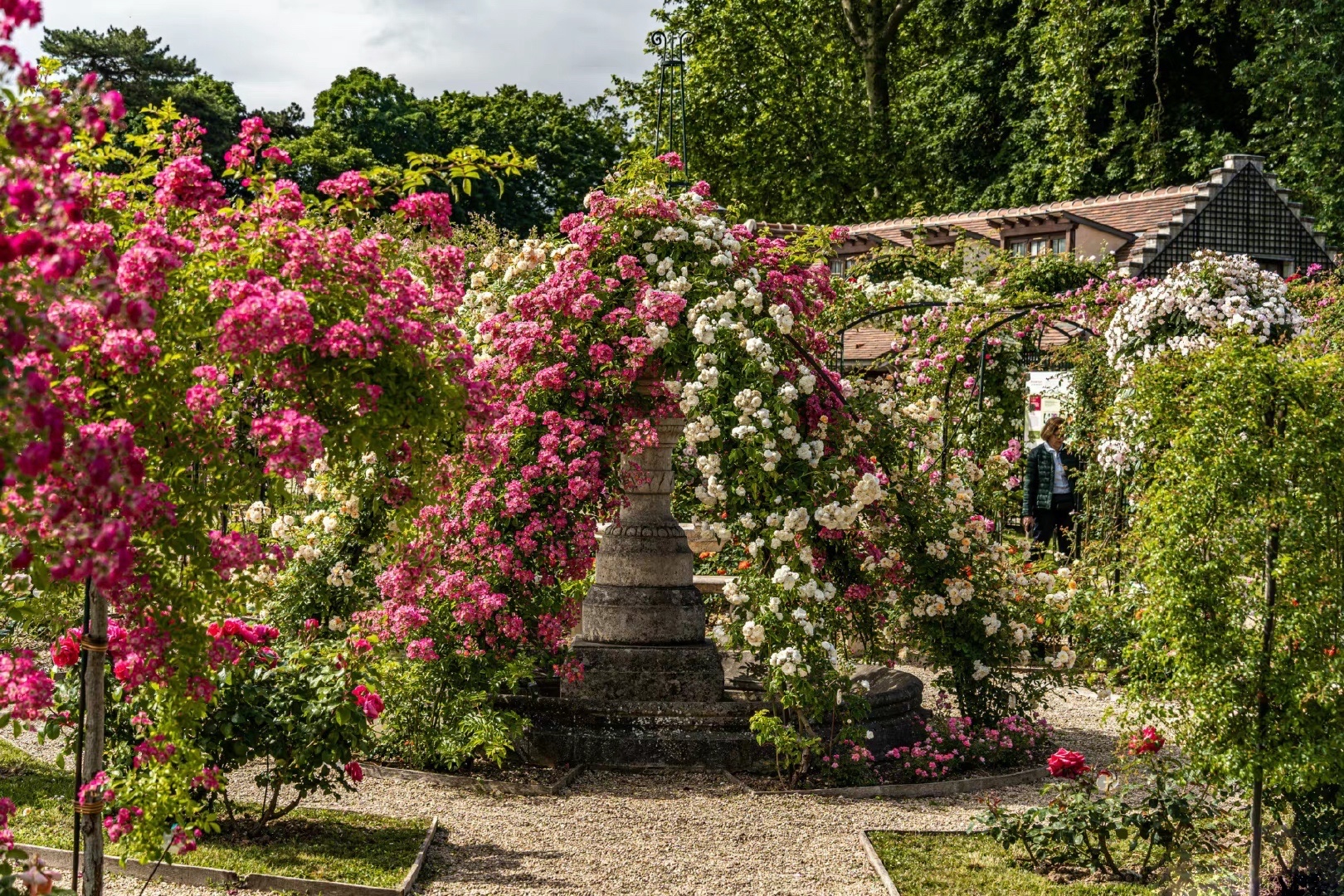 位于巴黎的莱依玫瑰园 Roseraie de L'Haÿ 始建于 1892年 创始人 Jules Gravereaux 从世界各地搜集玫瑰品种栽培在自己的花园里 并不断地研究新品种 在1910年花园里的玫瑰便高达8000 朵 莱依玫瑰园玫瑰品种繁多 红粉争艳 郁郁葱葱 如同一个玫瑰的博物馆 令人忍不住沉溺其中