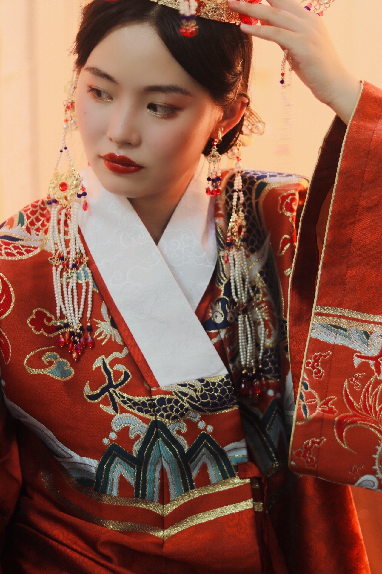 拍照更新摄影红色婚服 明朝 凤冠霞帔