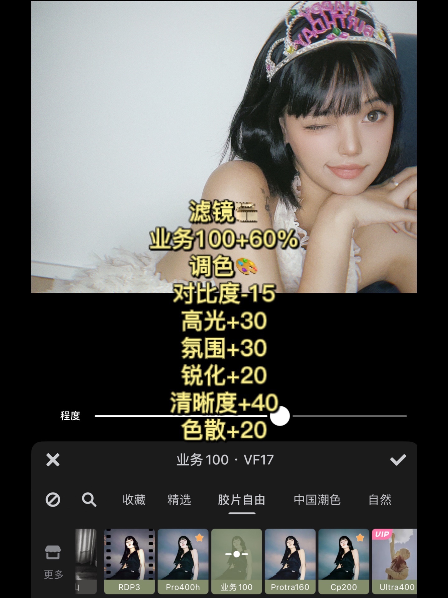 对比度-15高光+30氛围+30锐化+20清晰度+40色散+20