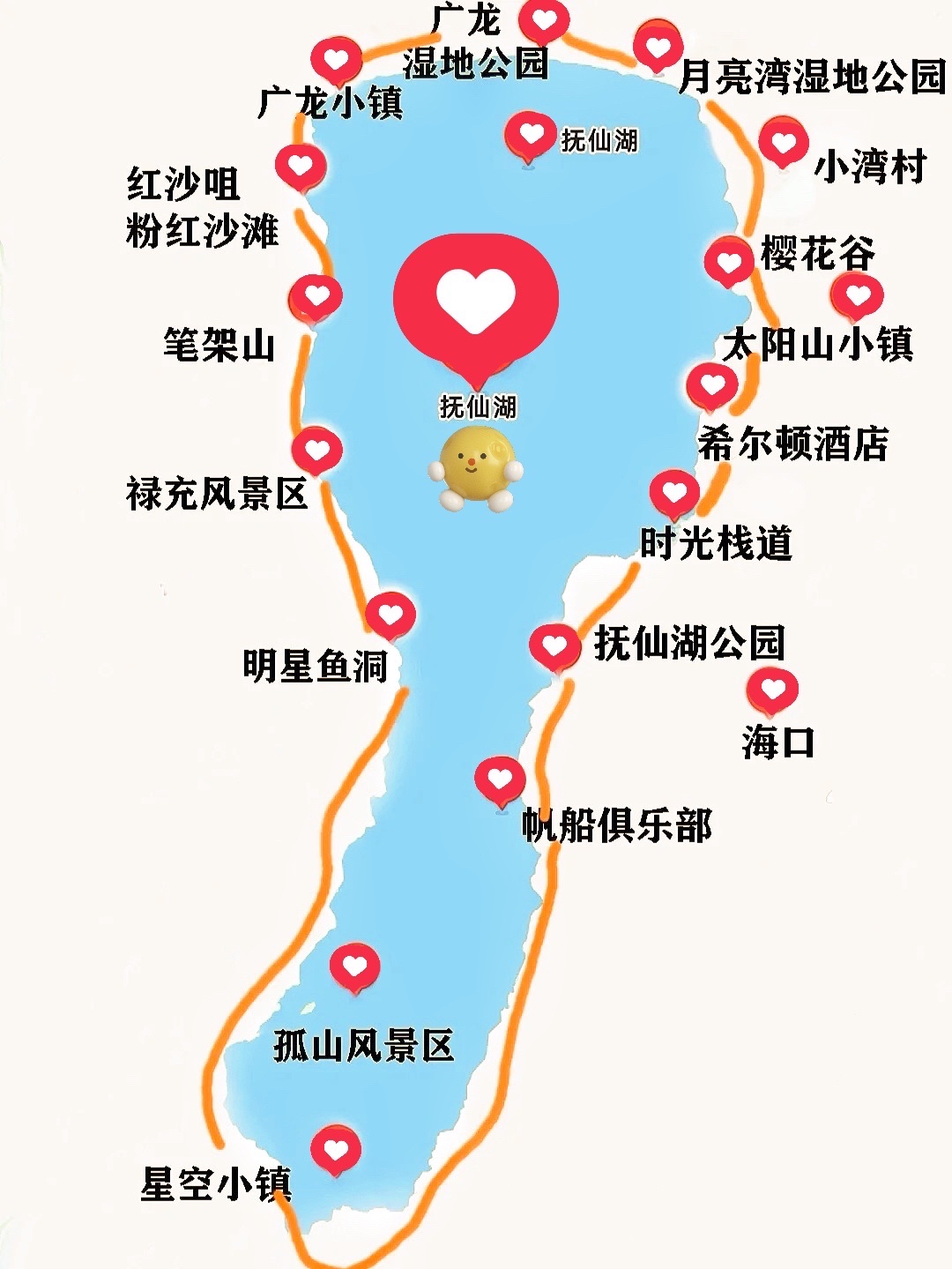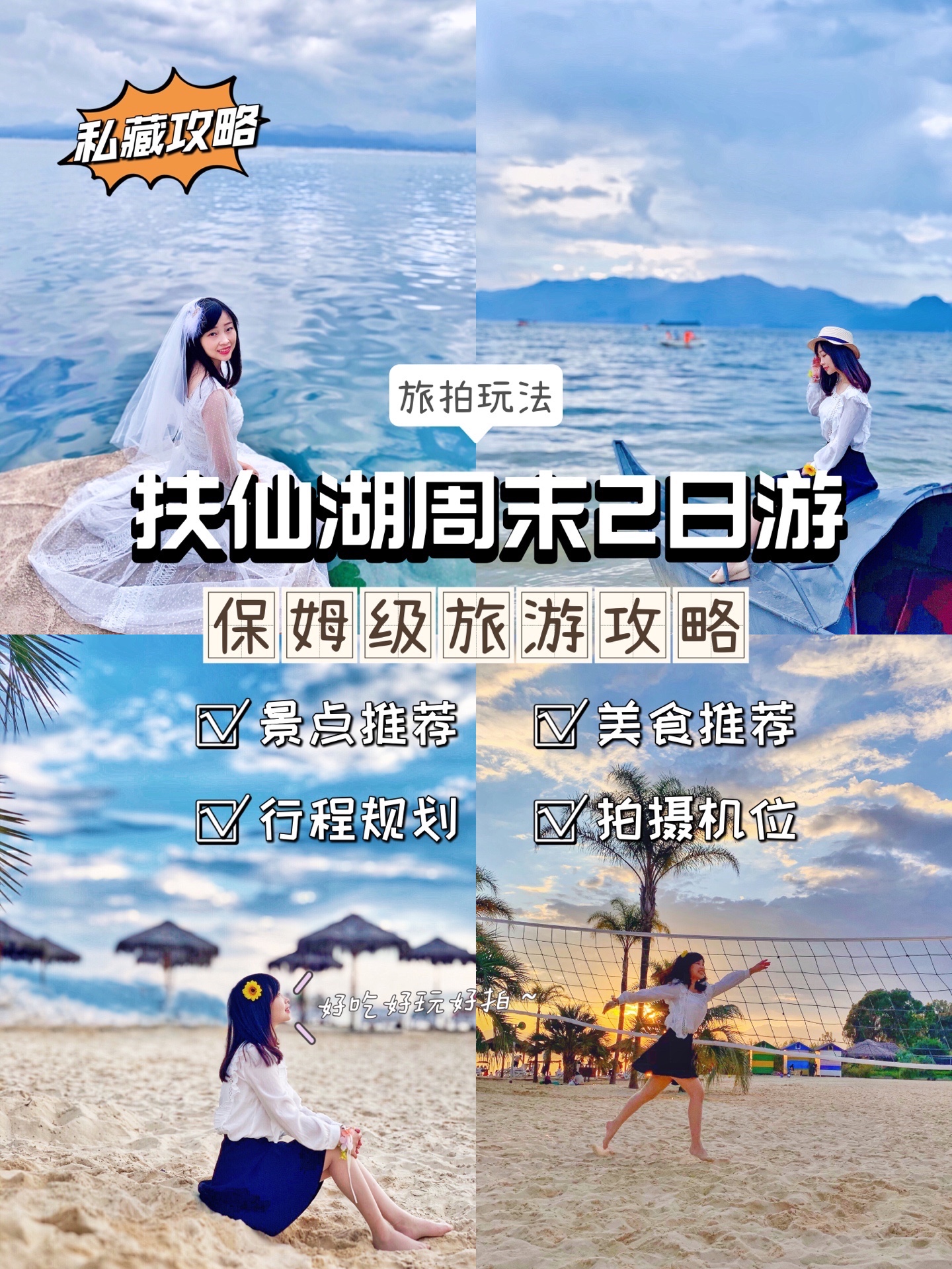 ⭕️抚仙湖景点分布在东、西两边,景色还是较为重复,时间短没必要都去,找两个可以玩水、玩沙、拍照、吃鱼的地方就可以了。