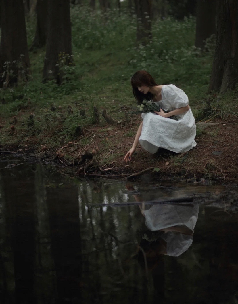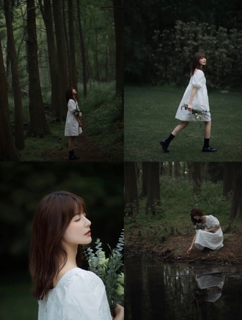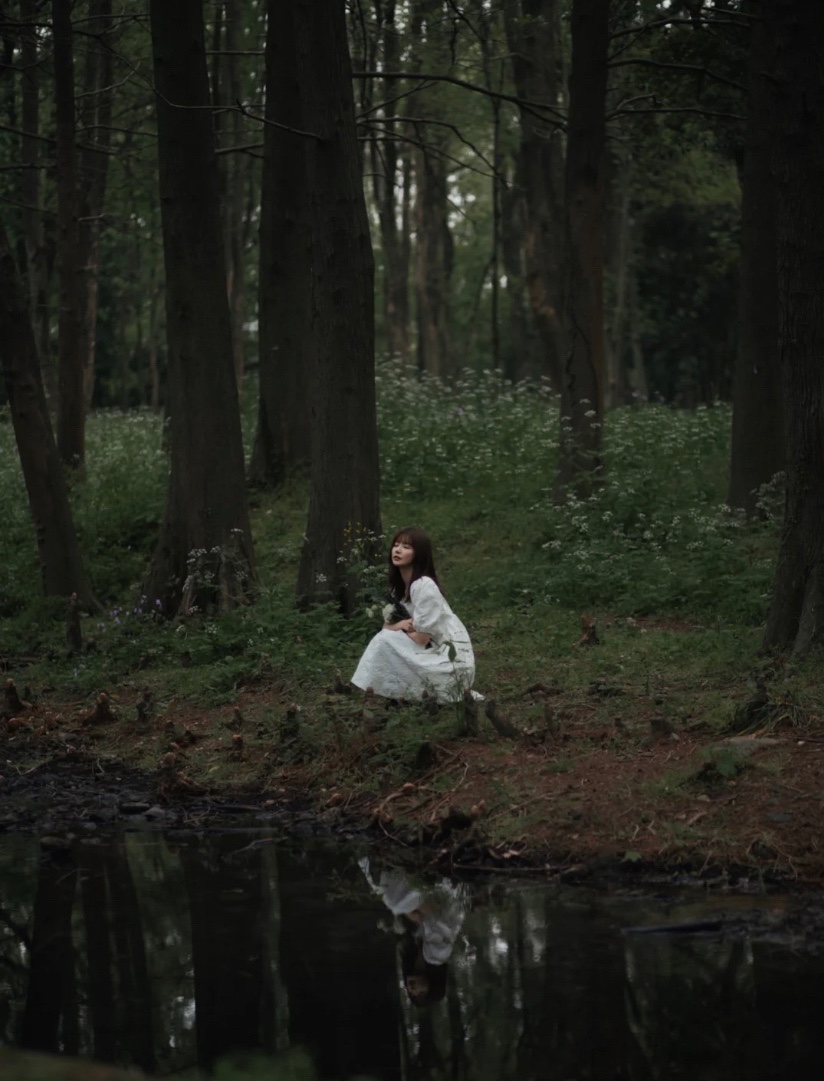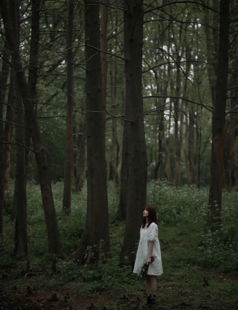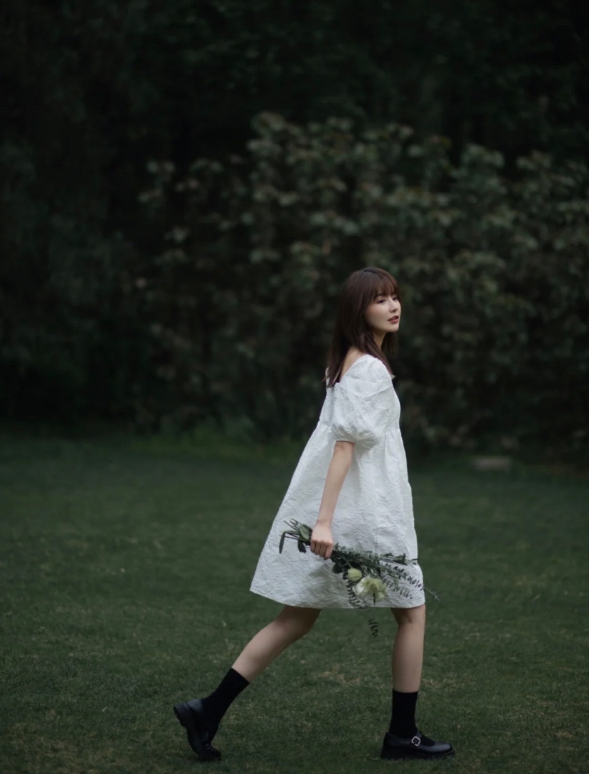 阴天天色很暗的时候拍摄的客片暗的环境建议穿浅色系的裙子白和绿搭配yyds