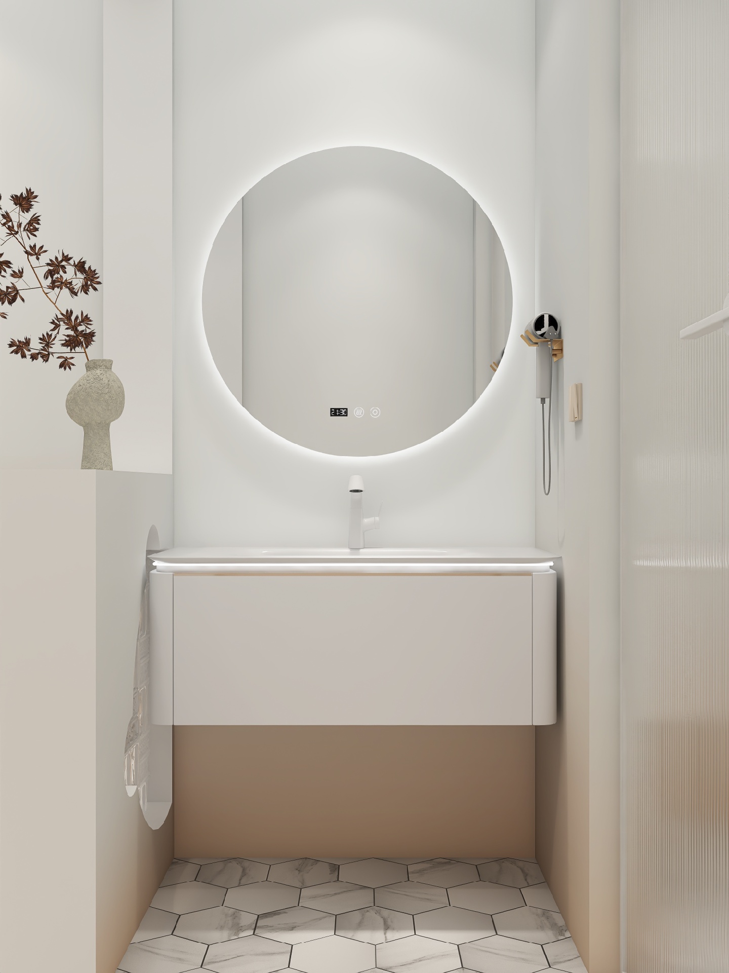 浴室虽简约,但是却不能缺少现代科技之便利~