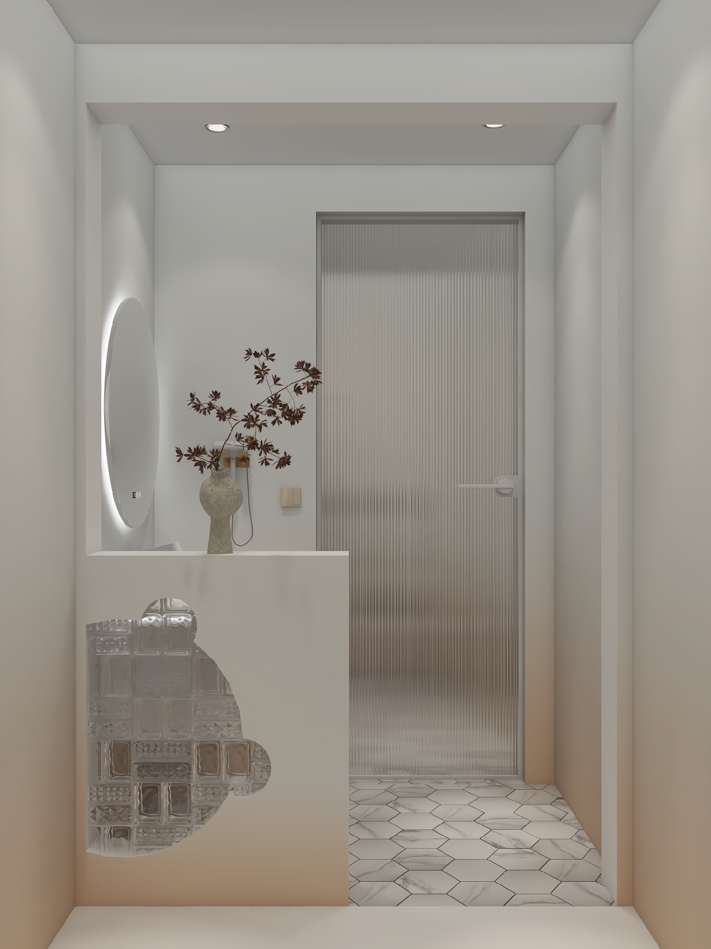 大地色系的渐变风墙壁+北欧风六角砖,再加上同色感的花束💐 莫名给人一种置身异国之感,简约中亦有高级零碎之美✨