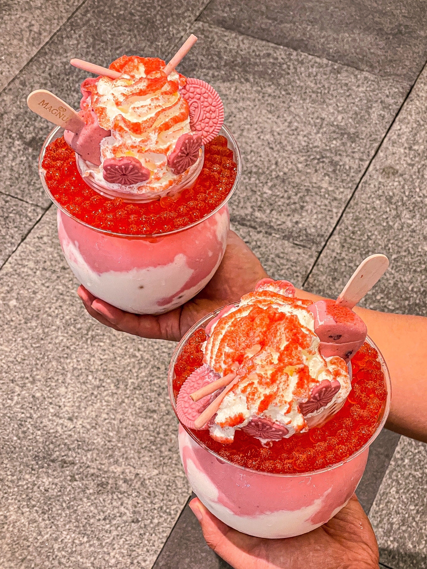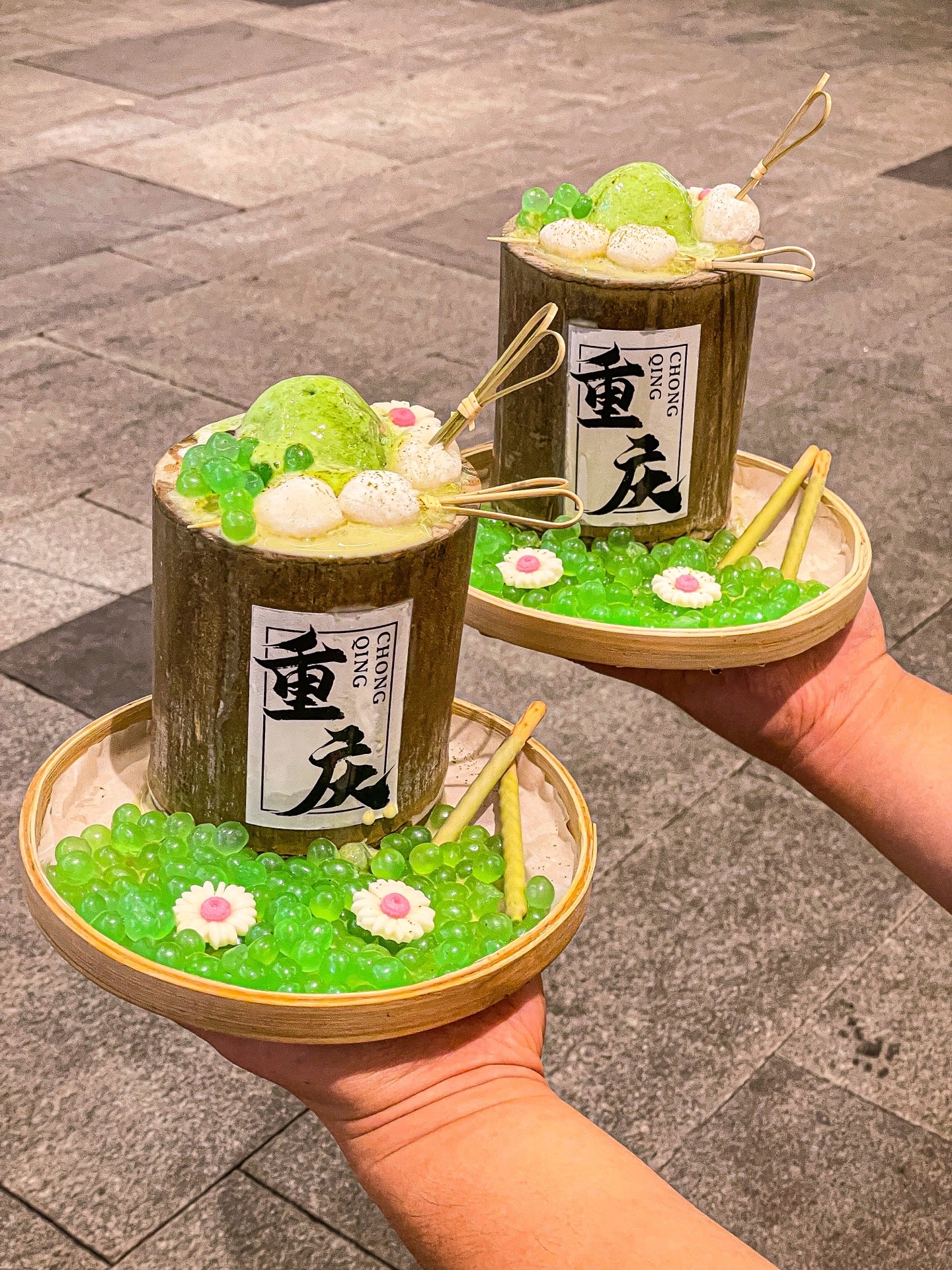 🔥还有🈶颜又🈶料的「草莓梦龙坛子奶茶」➕「竹筒抹茶冰淇淋奶茶」,真的超级出片,用料扎实,两种爆爆珠在口中爆开的甜蜜真的贼满足,奶茶香醇不甜蜜,冰冰凉凉真的像是在给嘴巴👄来空调