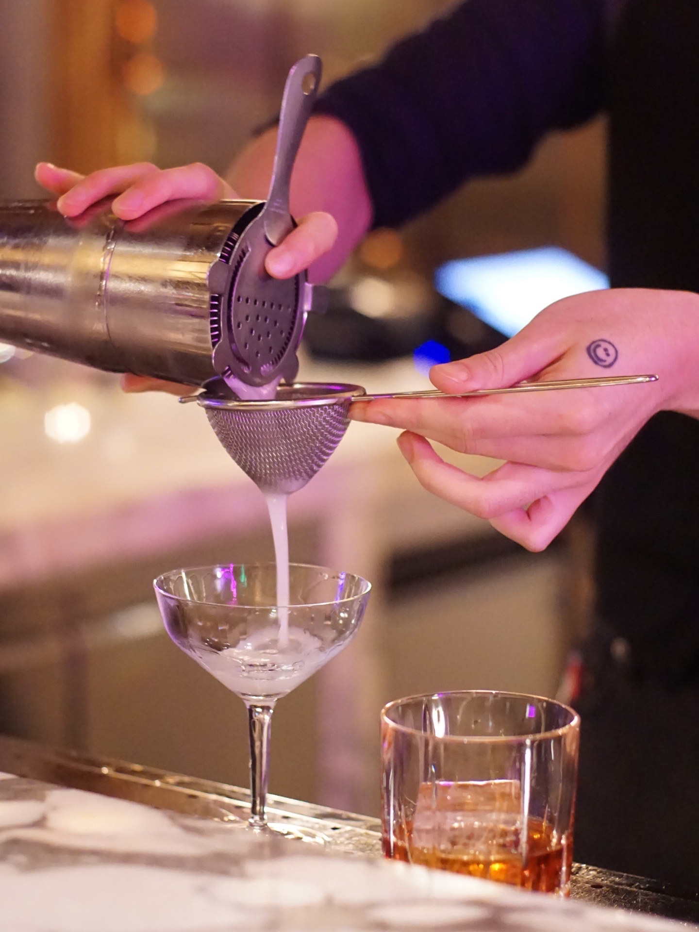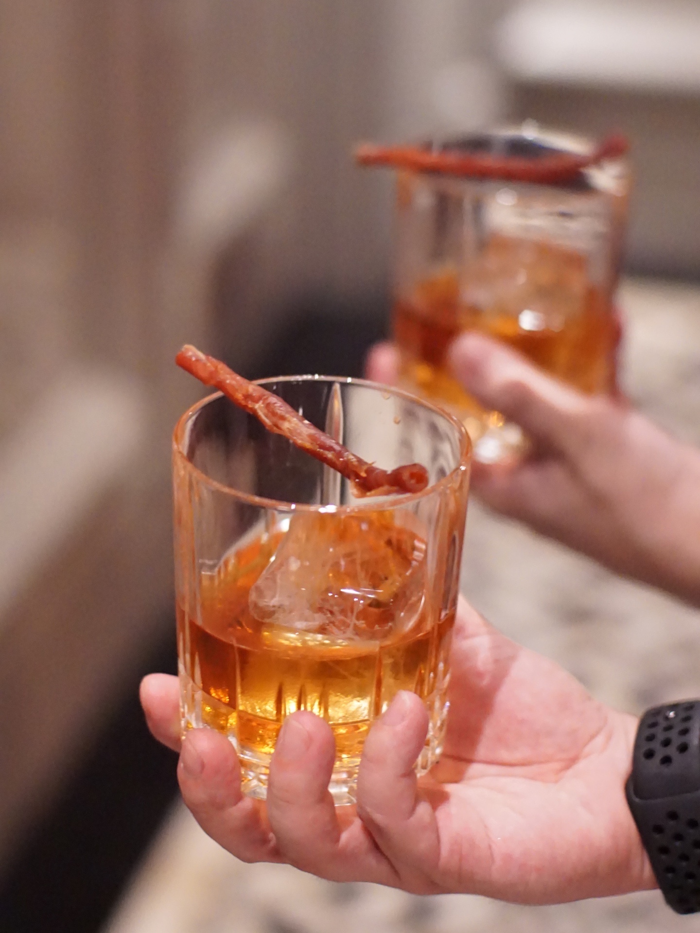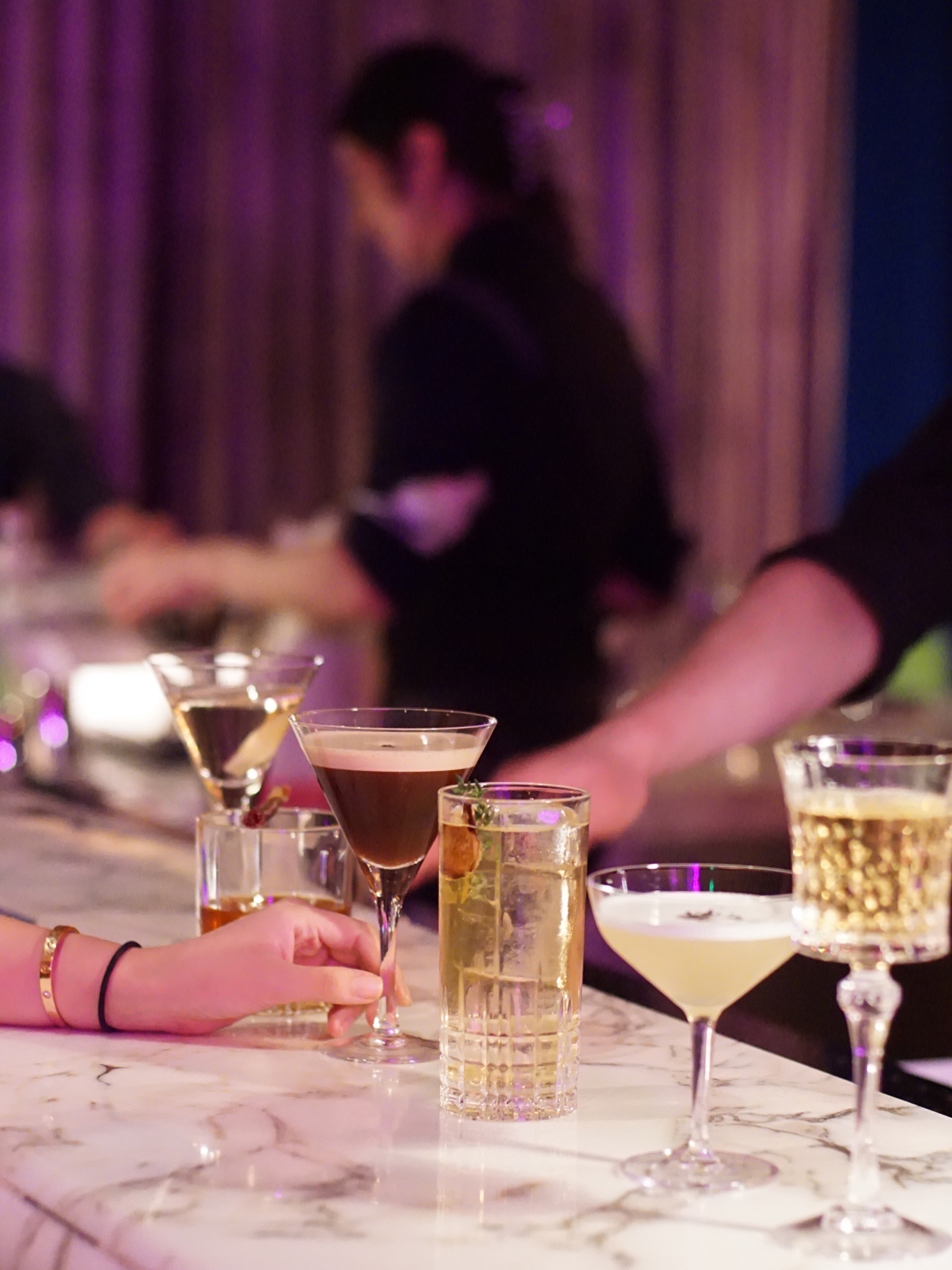 鸡尾酒基本只喝经典,今晚喝到教父、vesper和马天尼的烧酒twist。芋烧酒与正山小种调和杏桃,「IMO Father芋教父」架了一根风干火腿。米烧酒+雪莉酒+草药酒,「KOME Vesper米维斯帕」烈中有接骨木花的芳香。「MUGI-presso Martini麦子浓缩马天尼」则是香草可可咖啡的香甜里,暗藏了麦烧酒。Sober Company闪现西湖边,推开君悦酒店扉酒吧这扇神秘复古的大门,有被无花果版柯林,“清新”的紫苏黄瓜,以及“海明威与番石榴”,狠狠闪到。