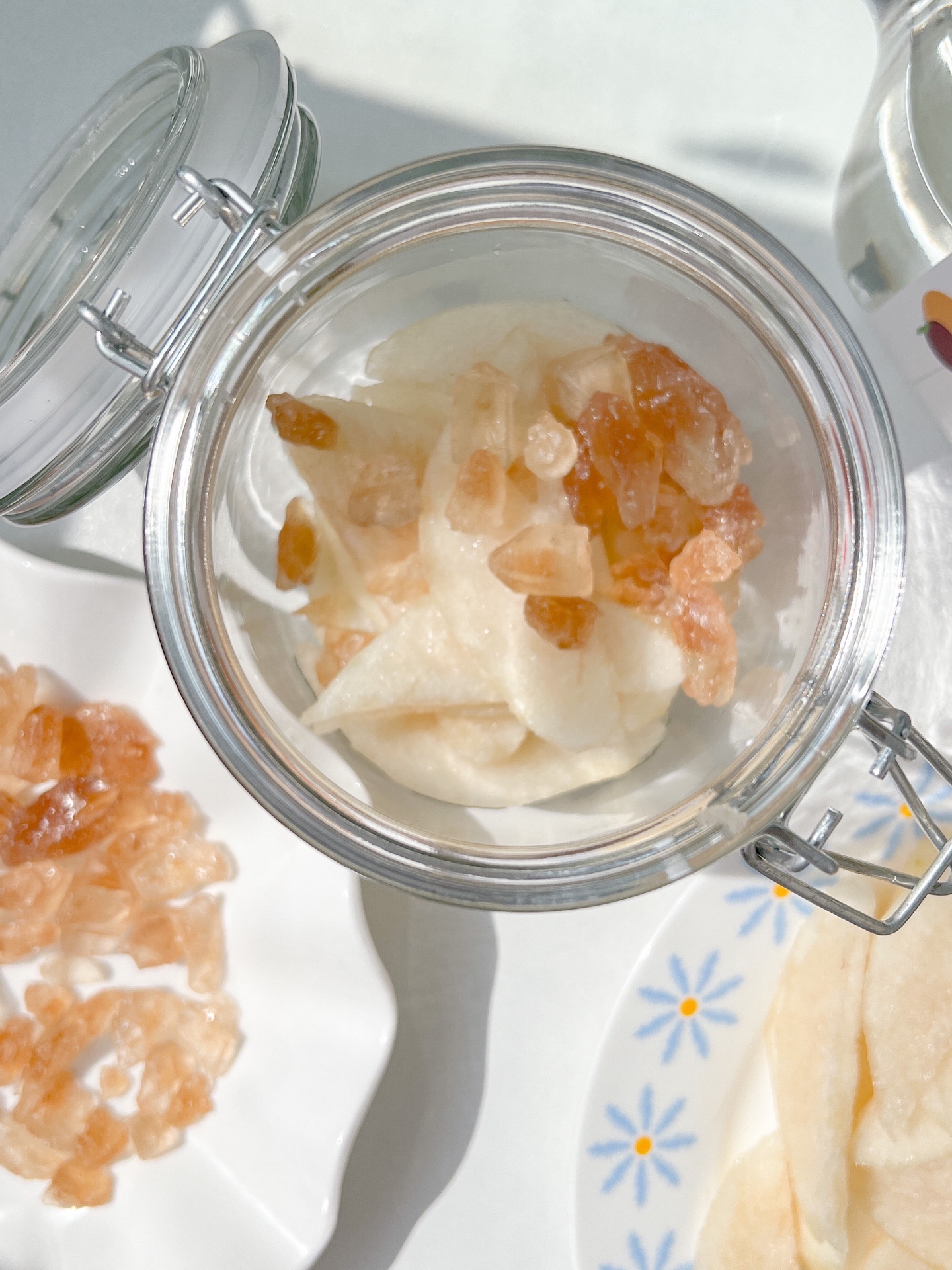 把梨放入容器中,加入少量冰糖,