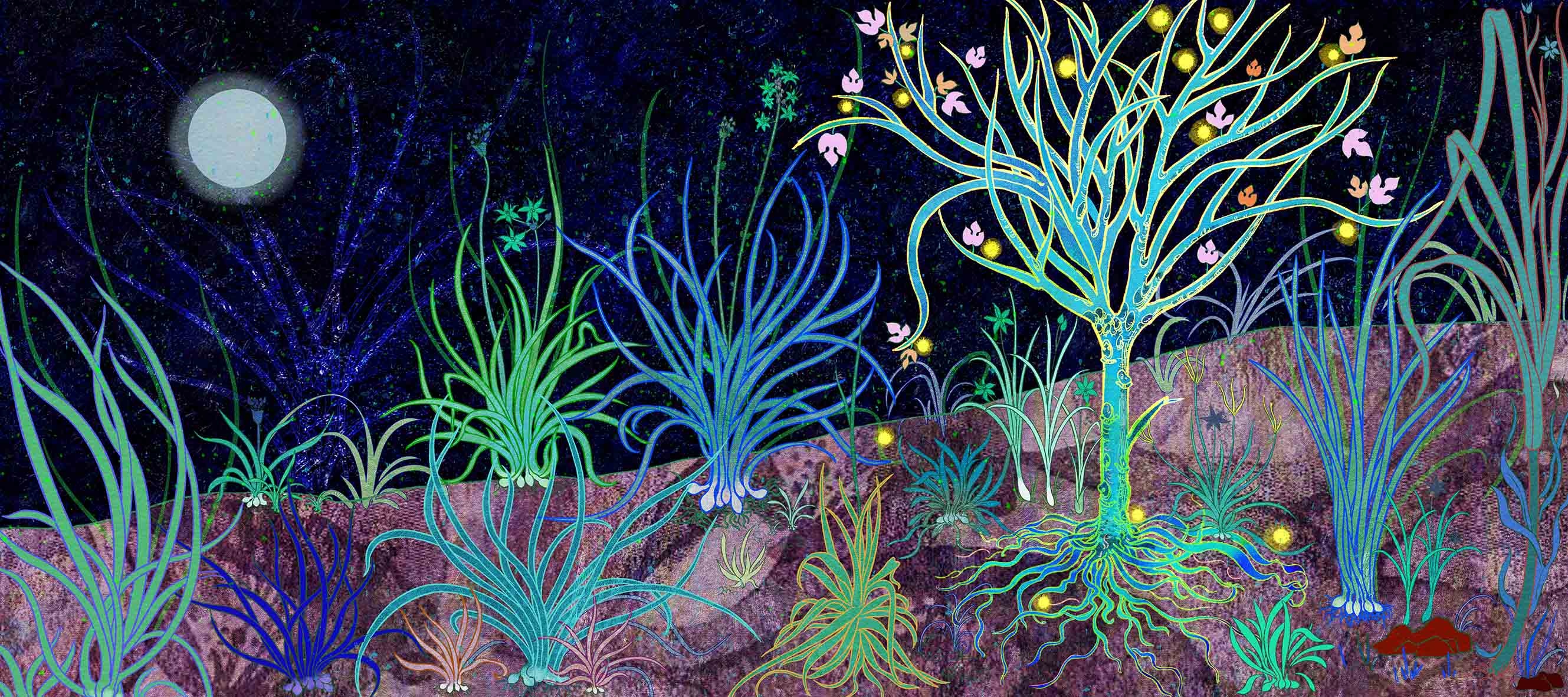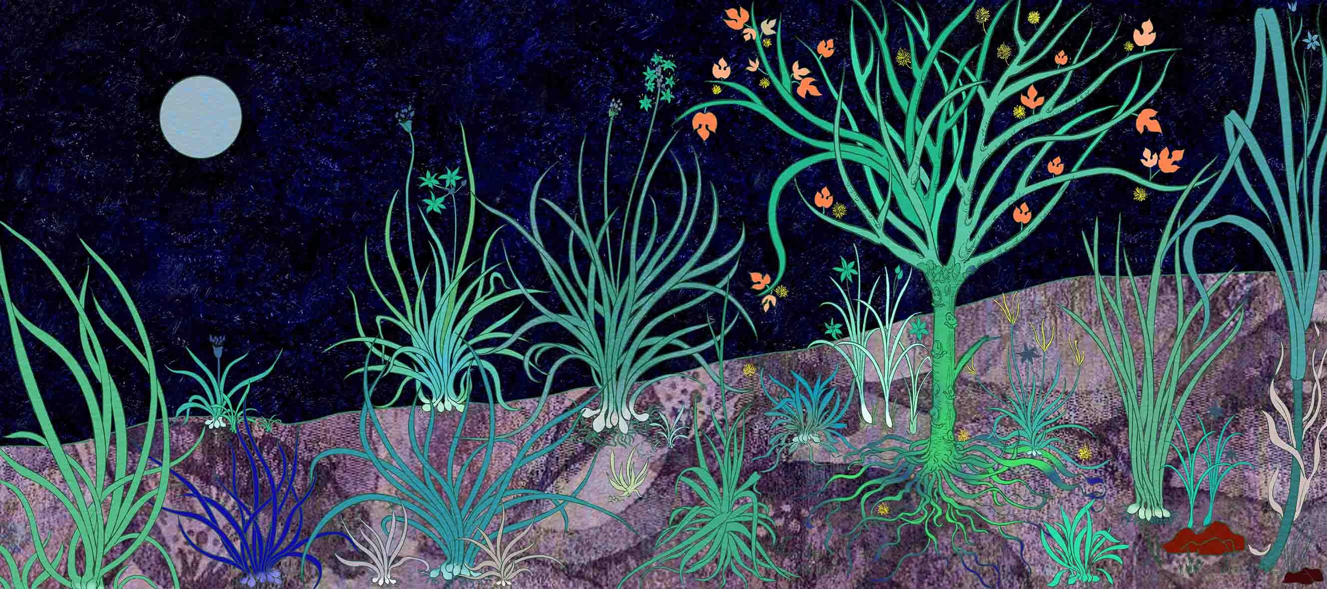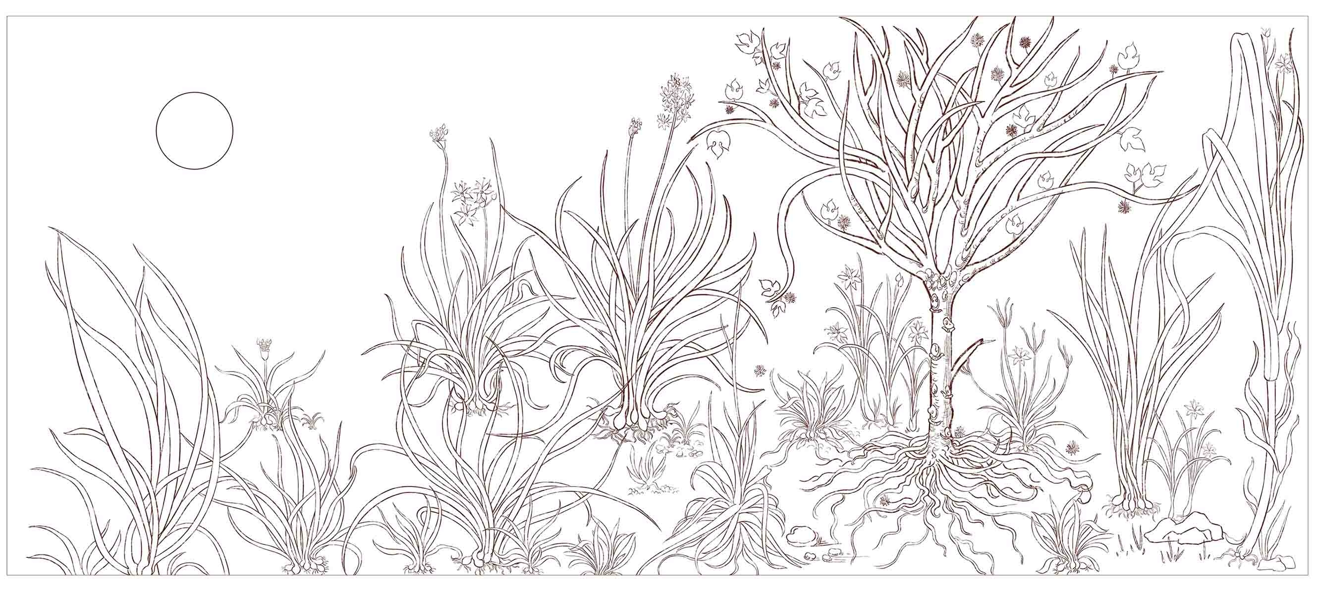 画面中的植物为《山海经》南山经所记载的祝馀、迷榖。