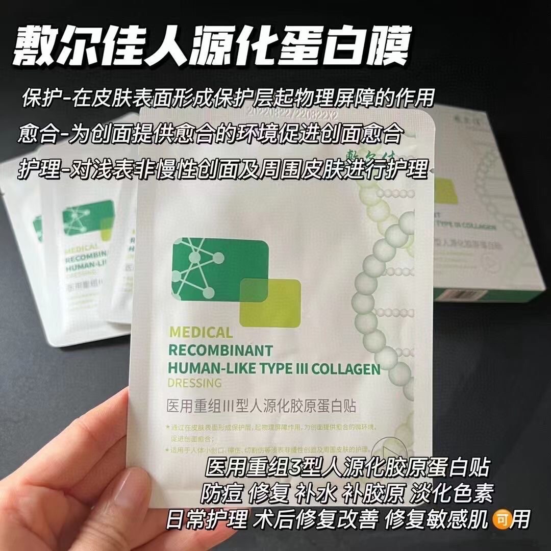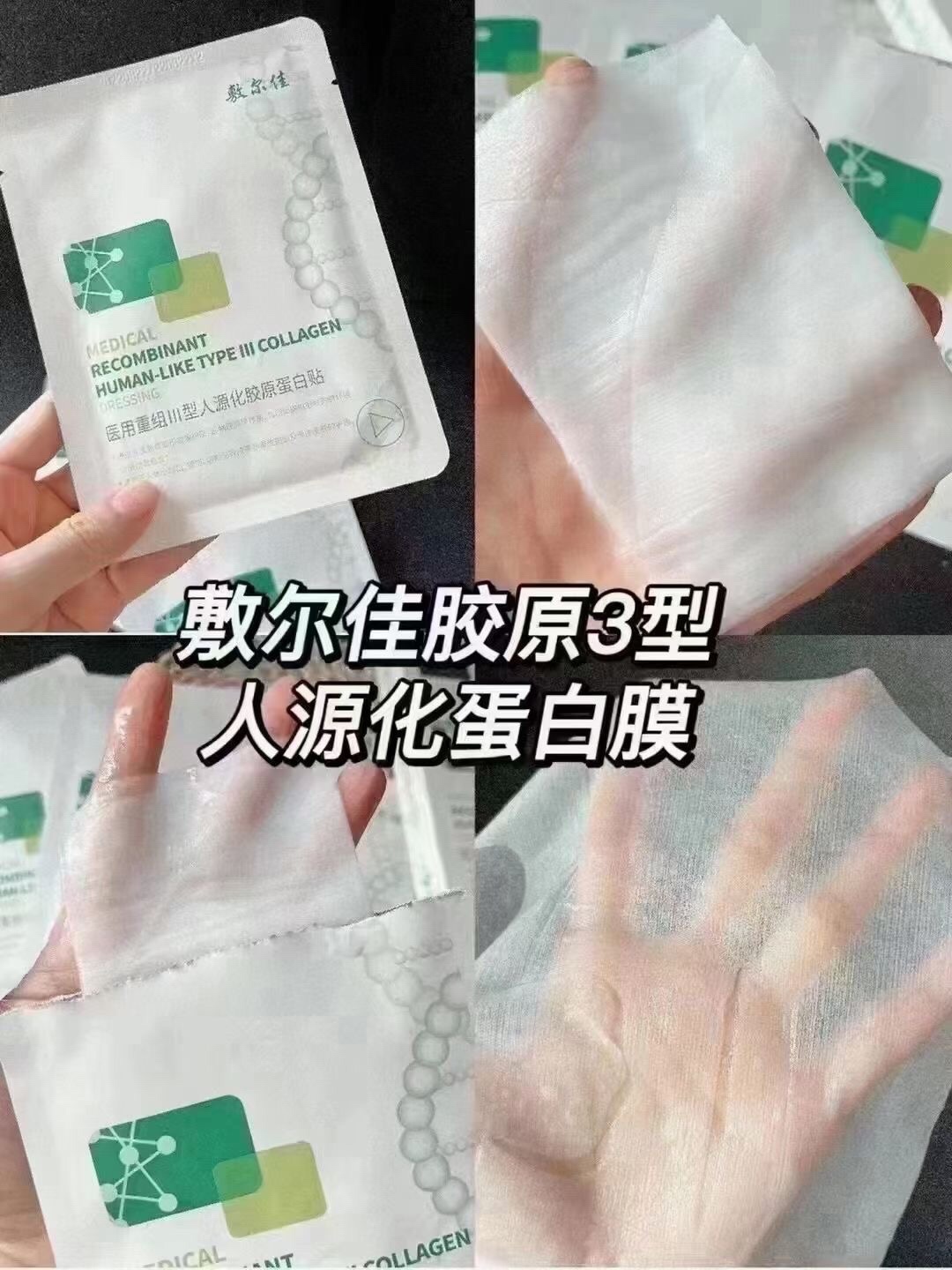 新品尝鲜来!敷尔佳这款的优点就是:成份对标可复美 但是敷尔佳的膜布成膜性更好,补充皮肤的水分的同时,还能锁住水分~ 另外重组人源化胶原蛋白基础结构跟人体一模一样