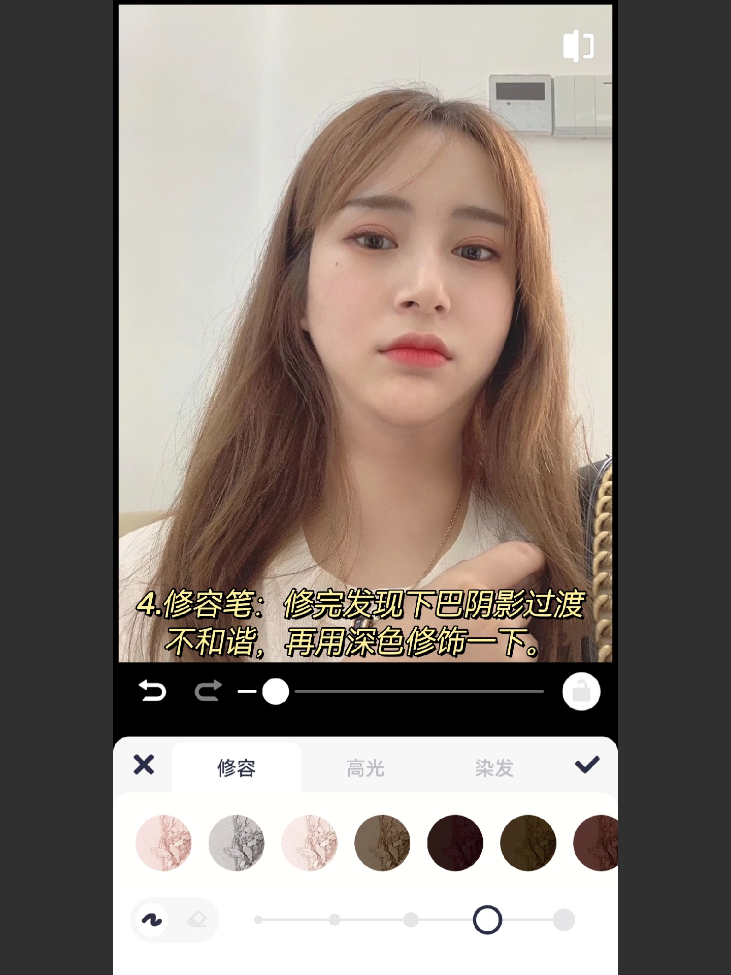 修完发现下巴阴影过渡不和谐,再用深色修饰一下。
