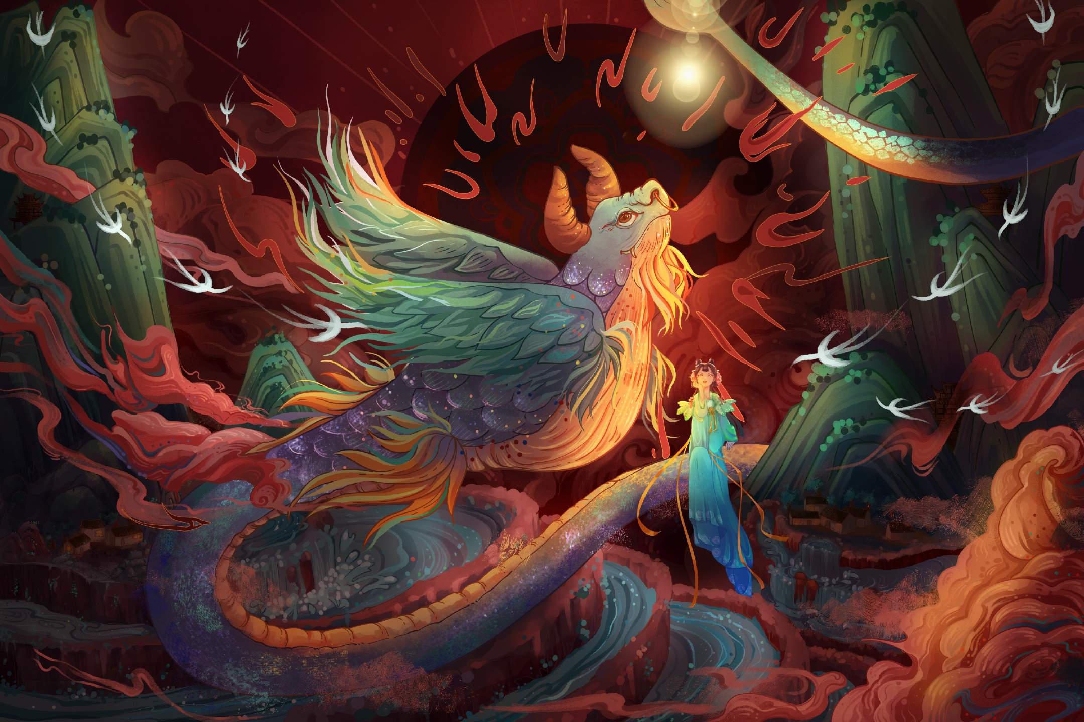 鯥,记载于《山海经》的神兽。《山海经.南山经.柢山》记载:曰又东三百里, 柢山,多水,无草木。有鱼焉,其状如牛,陵居,蛇尾有翼,其羽在魼下,其音如留牛,其名曰鯥,冬死而夏生,食之无肿疾。