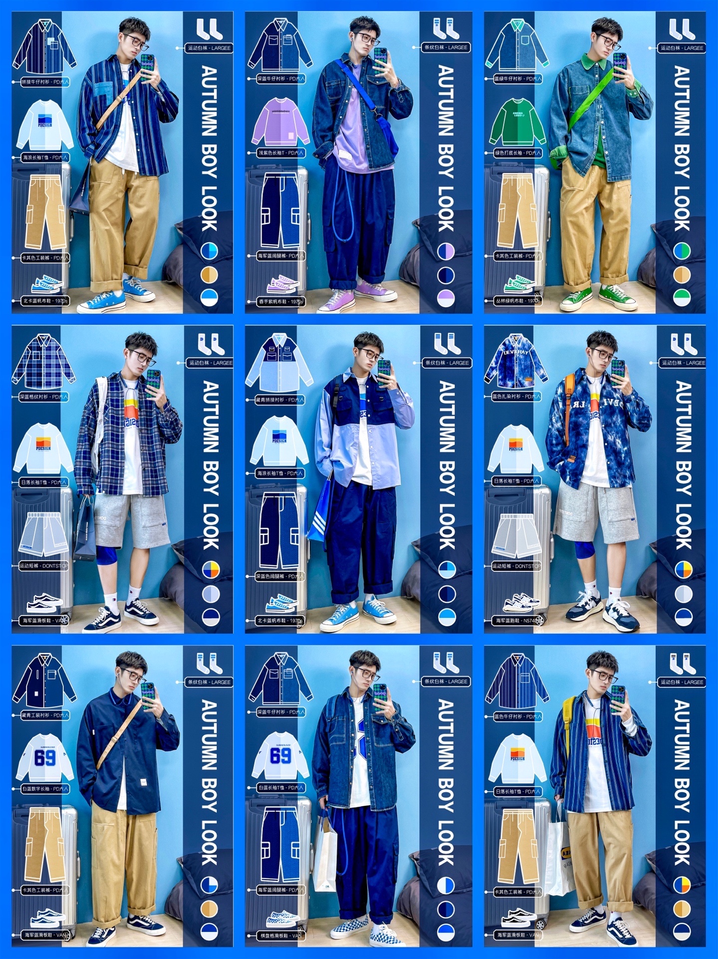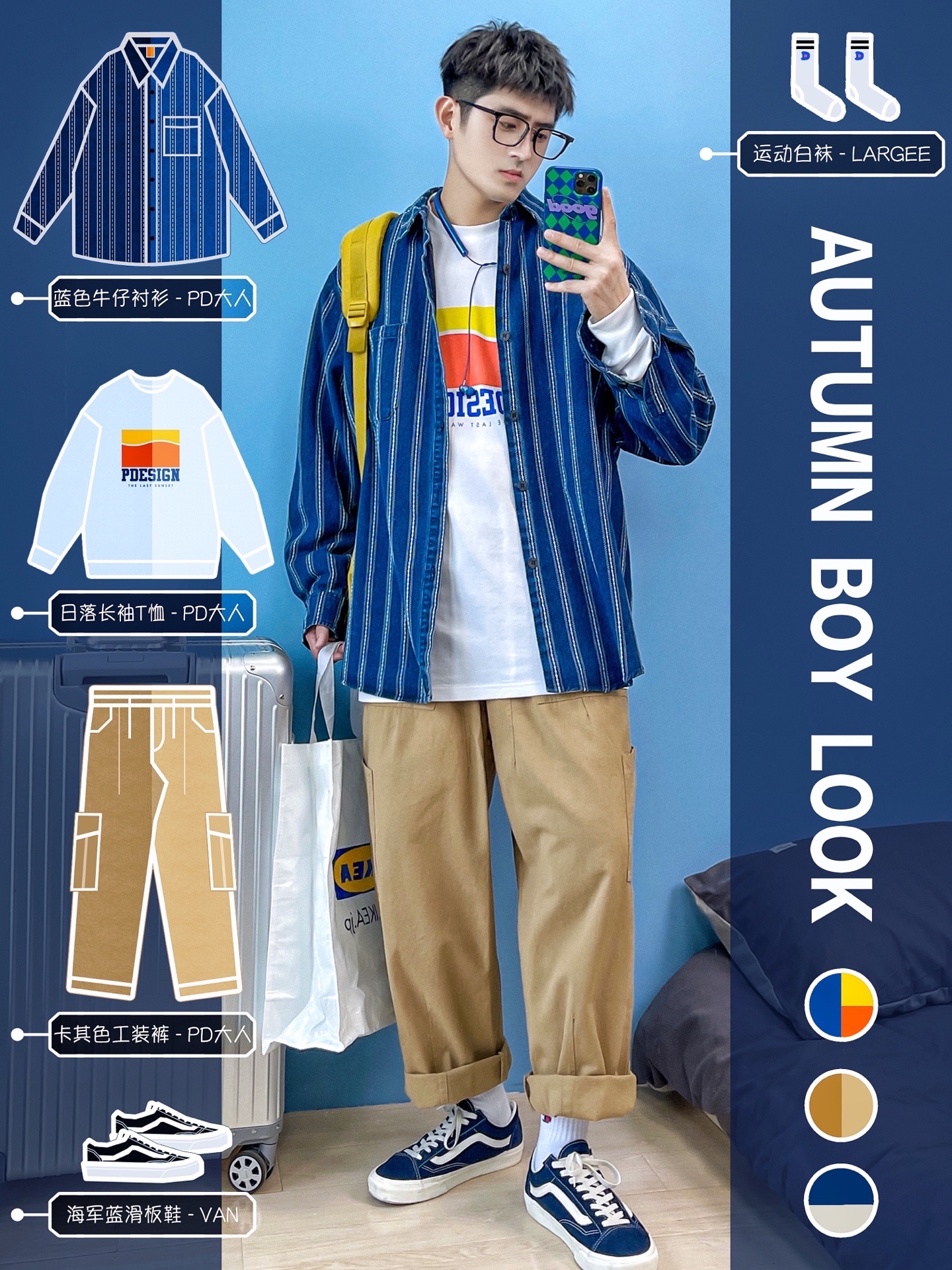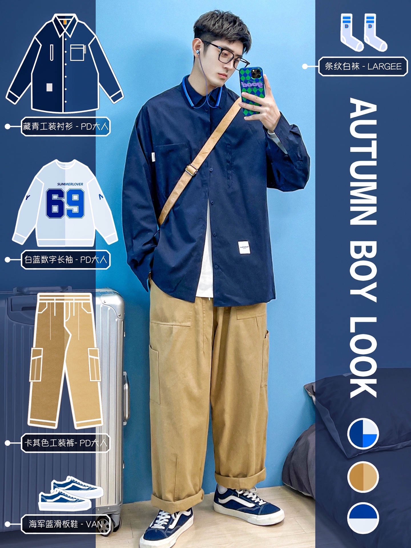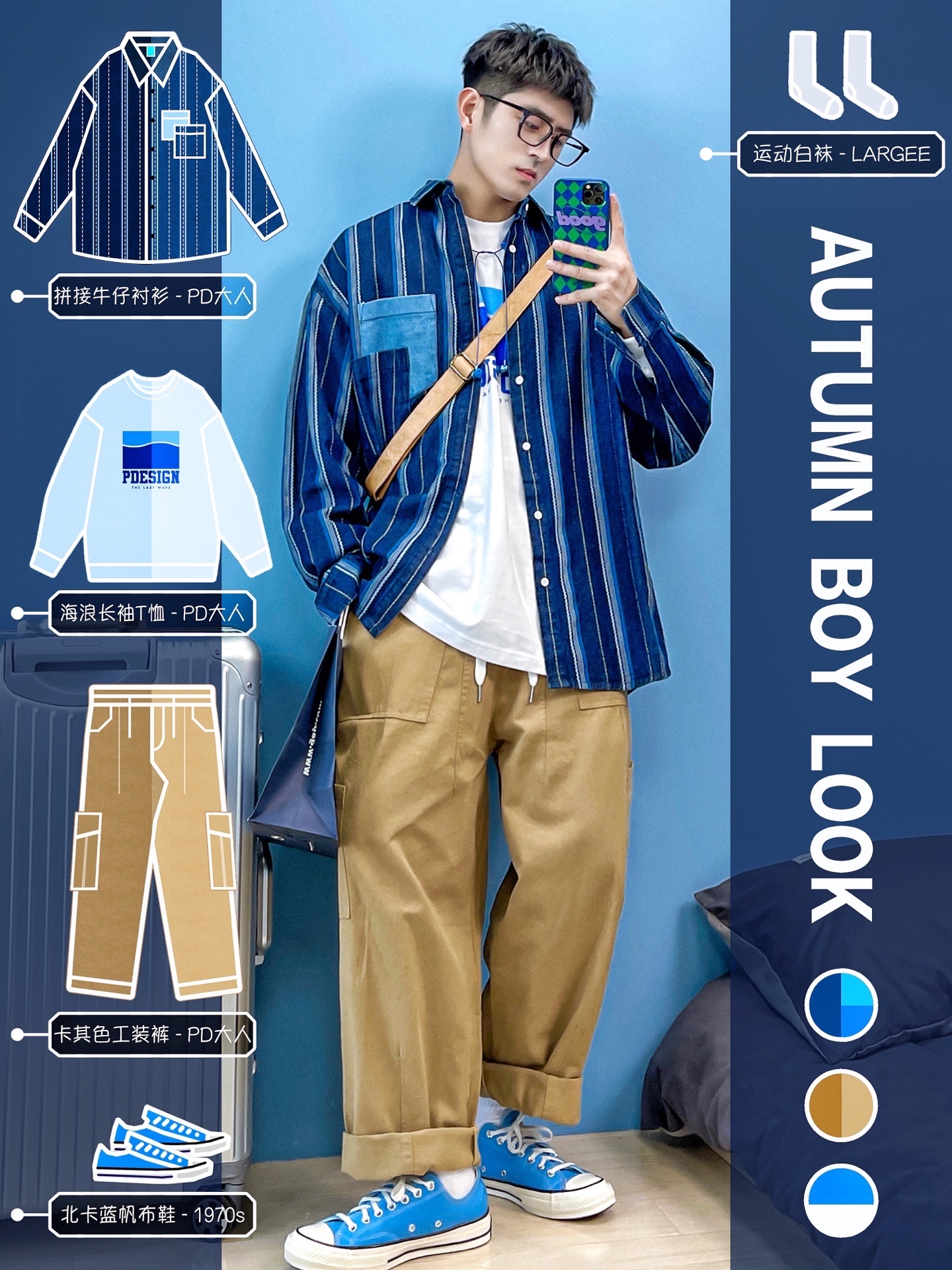 4⃣️:蓝色+卡其色【日系搭配】✨