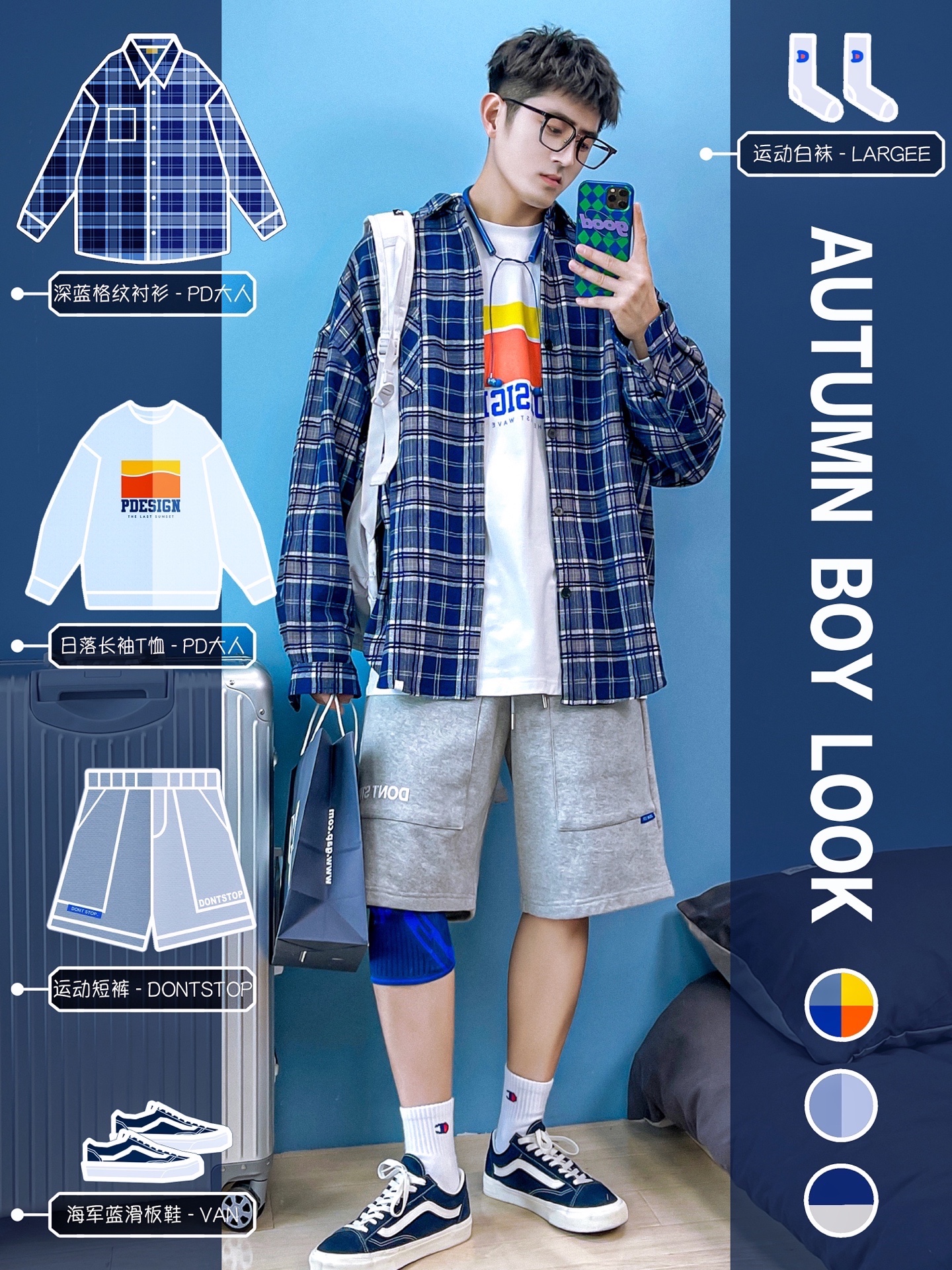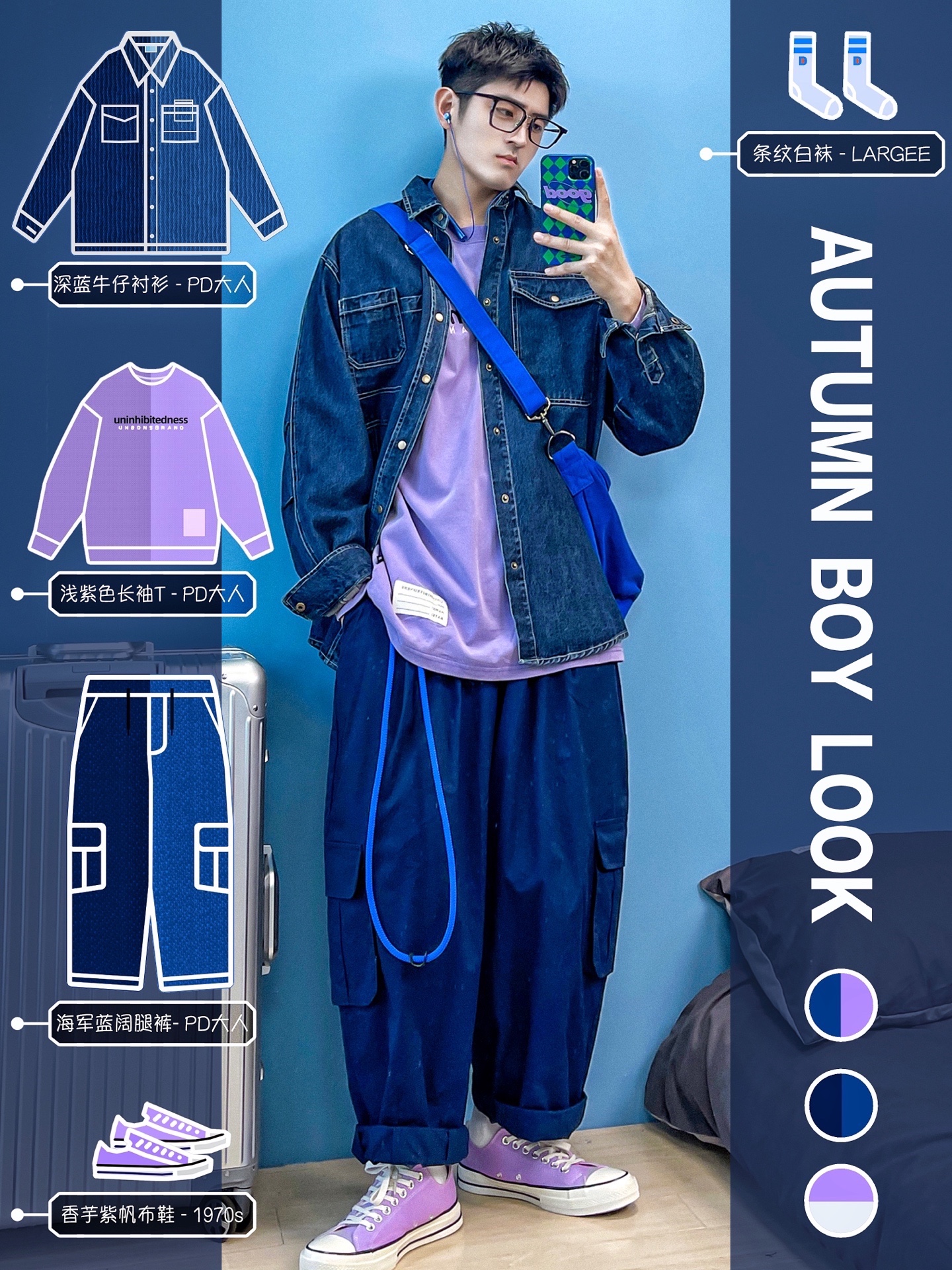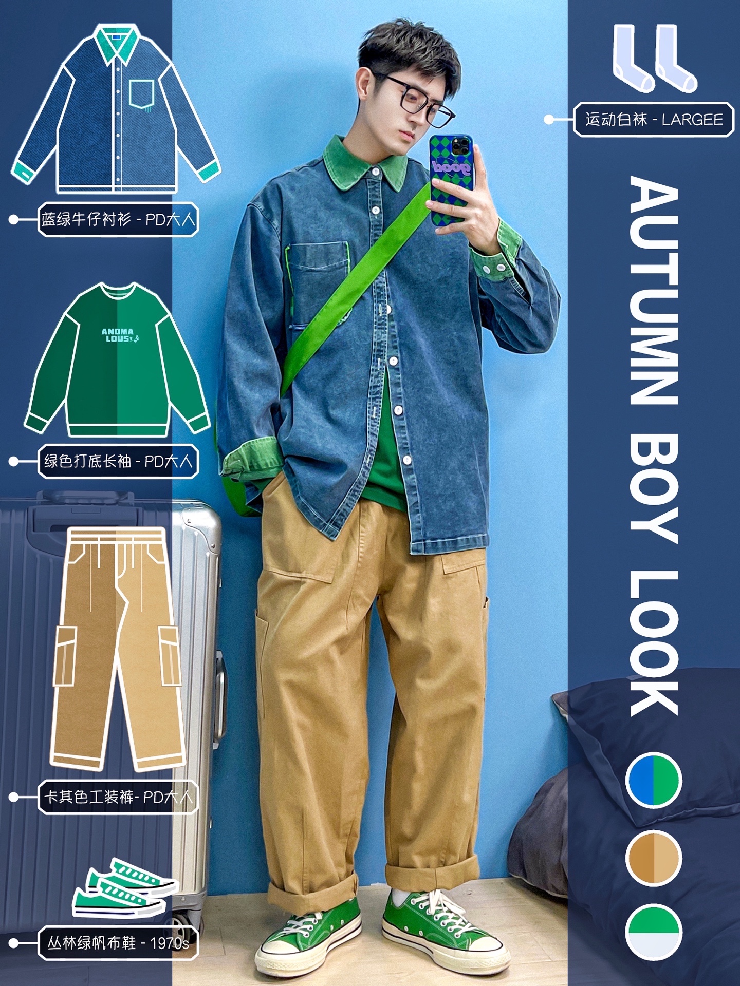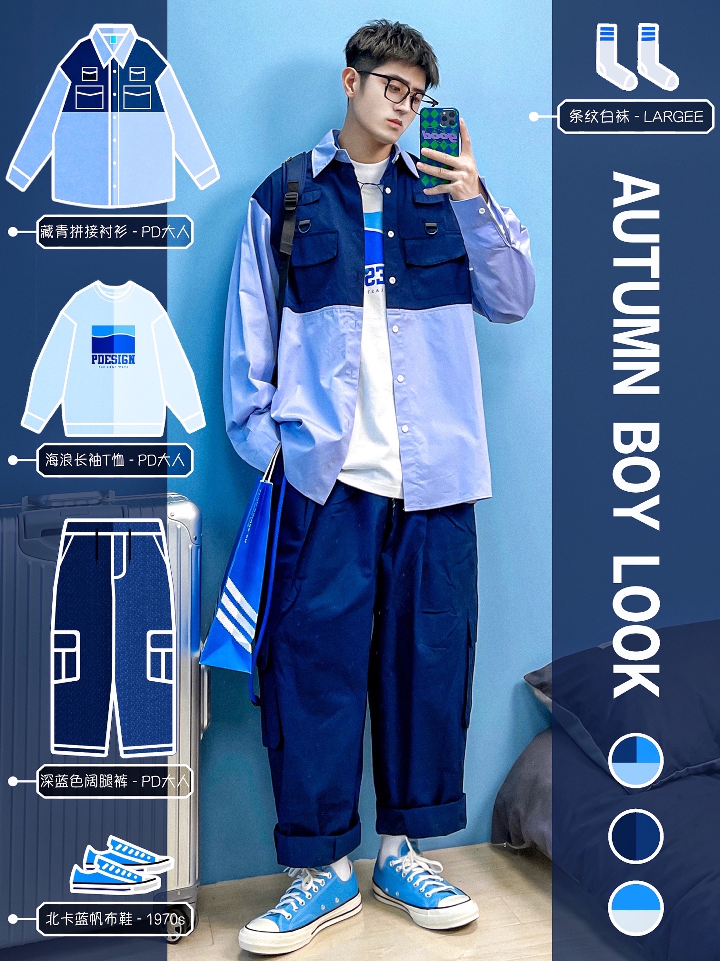 4⃣️:蓝色+卡其色【日系搭配】✨