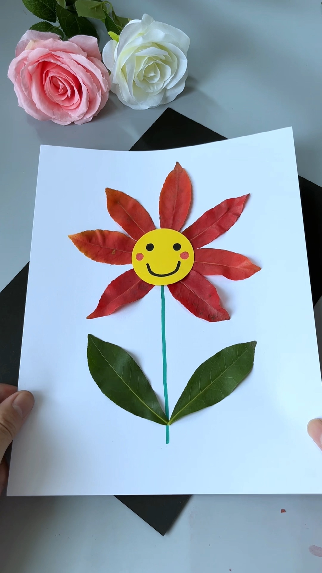 用美丽的落叶粘贴一幅花朵树叶贴画,简单又好看,快来试试-美图社区-美图秀秀