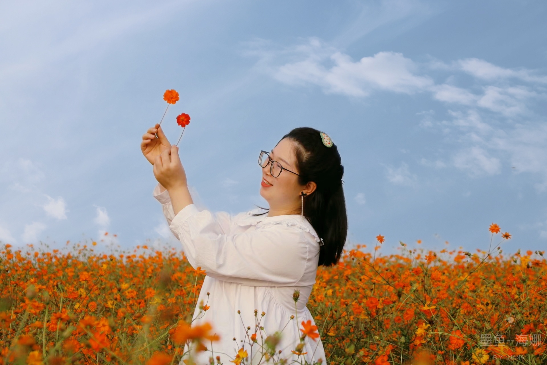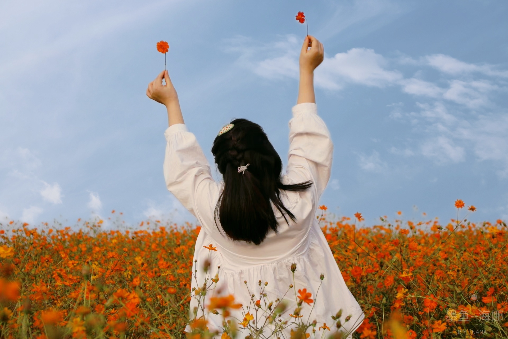 波斯菊花海穿白色衣服排出来是最出片的,要想拍深色花海,不知道怎么穿的的建议白色为主,或浅色衣服,这样就可以出片,在学学小姐姐们的姿势,那就是大片了😉😉😉