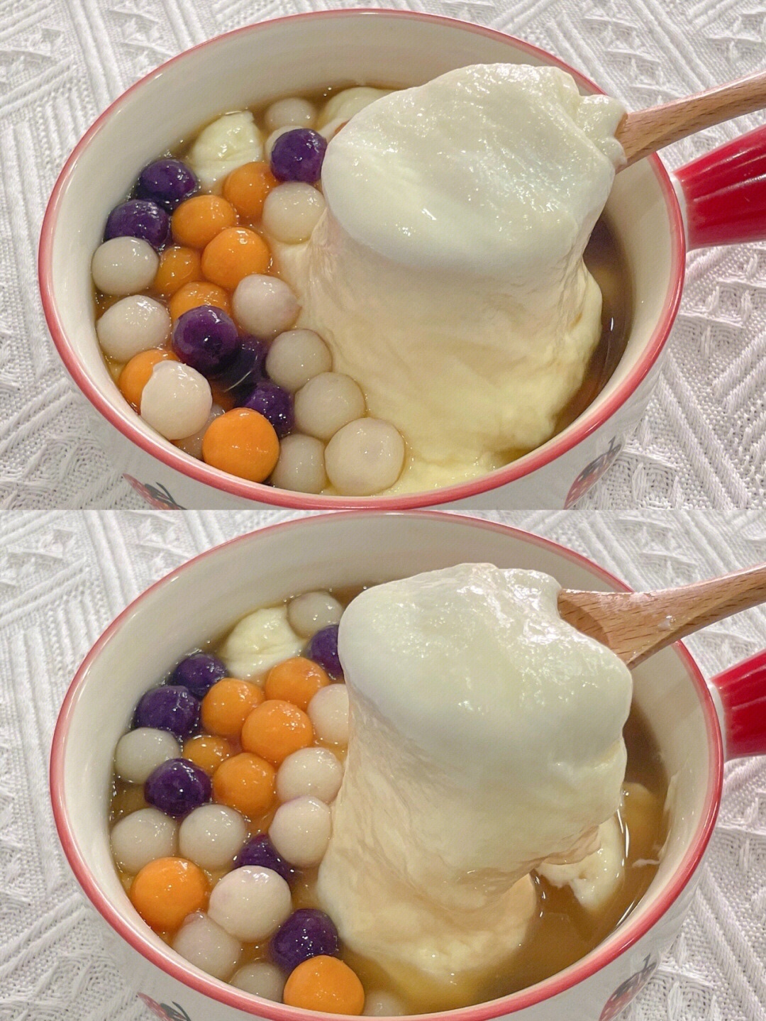 今天给大家分享一款糯叽叽的甜品🍮——芋圆鲜奶麻薯