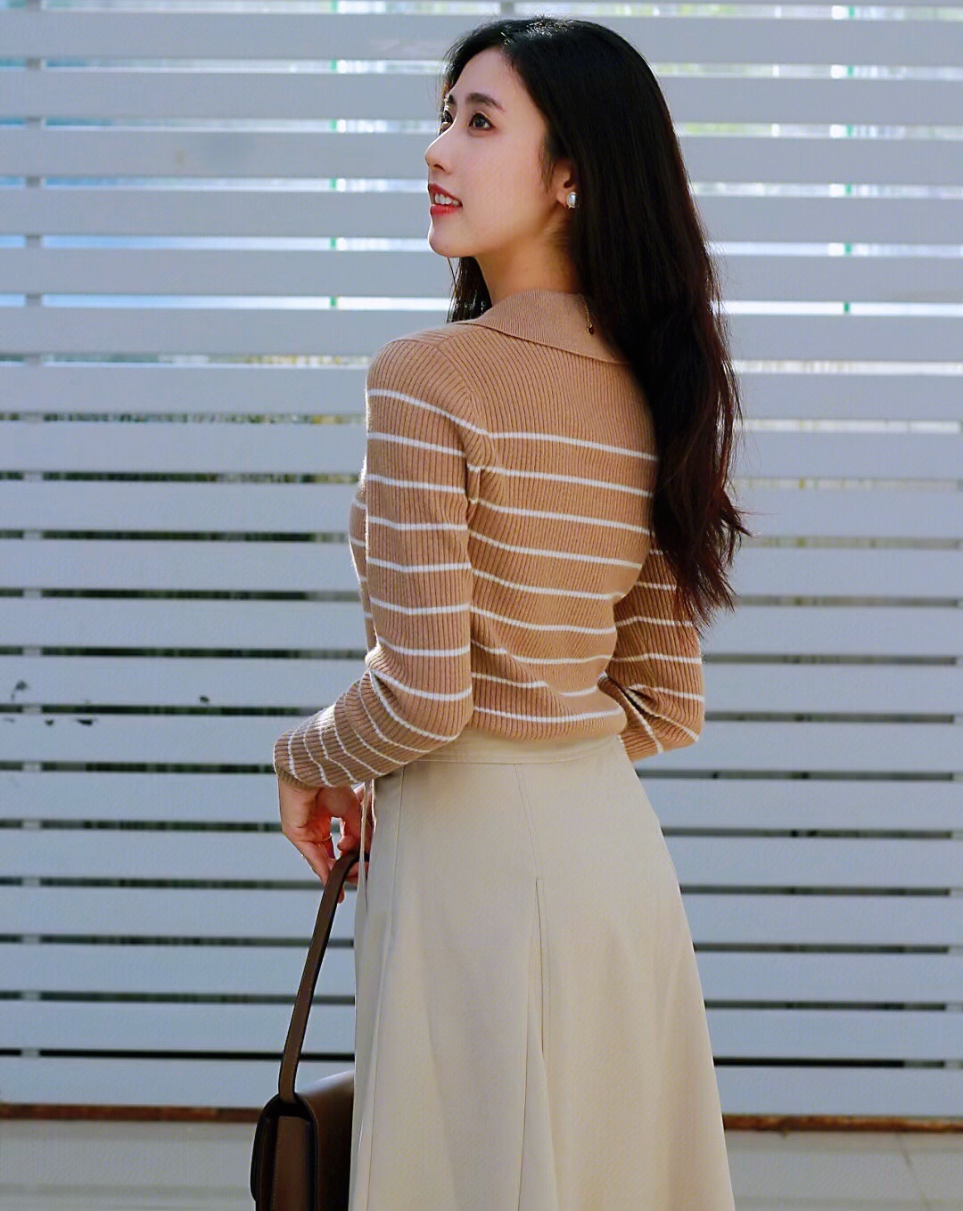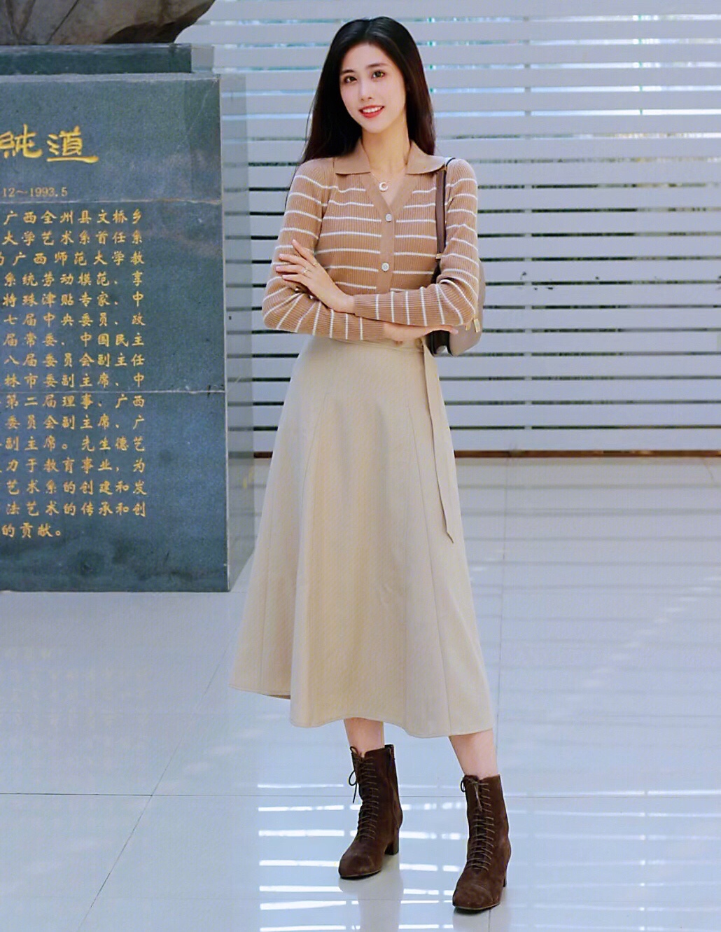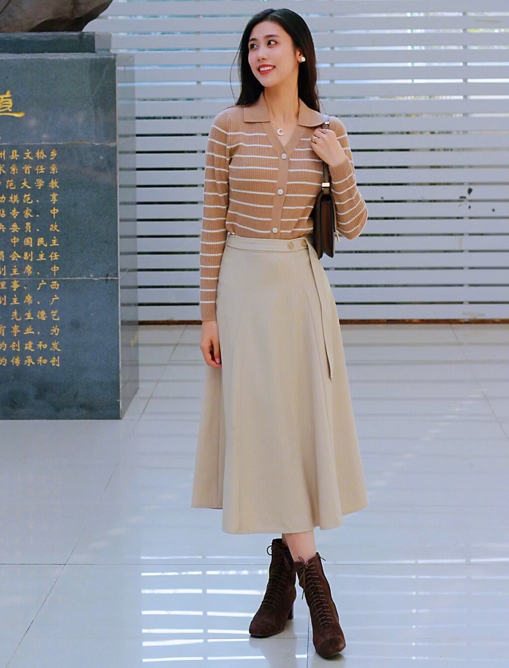 卡其色系的针织衫和半身长裙与秋日实在太配,完全符合我心目中的大家闺秀气质~