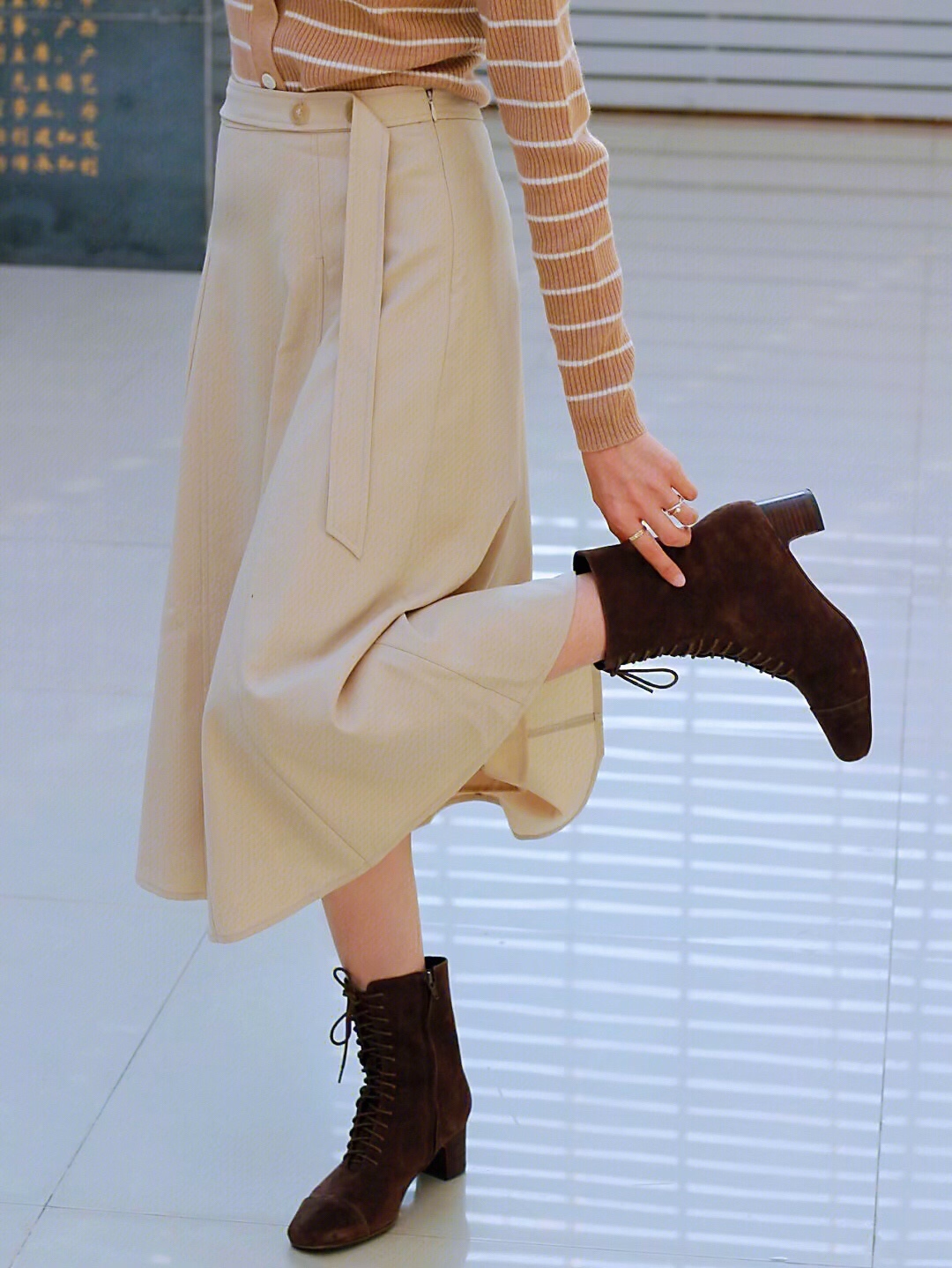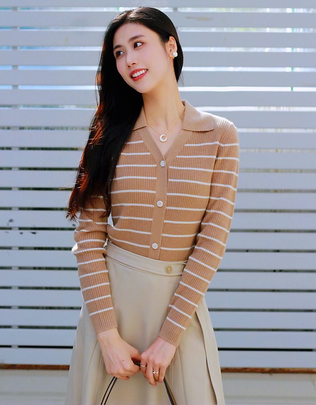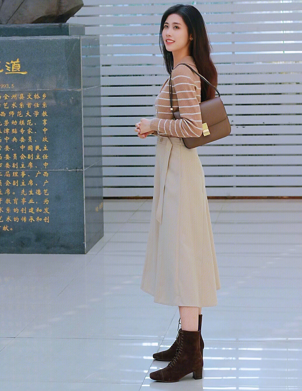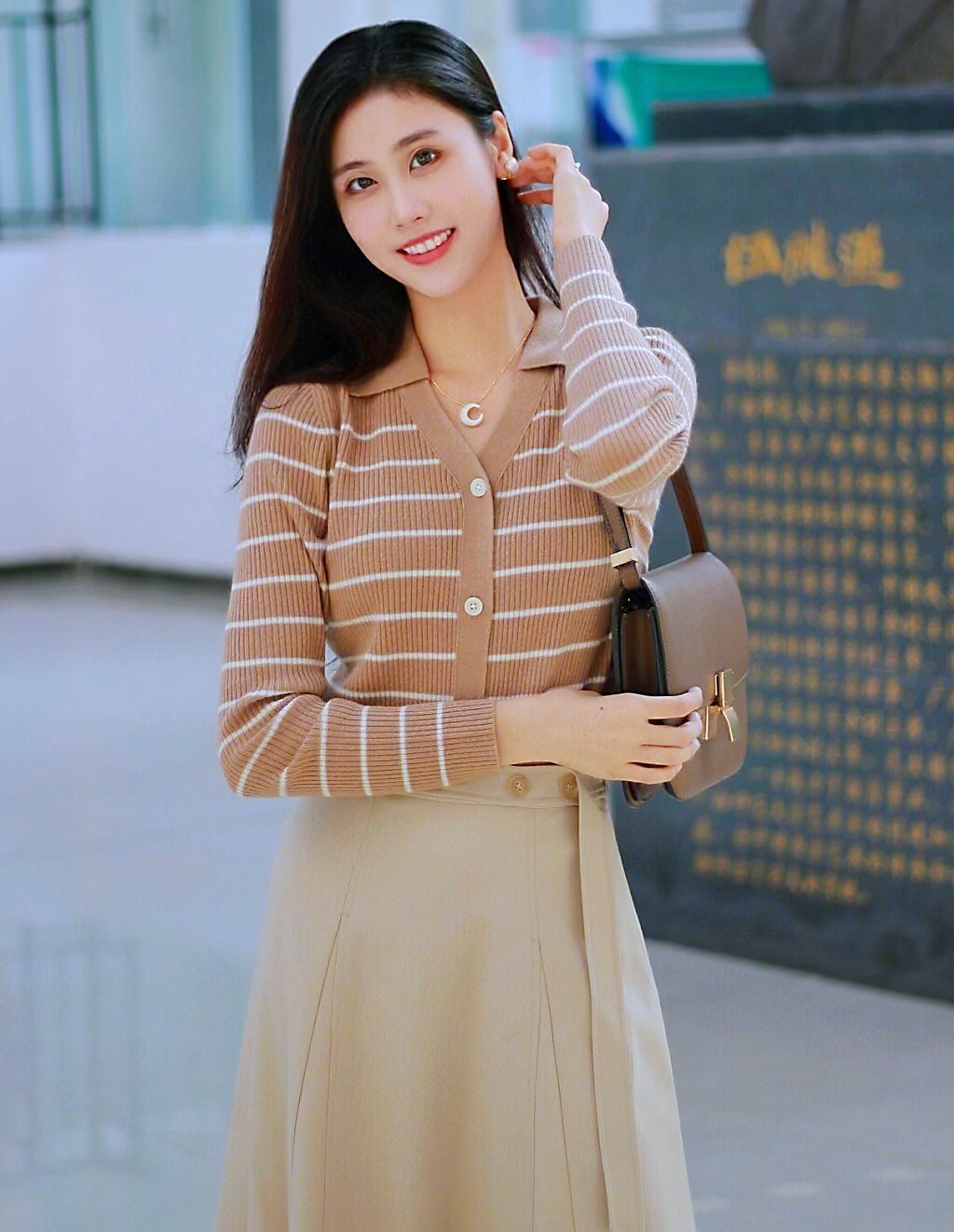 卡其色系的针织衫和半身长裙与秋日实在太配,完全符合我心目中的大家闺秀气质~