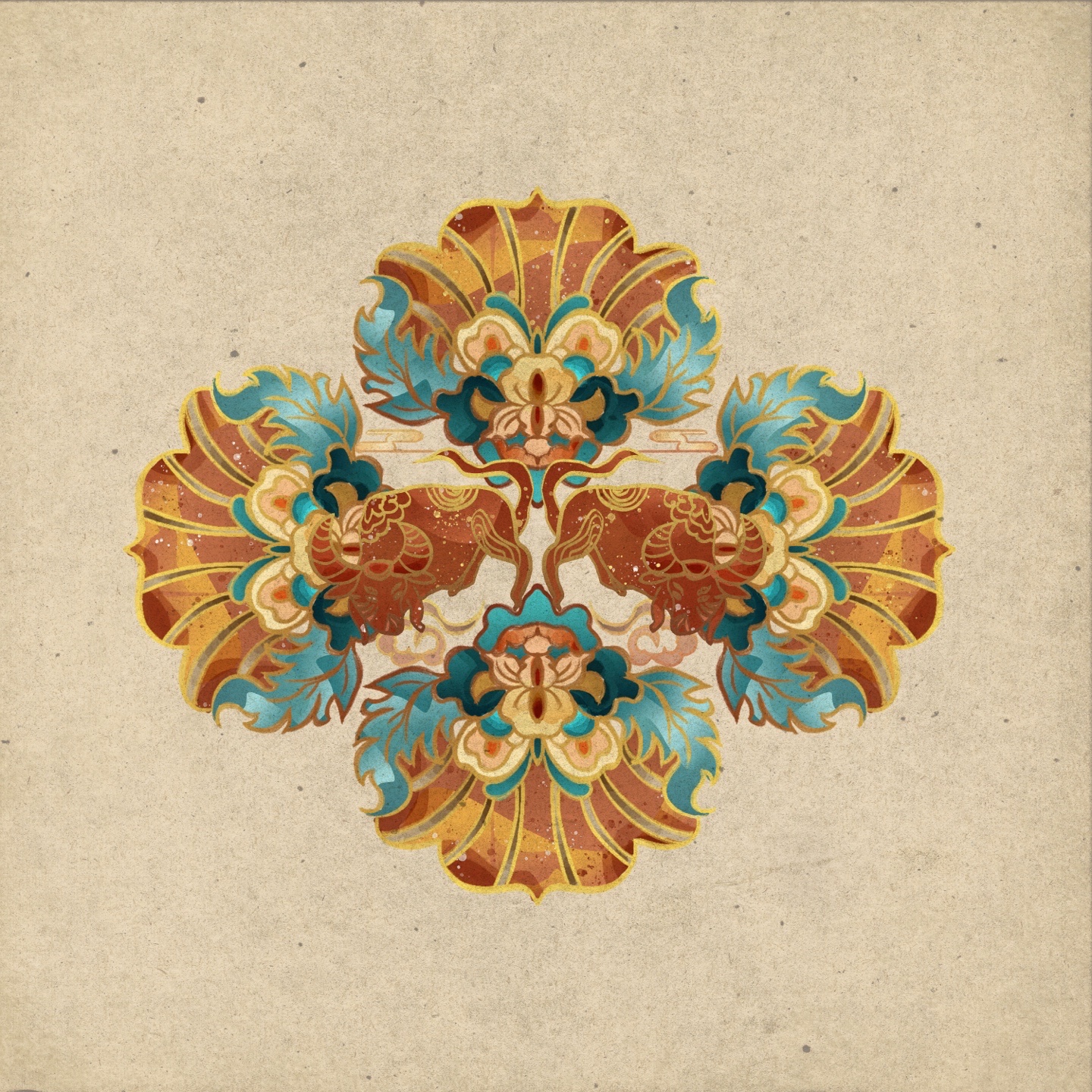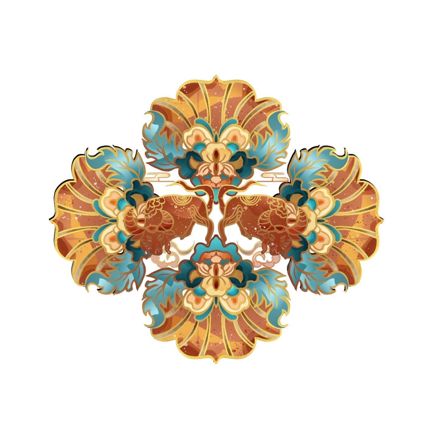 国潮风插画 国潮纹样十二生肖牛年 😊😊😊好事成双 牛气冲天!