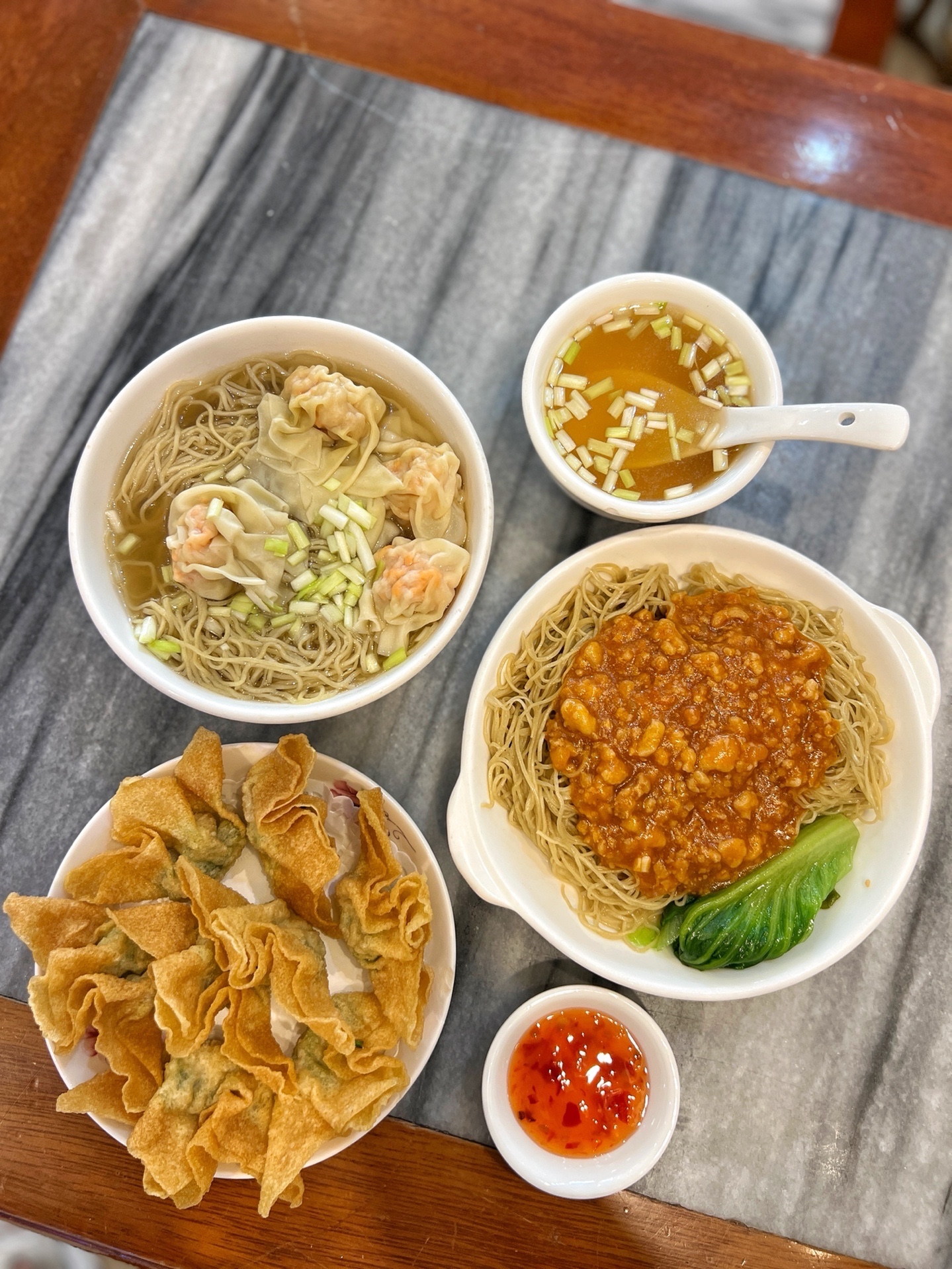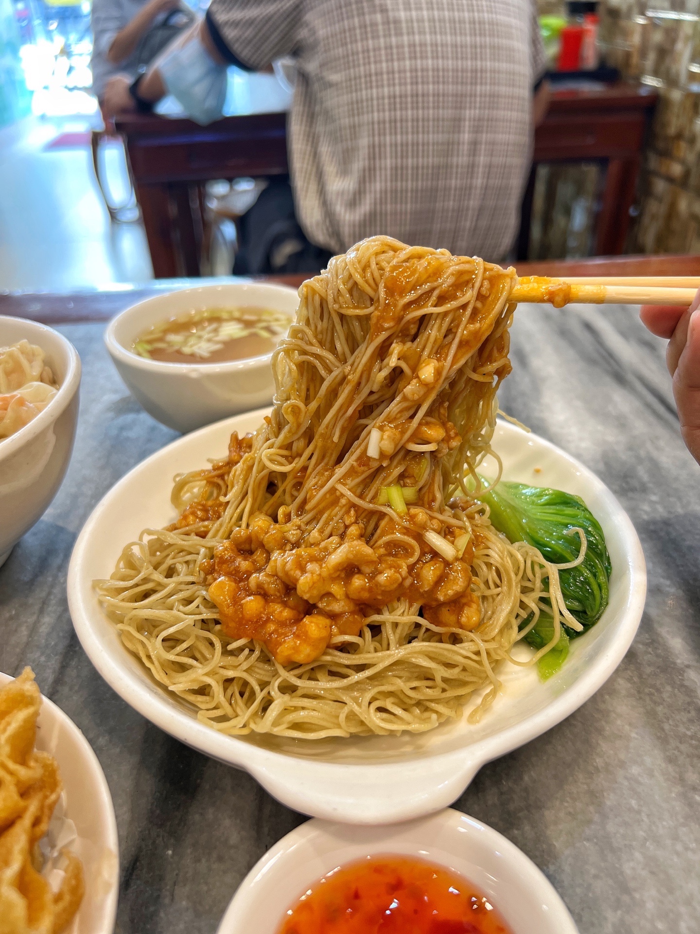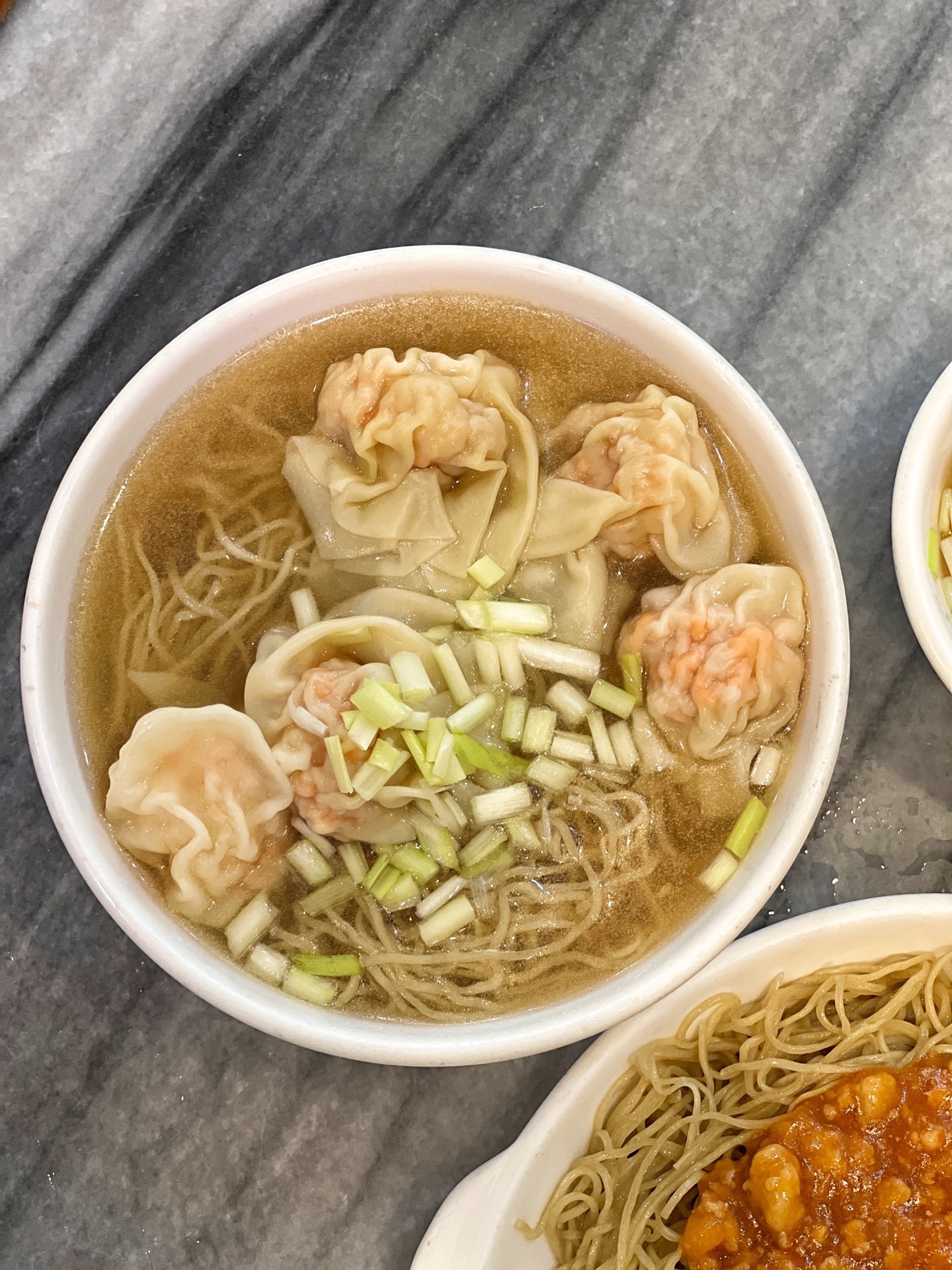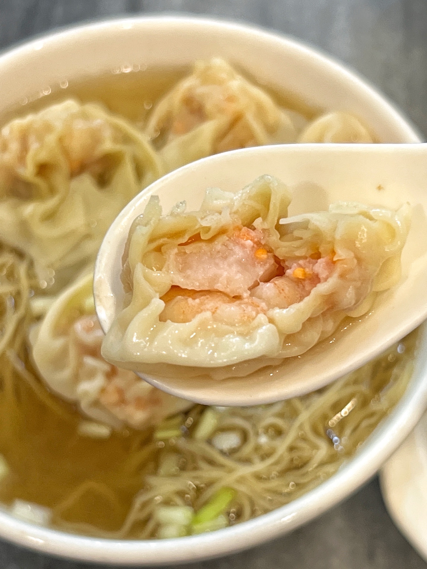 竹升面确实是特别爽口的面质,但个人更偏爱蛋面,蛋面更香,它家的汤底不是很大地鱼,有点虾子的那种传统云吞面汤底,云吞大大粒,里面也有鲜虾和蟹子